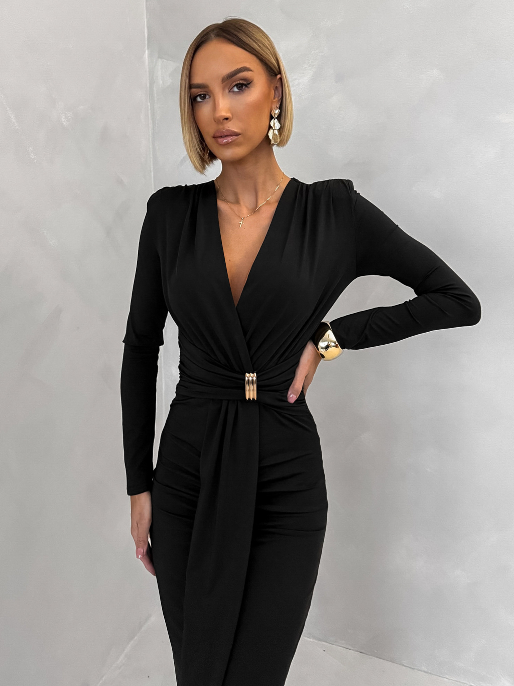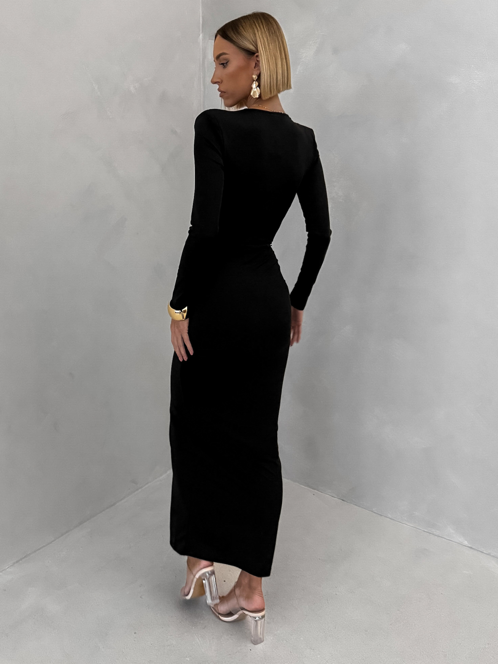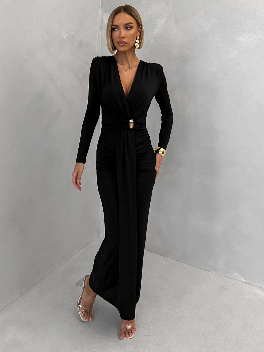 Černé společenské dlouhé šaty FAYLORI s výstřihem