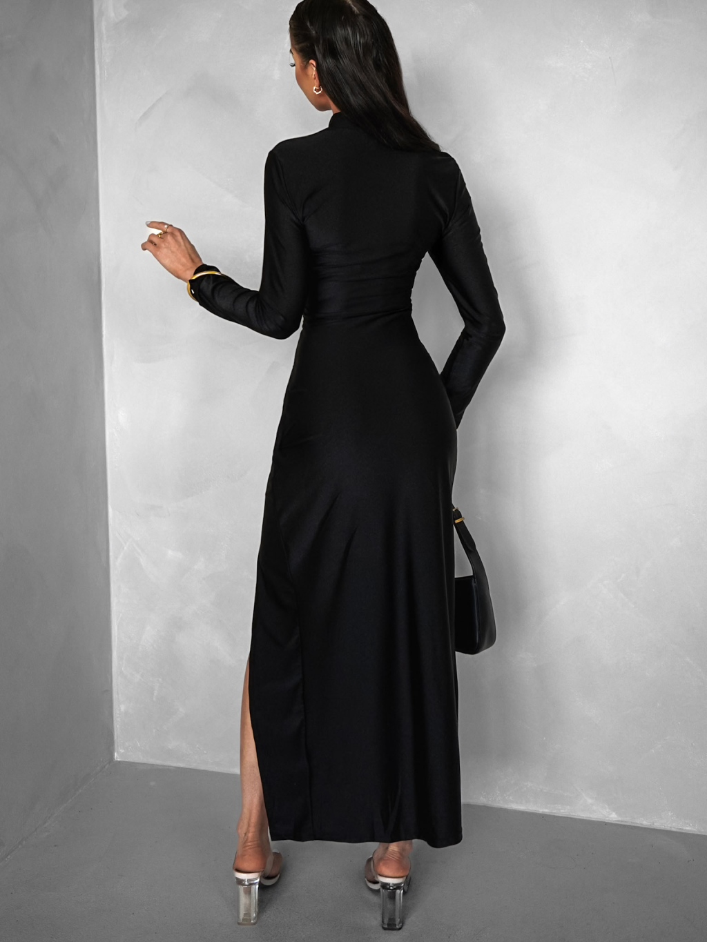 Černé společenské dlouhé šaty KHONAT s rozparkem