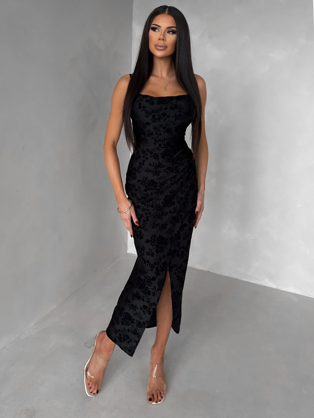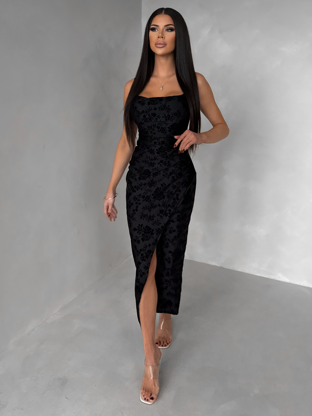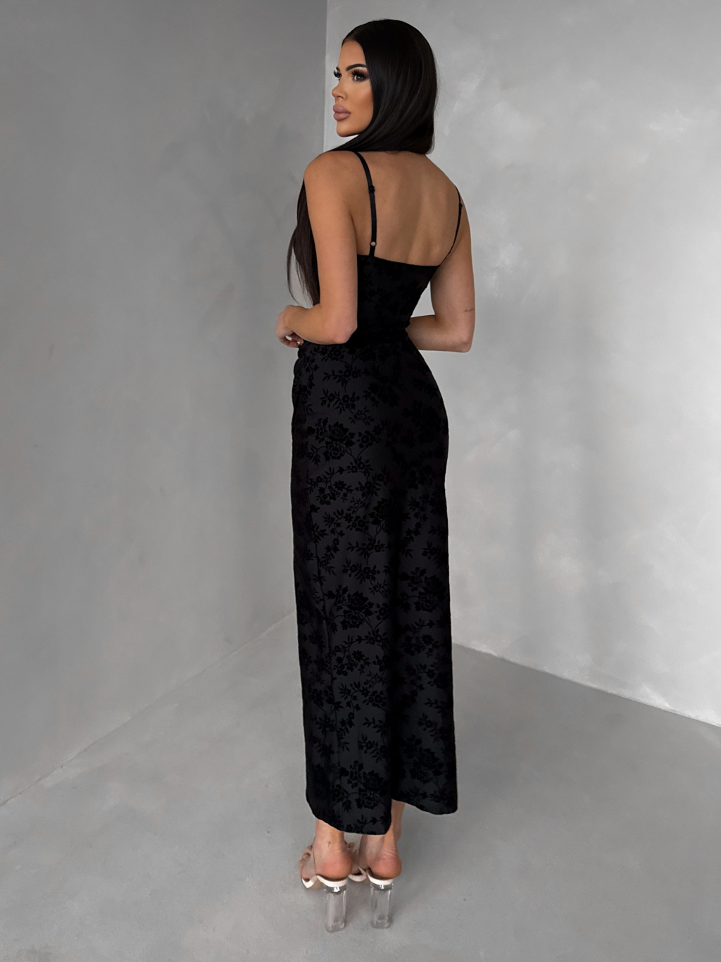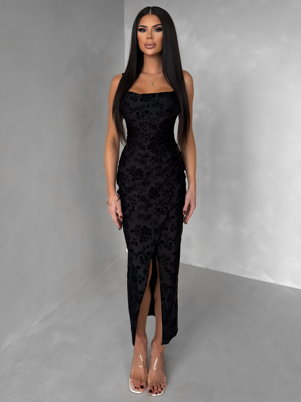 Černé společenské dlouhé šaty KIRETTA s rozparkem