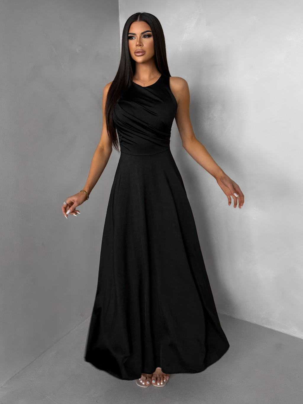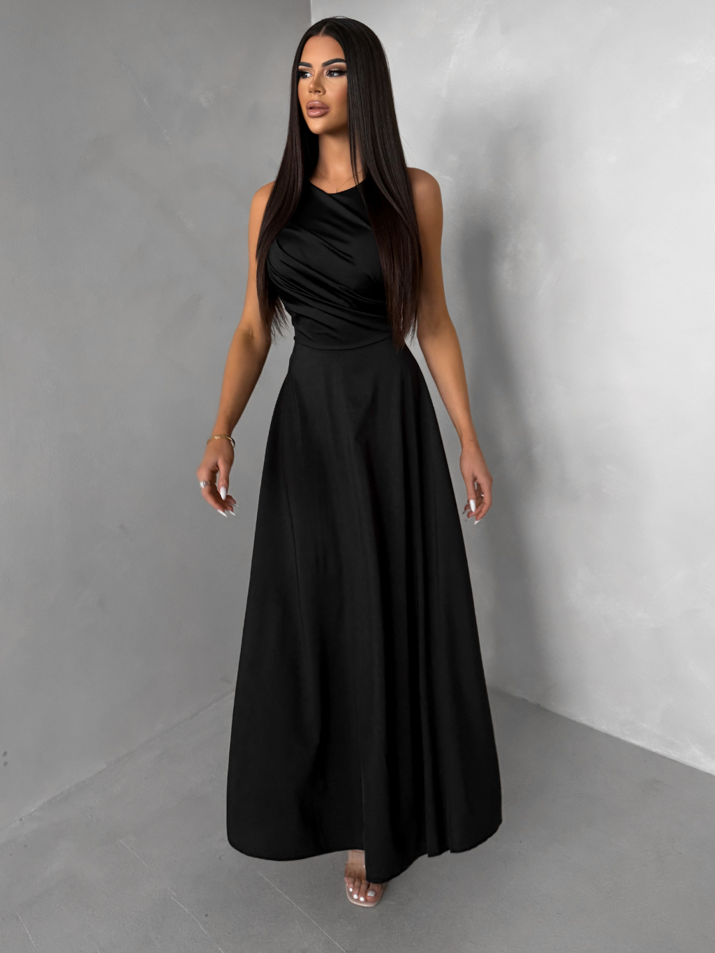 Černé společenské jednoduché dlouhé šaty TEMIRA