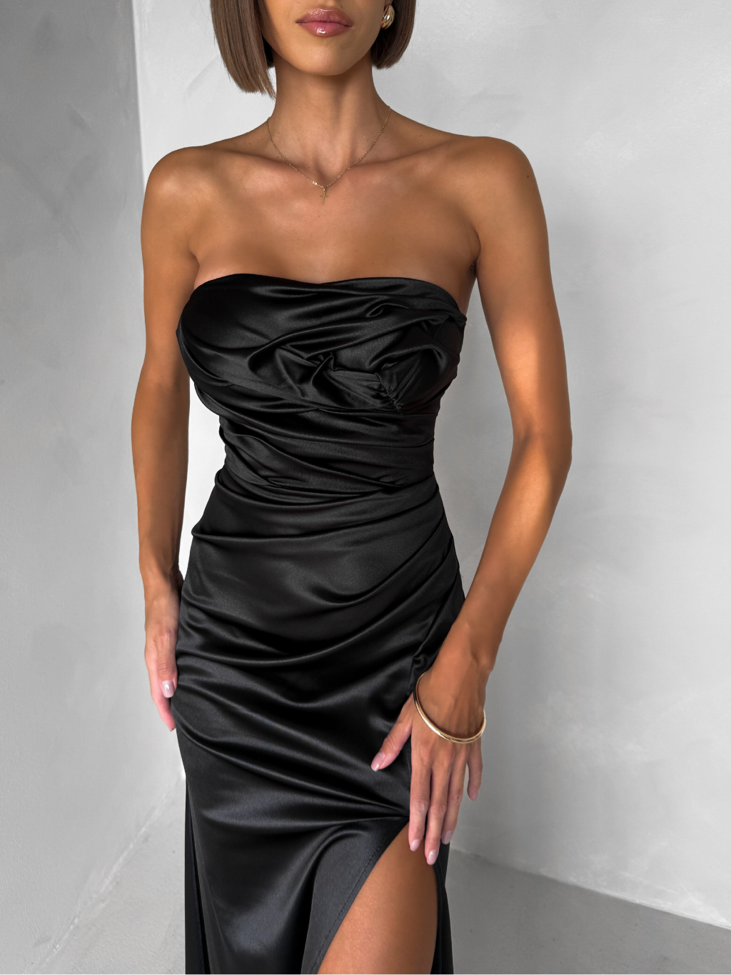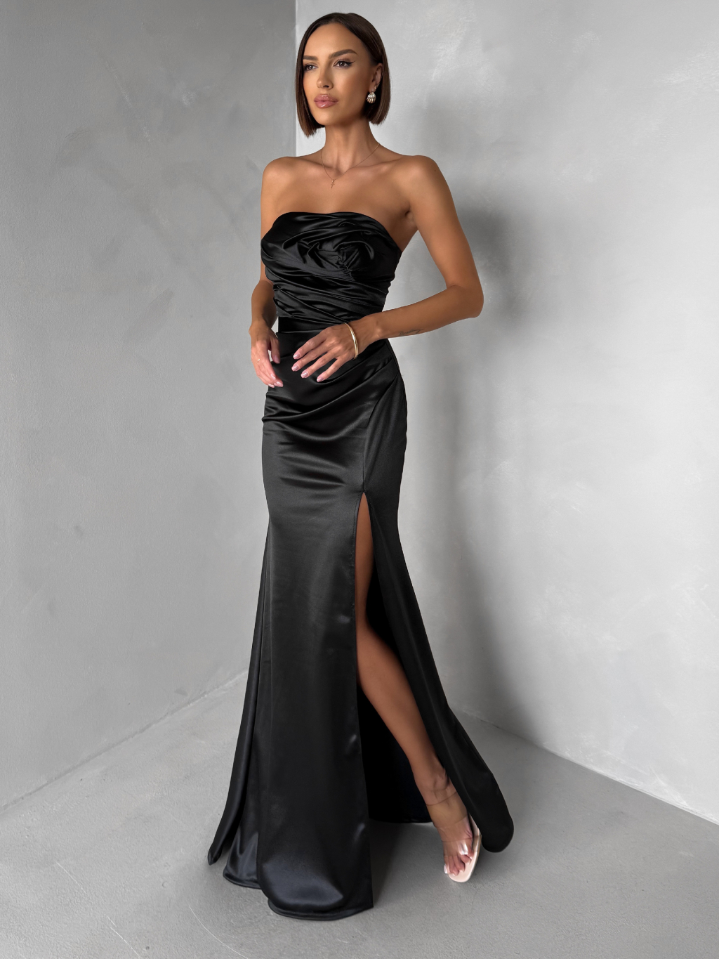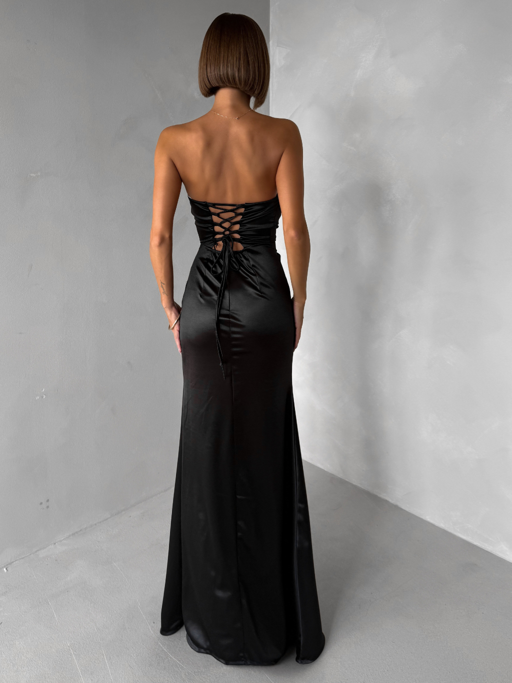 Černé společenské saténové korzetové dlouhé šaty ZONTIRE