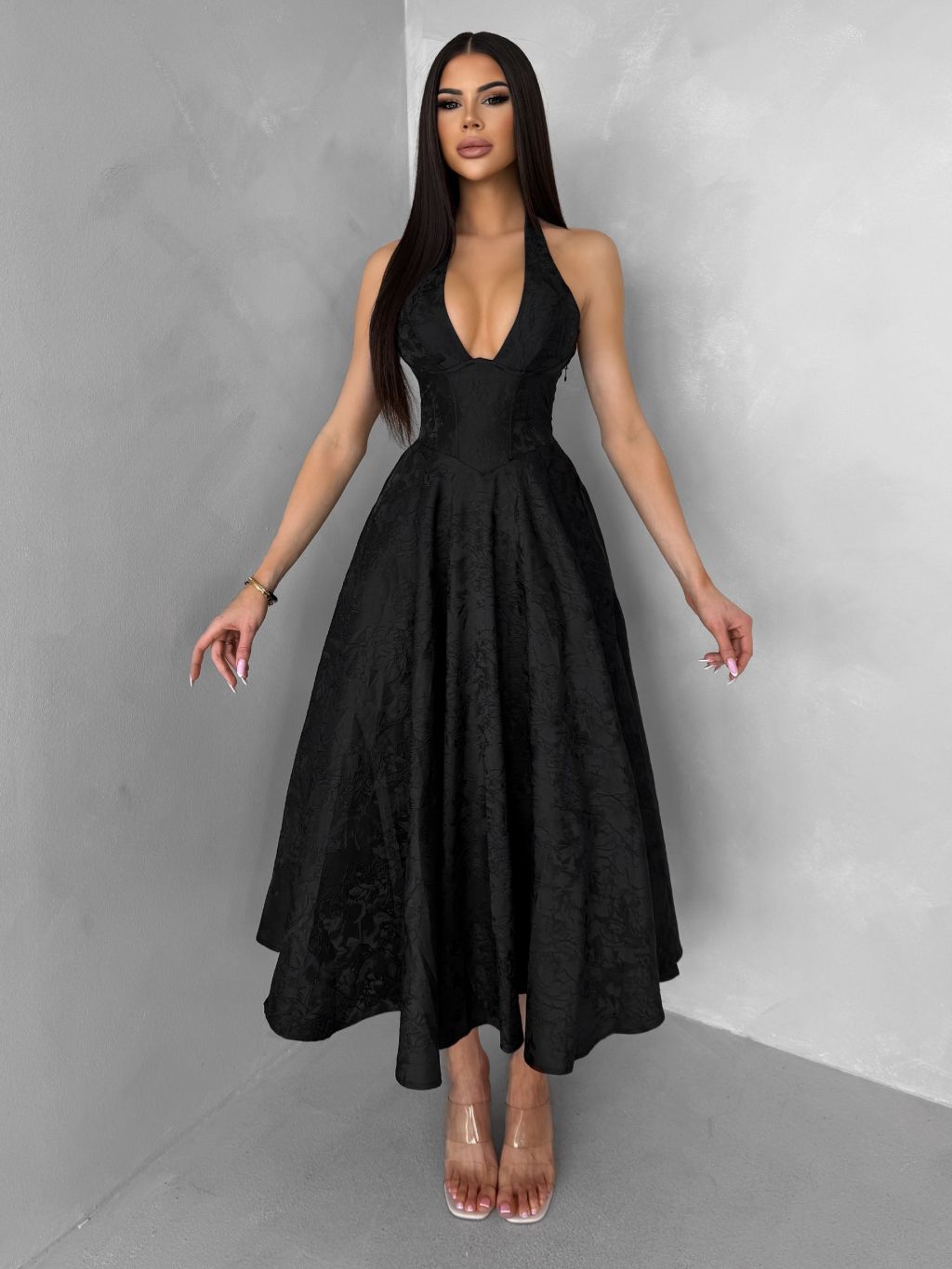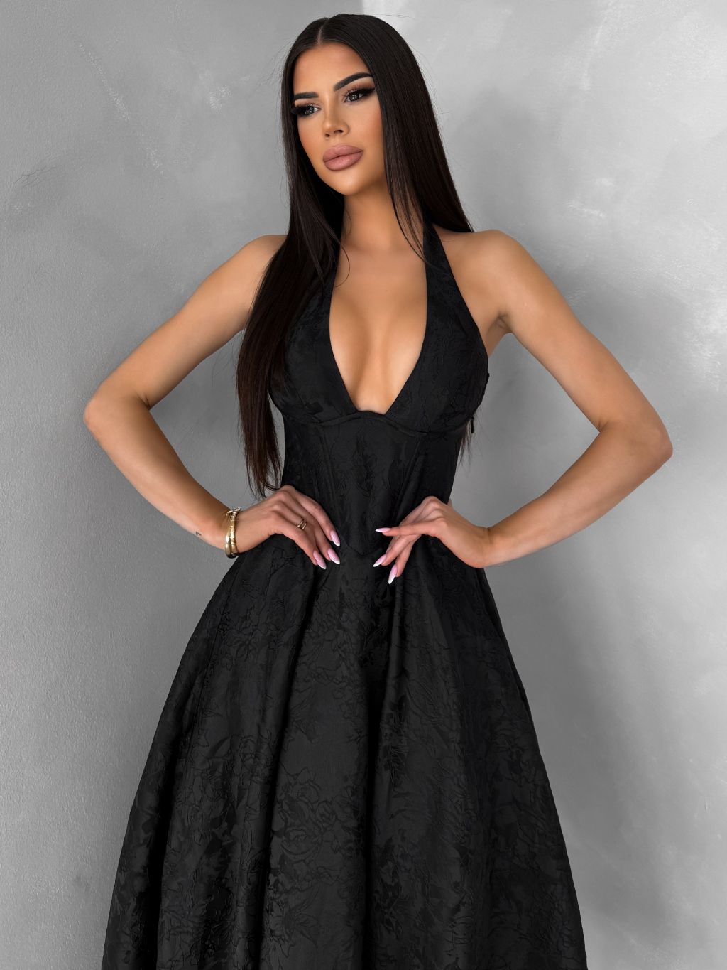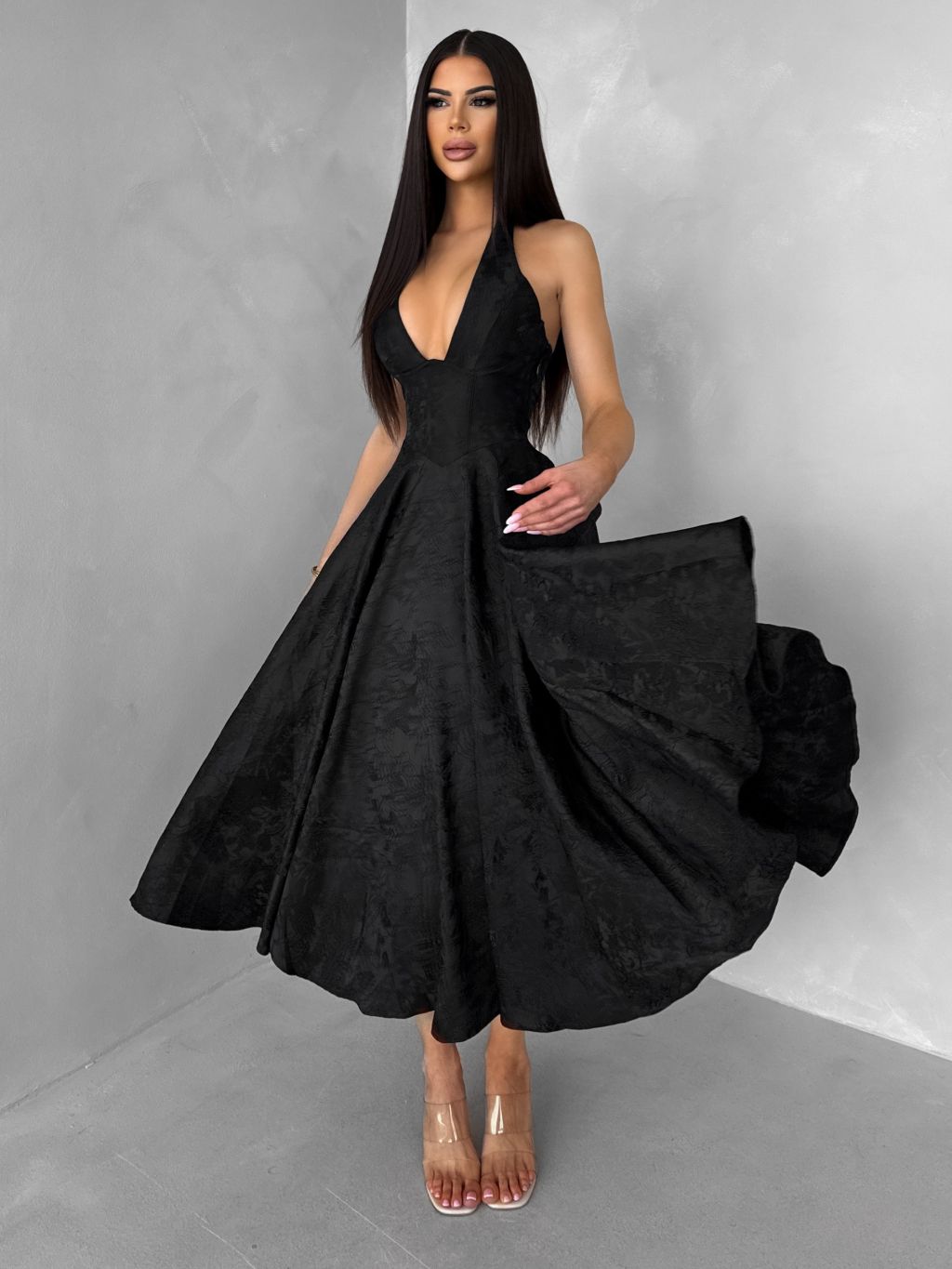Černé společenské vypasované áčkové midi šaty NYXORA