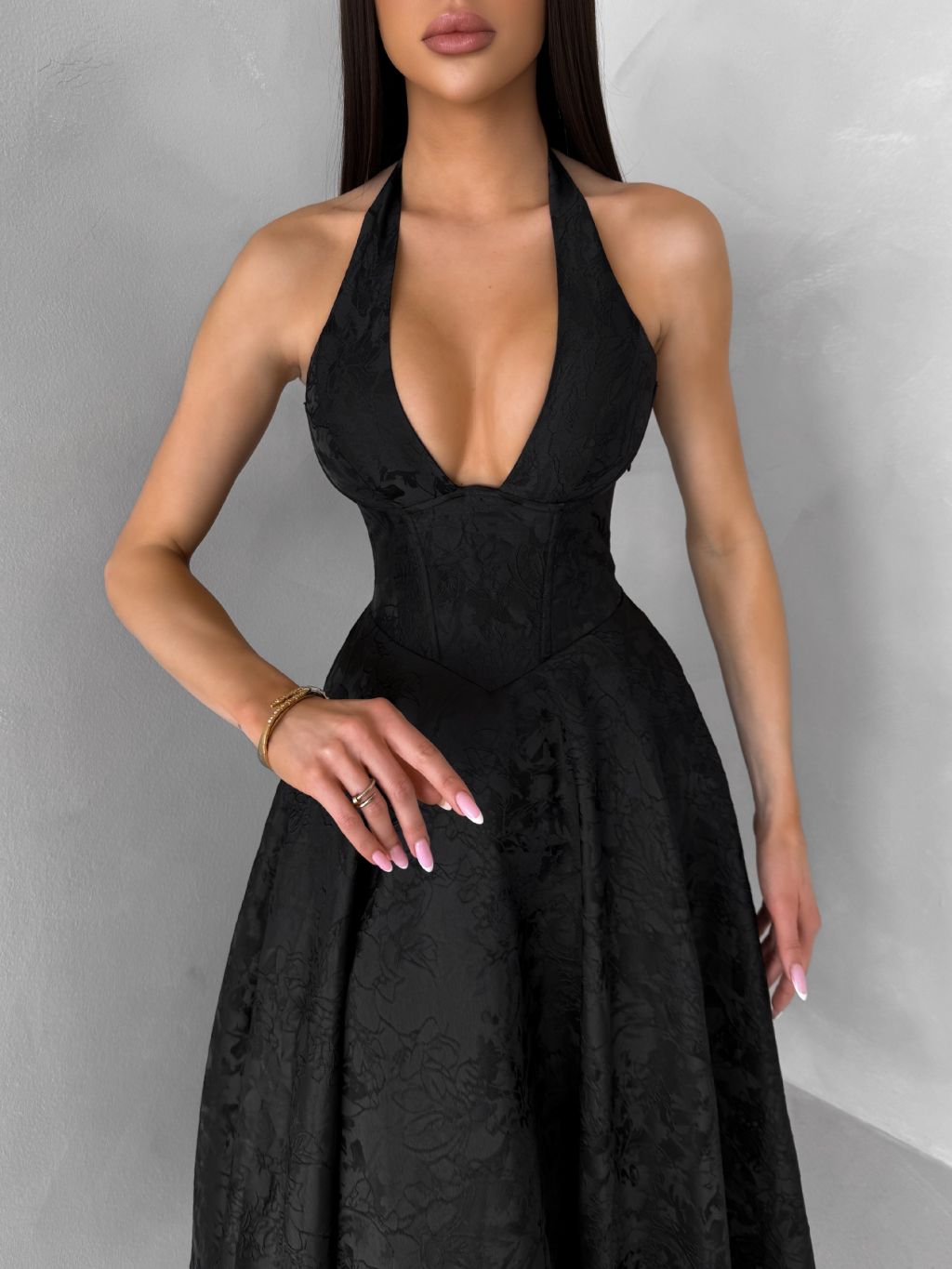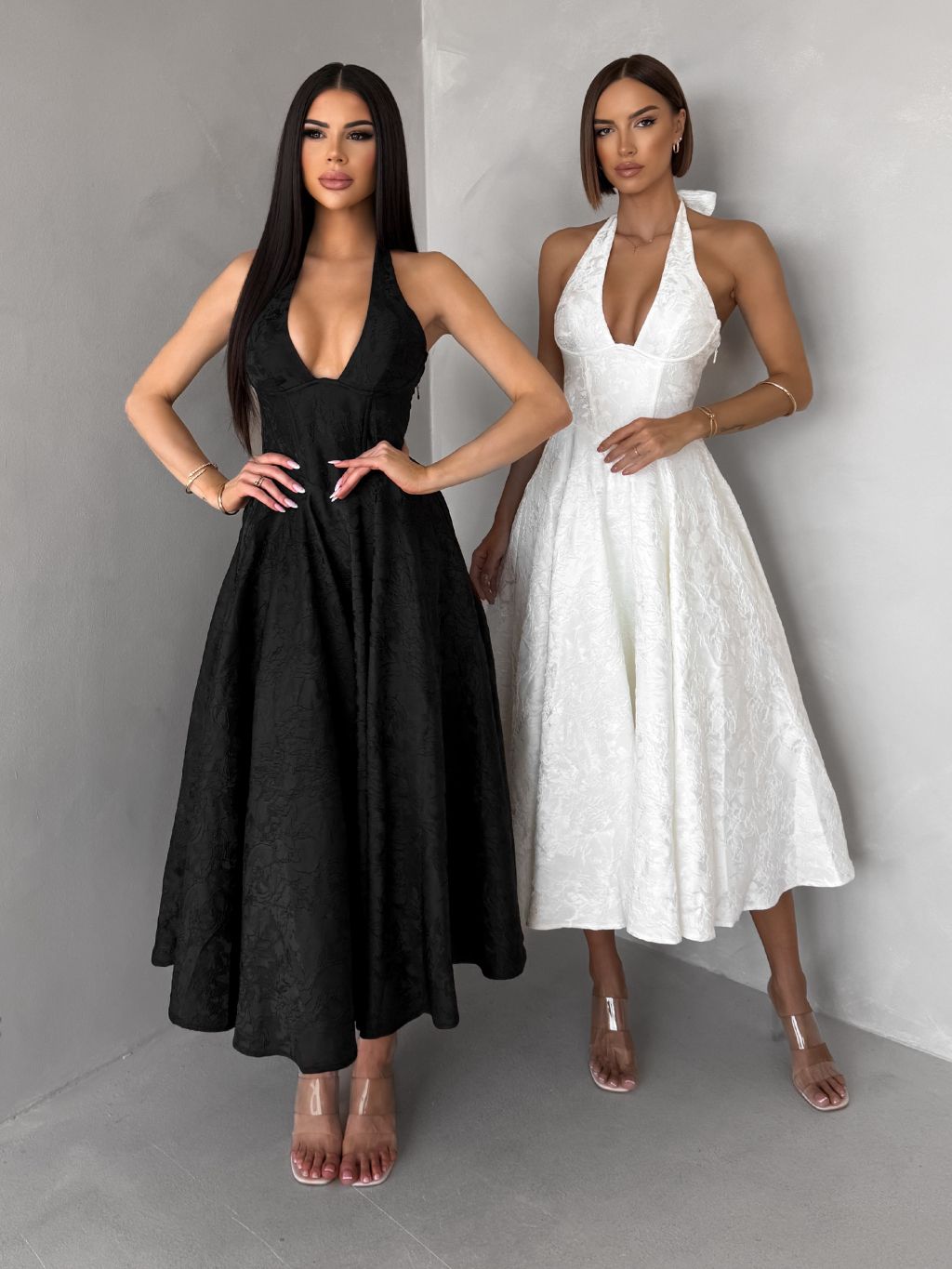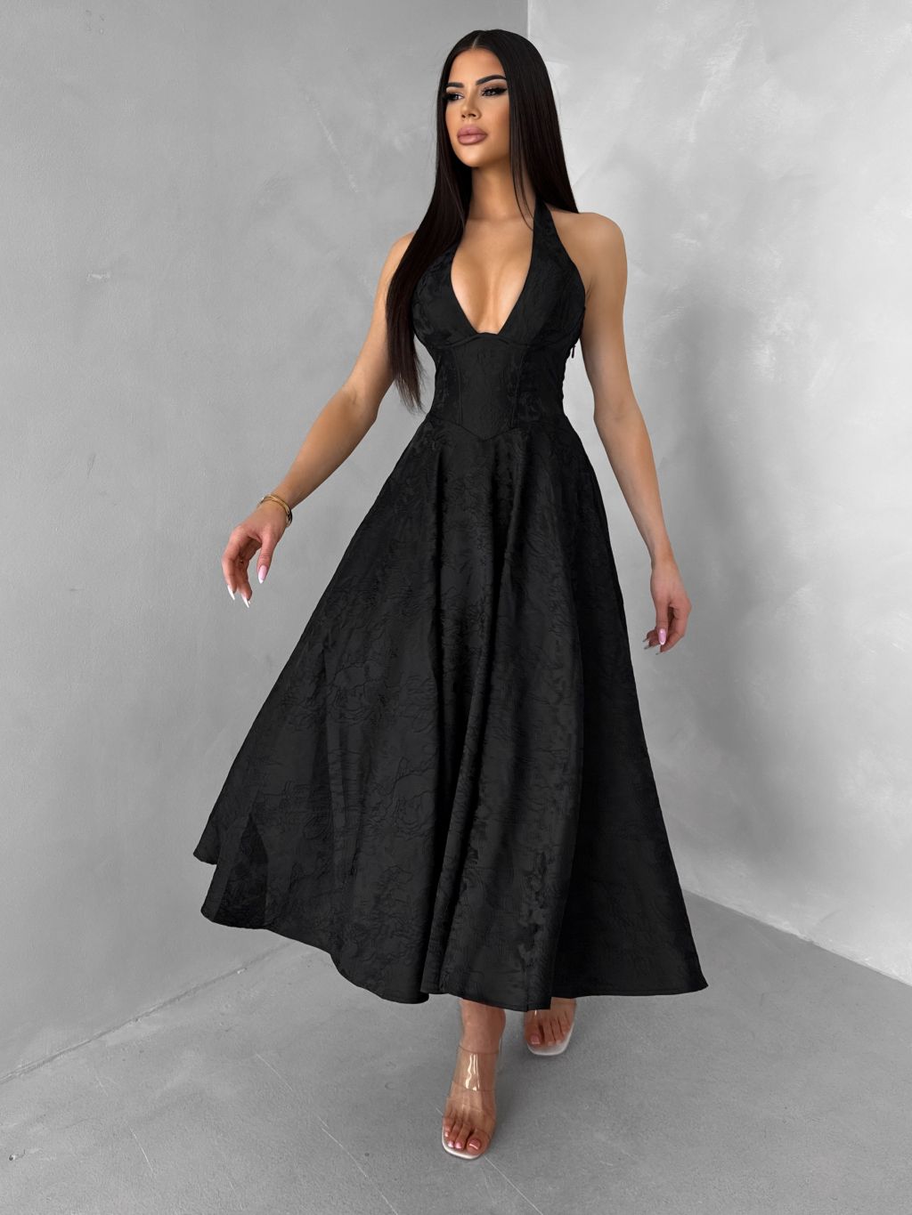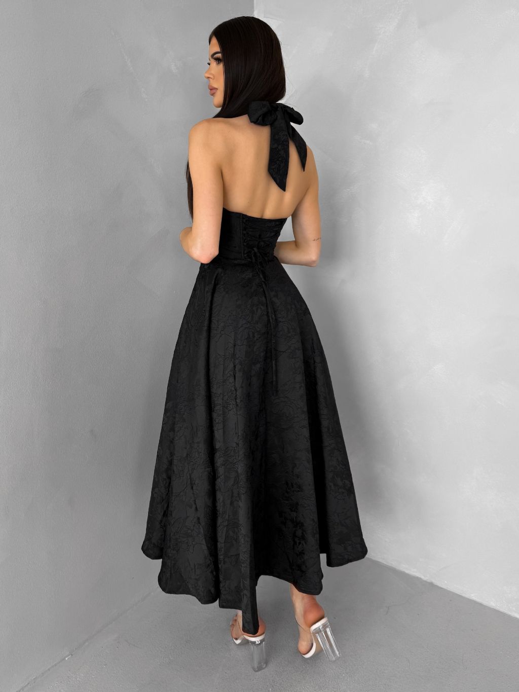 Černé společenské vypasované áčkové midi šaty NYXORA