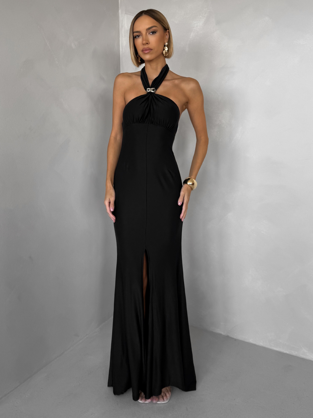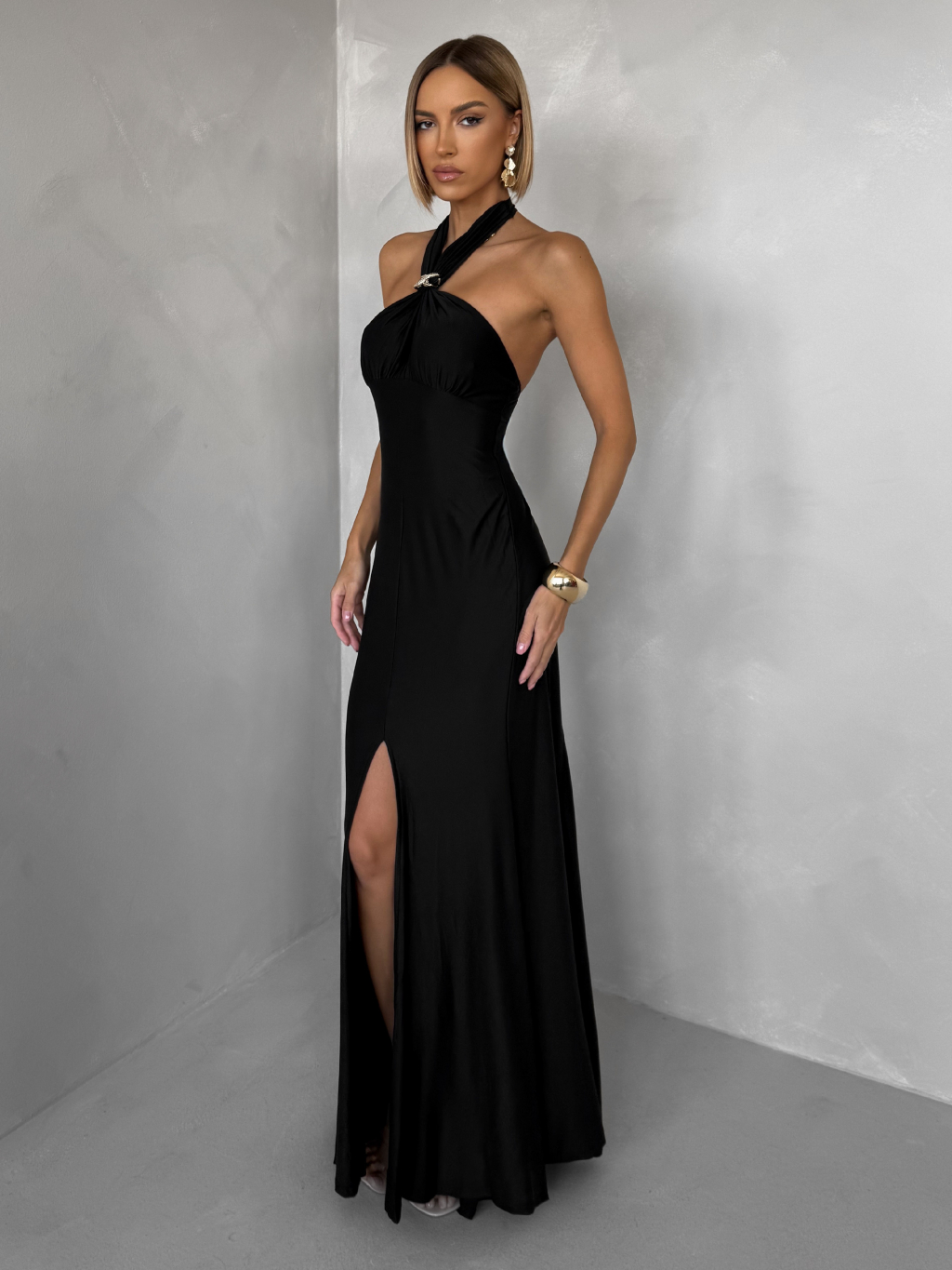 Černé večerní dlouhé šaty TRUCE s holými zády