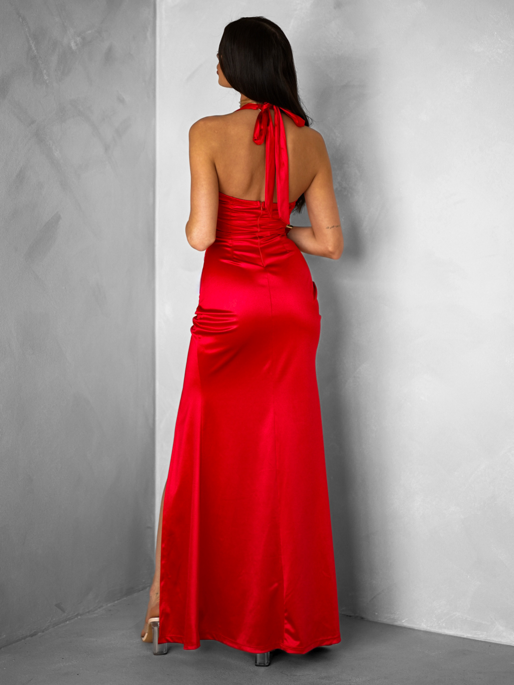 Červené dlouhé společenské šaty PULONA s rozparkem