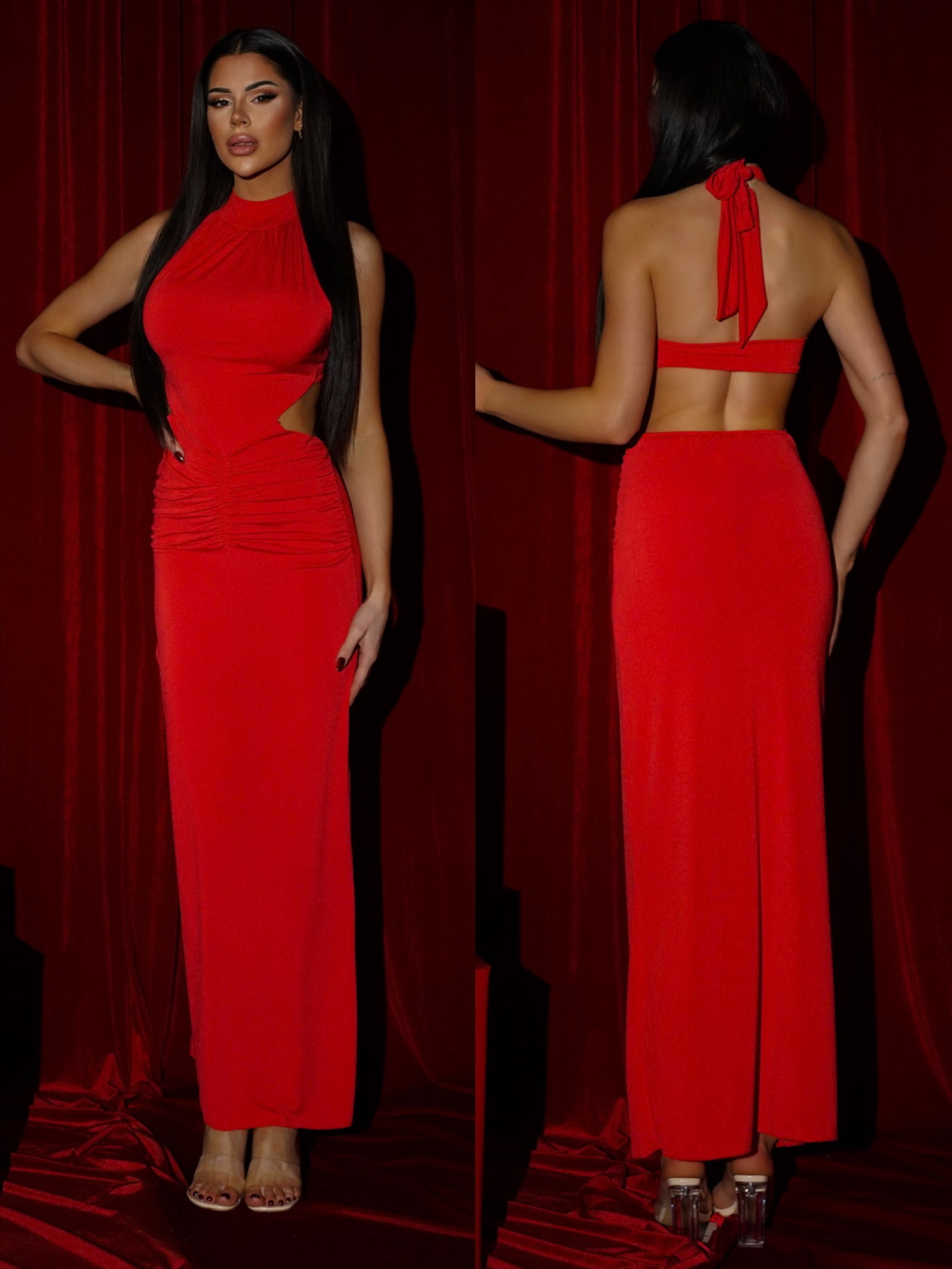 Červené elegantní dlouhé šaty FUREVO