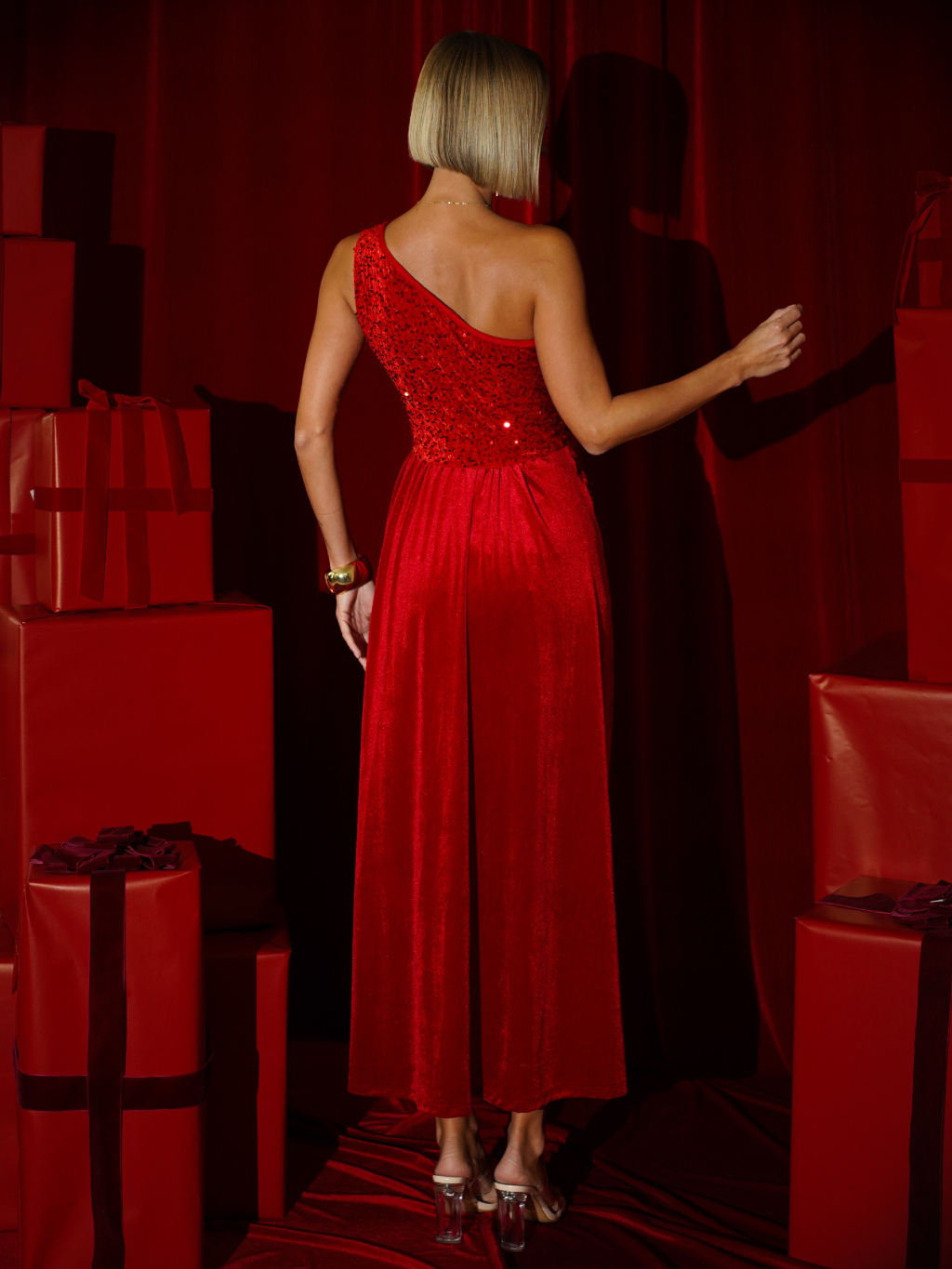 Červené flitrované dlouhé společenské šaty FAIDURI s vlečkou
