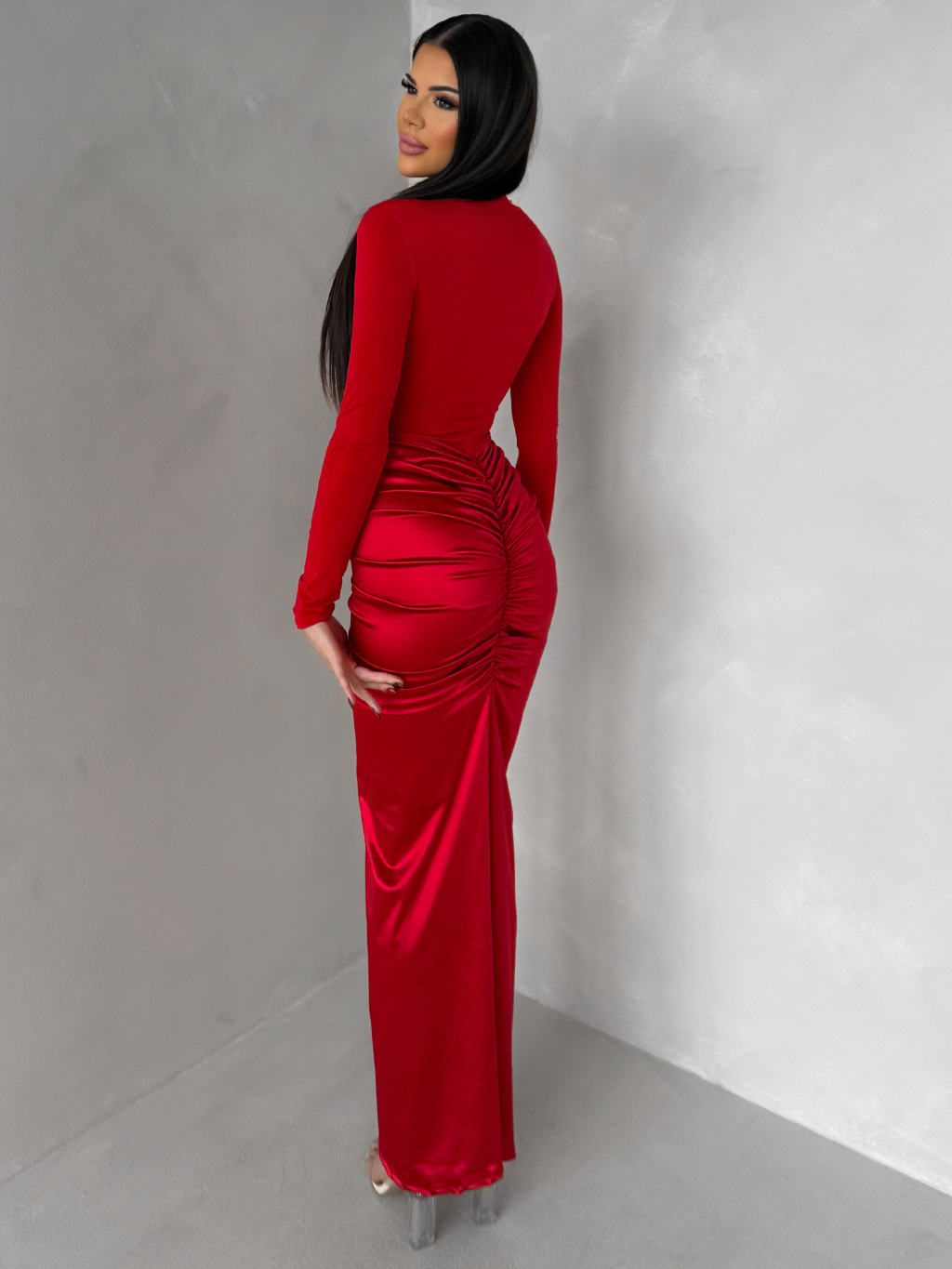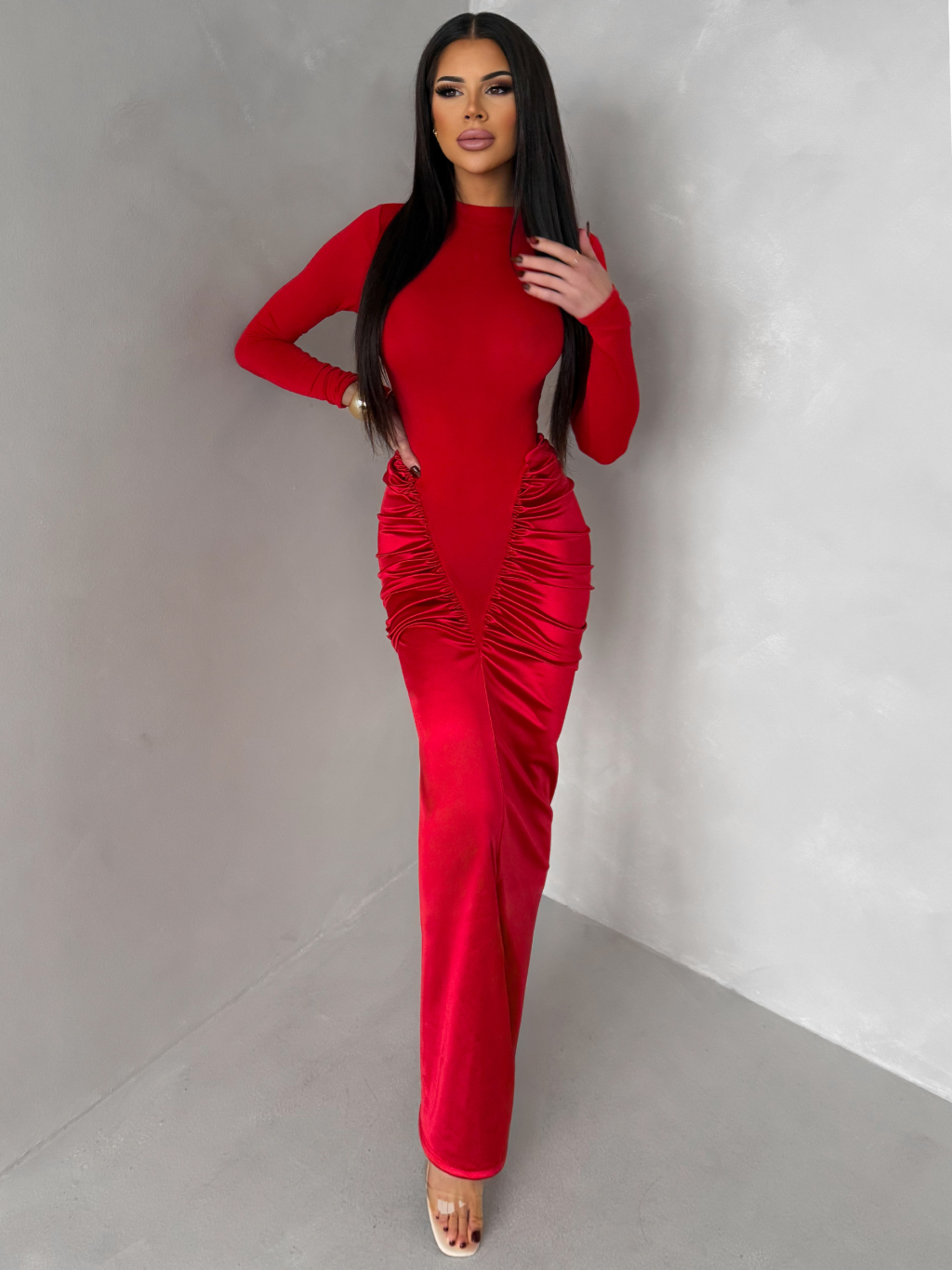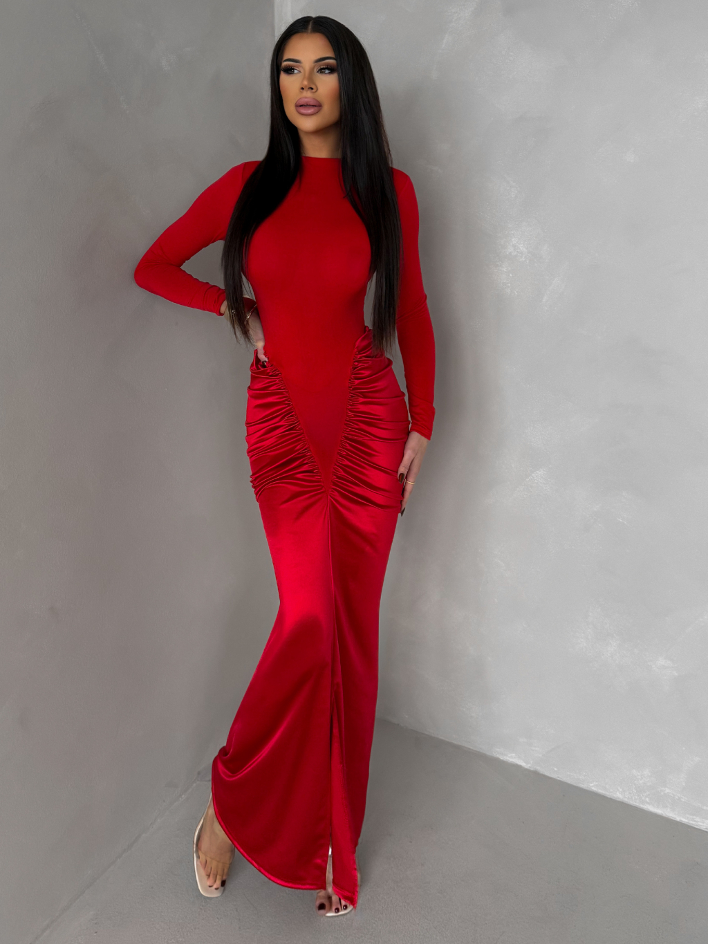 Červené společenské dlouhé šaty SORAYA s dlouhým rukávem