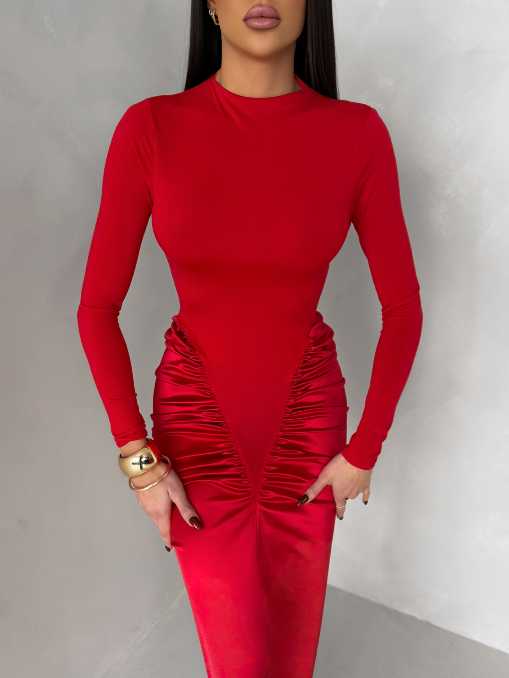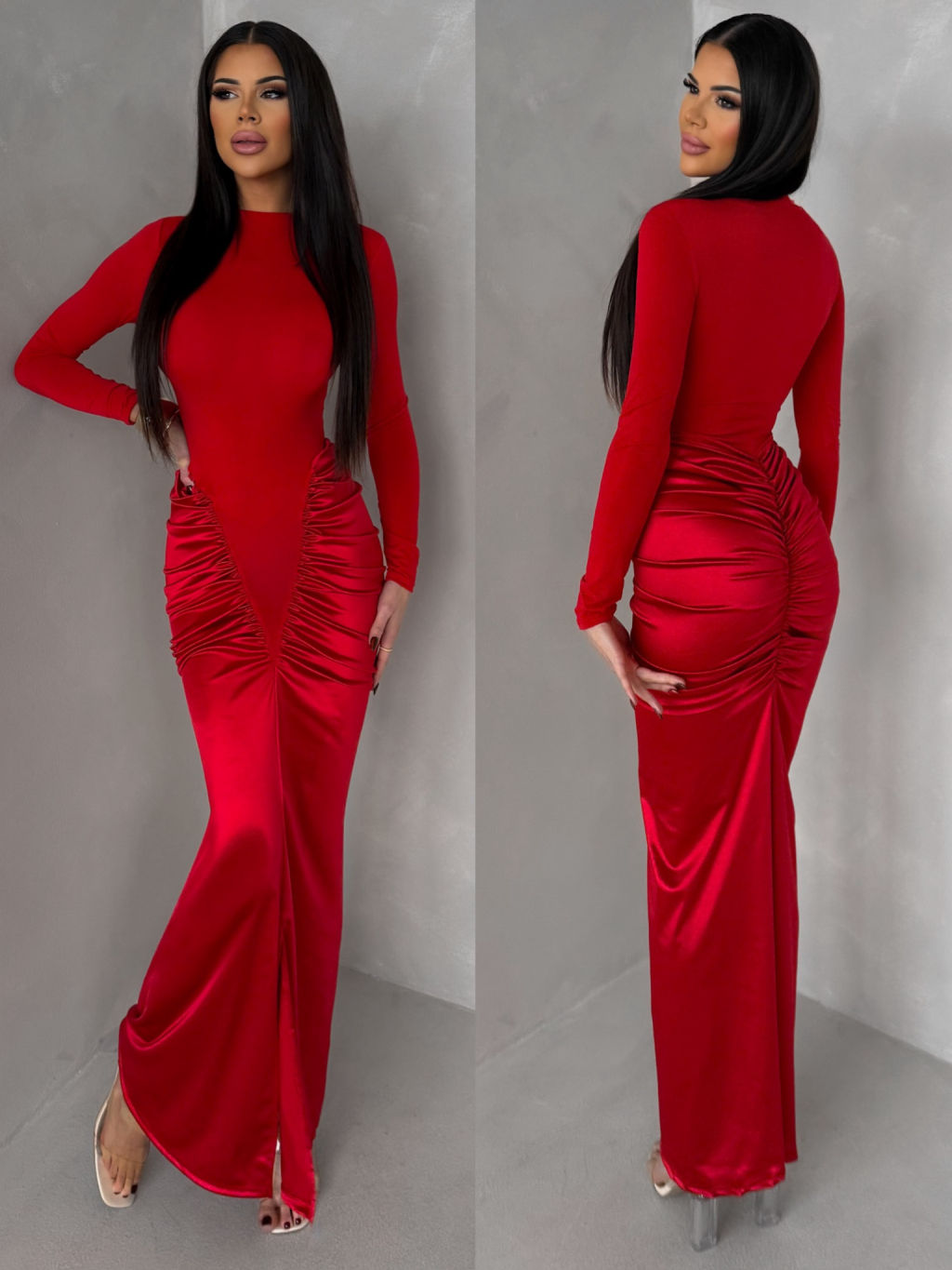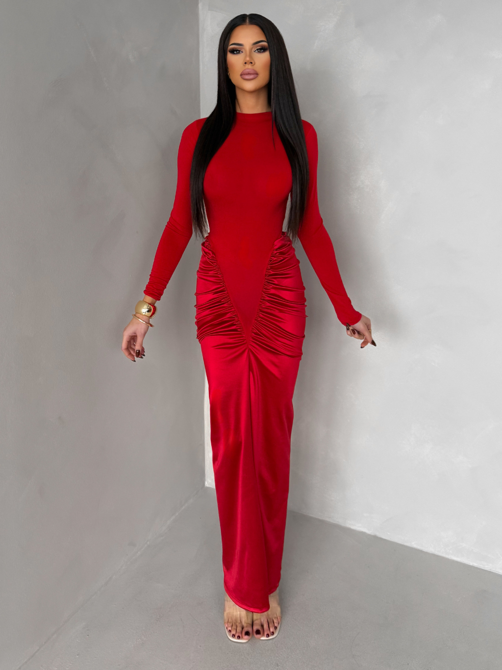 Červené společenské dlouhé šaty SORAYA s dlouhým rukávem