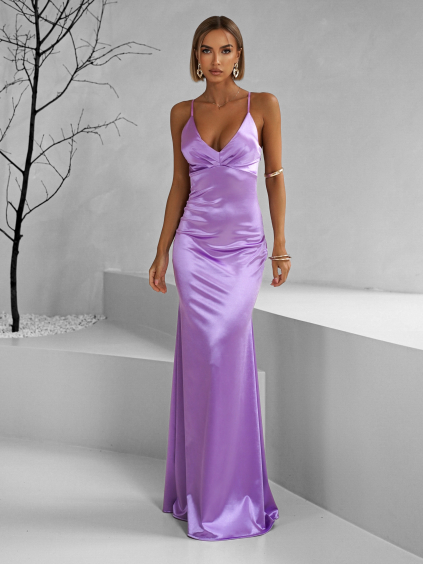 Fialové elegantní elastické šaty LUCIAN kolem krku