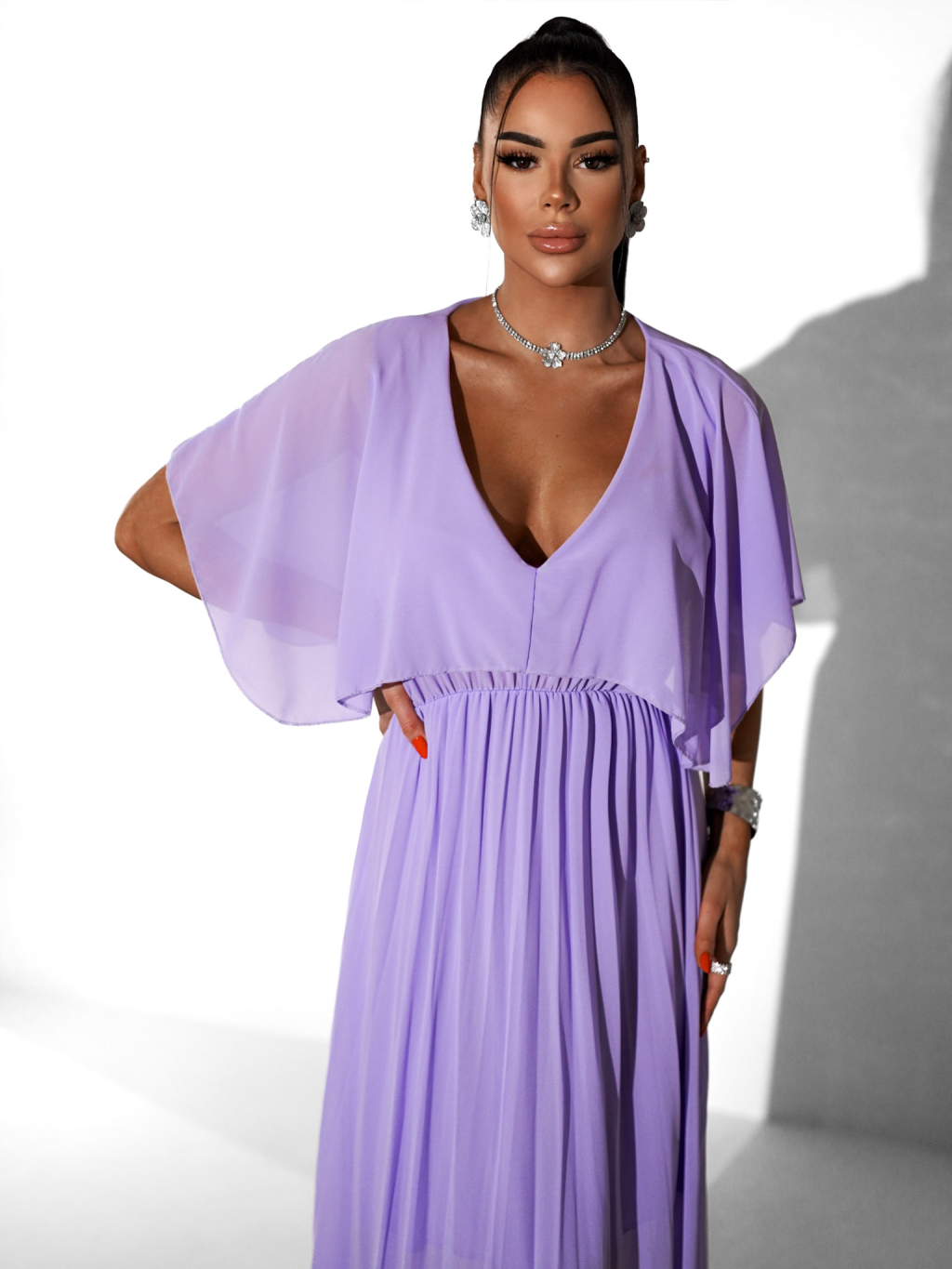 Fialové plisované šaty PARFOMELLE s výsřihem