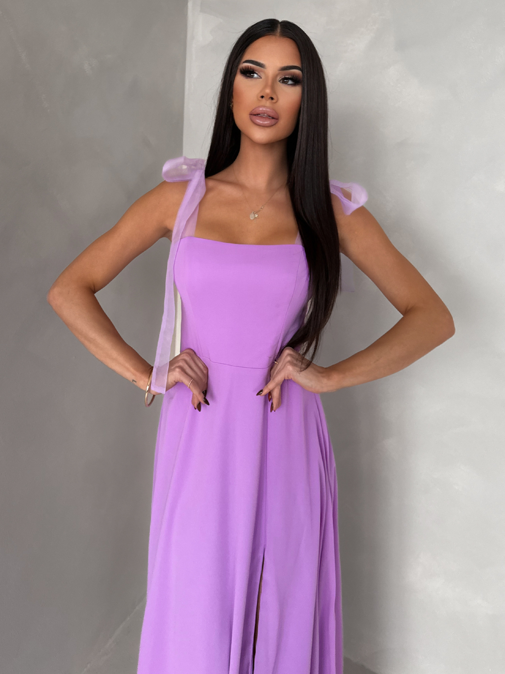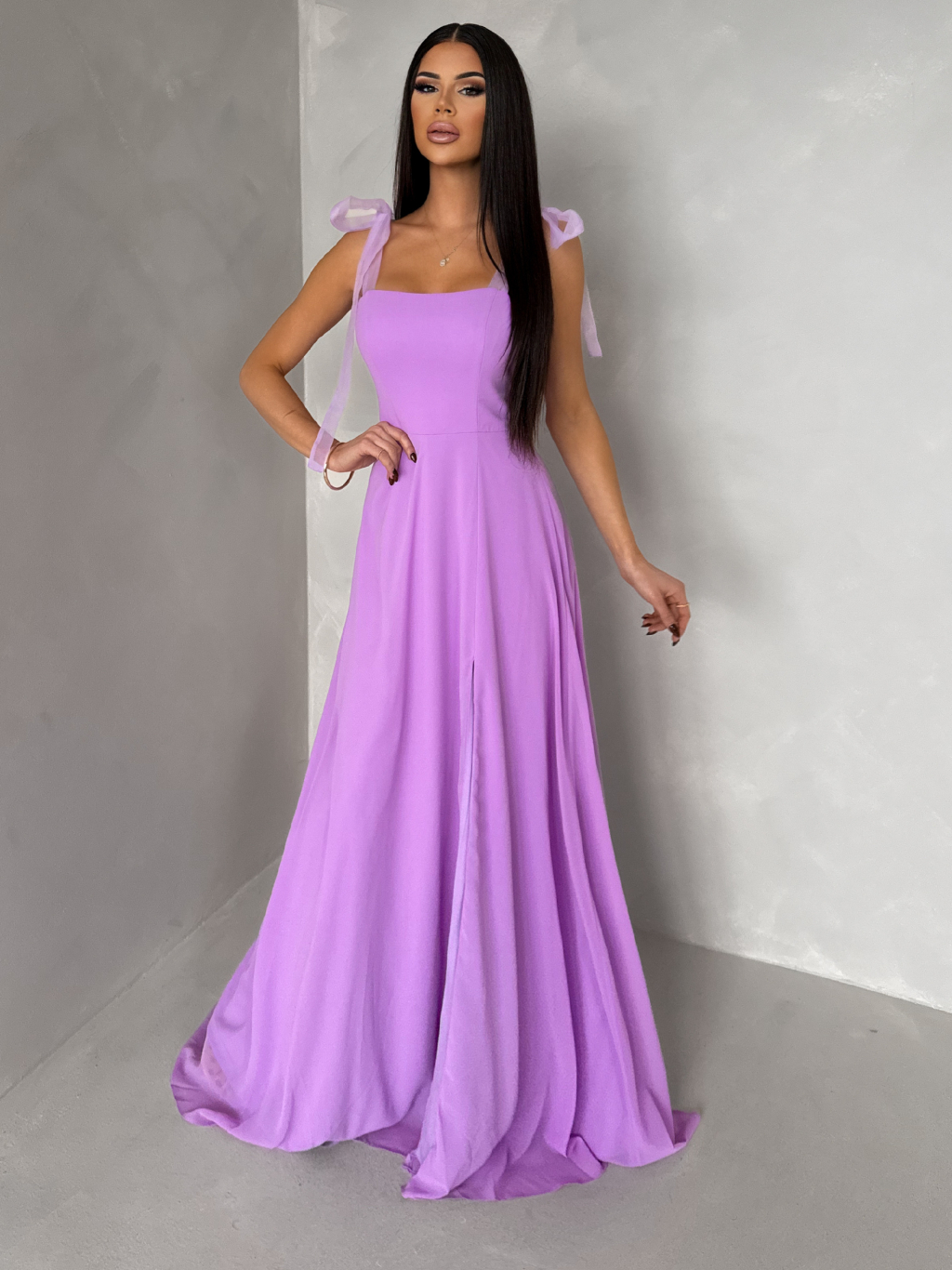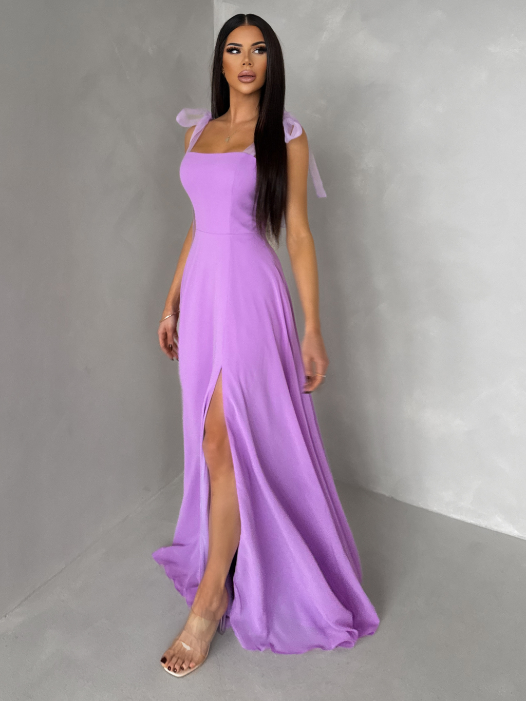 Fialové společenské dlouhé šaty AMIREZA s rozparkem
