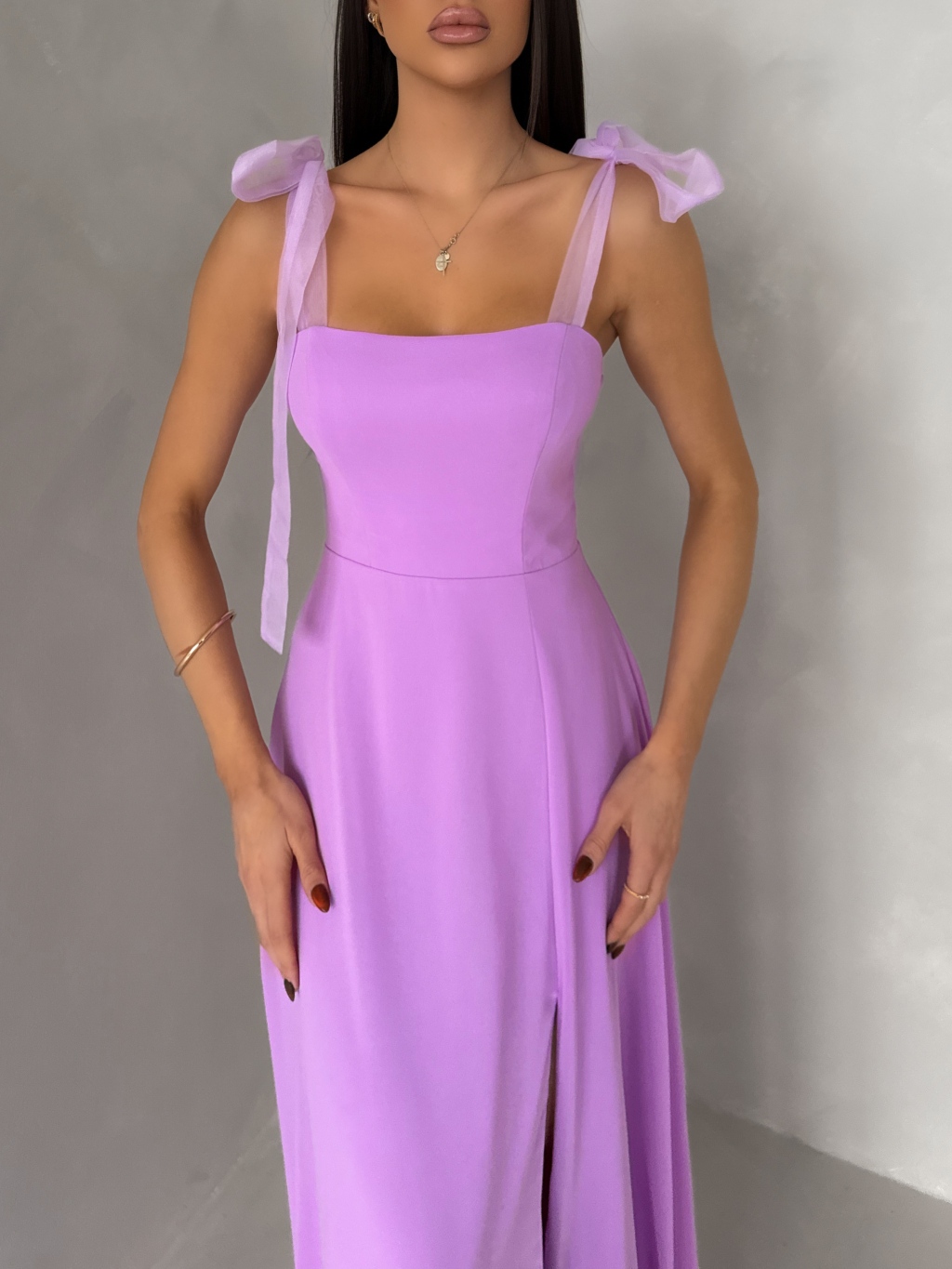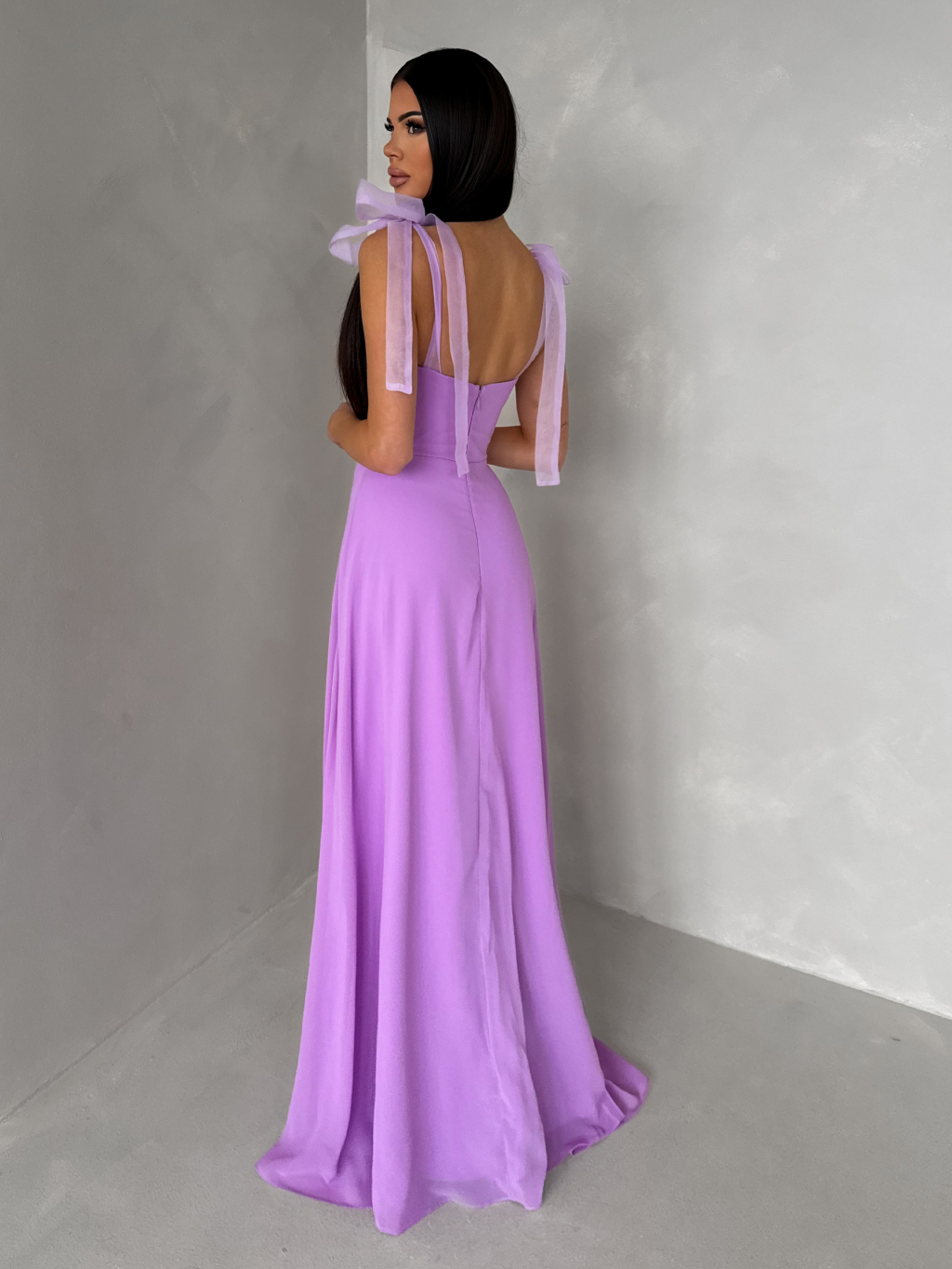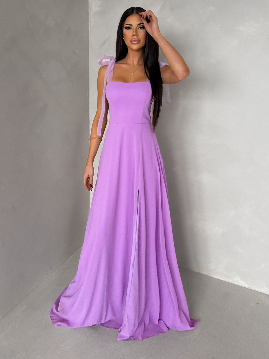 Fialové společenské dlouhé šaty AMIREZA s rozparkem
