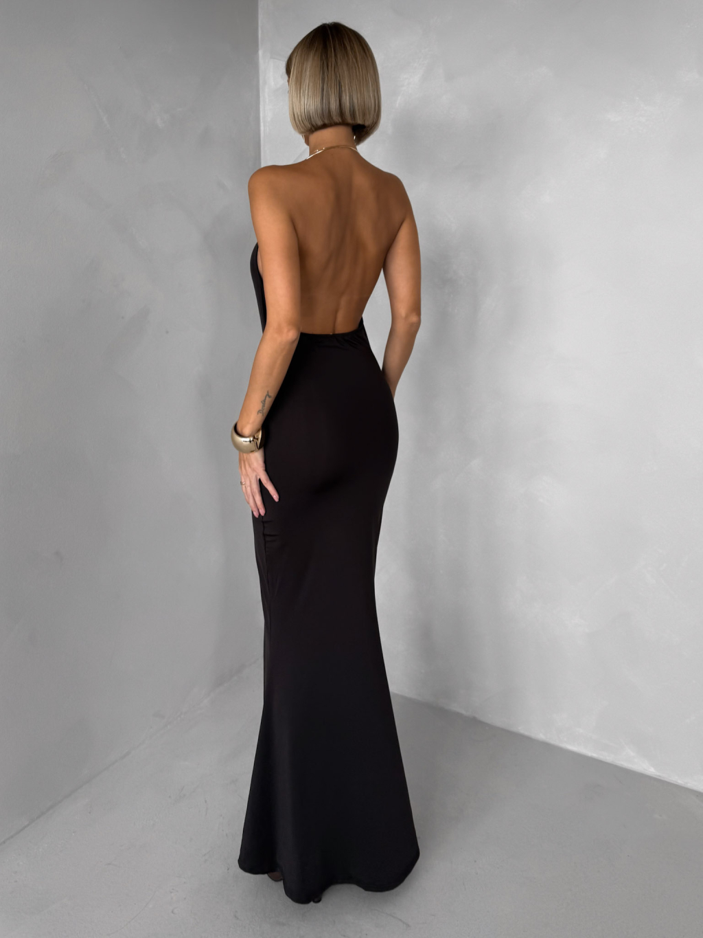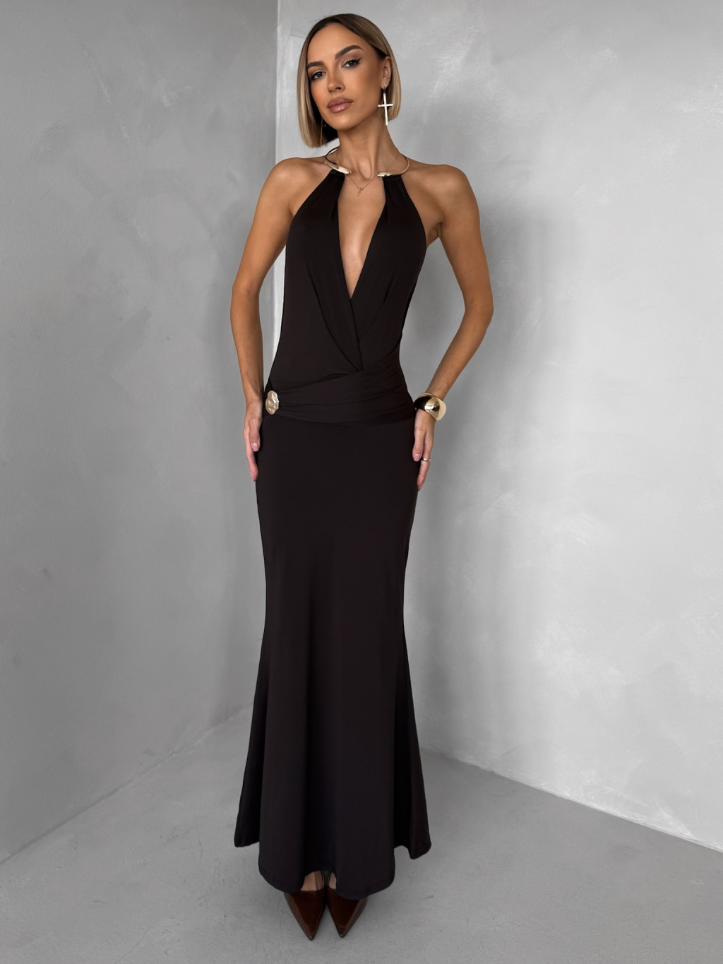 Hnědé elegantní společenské šaty ARKENY s ozdobou