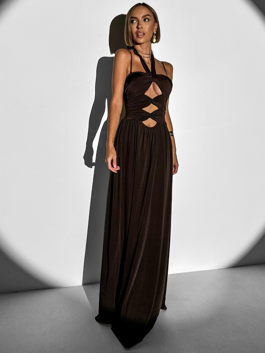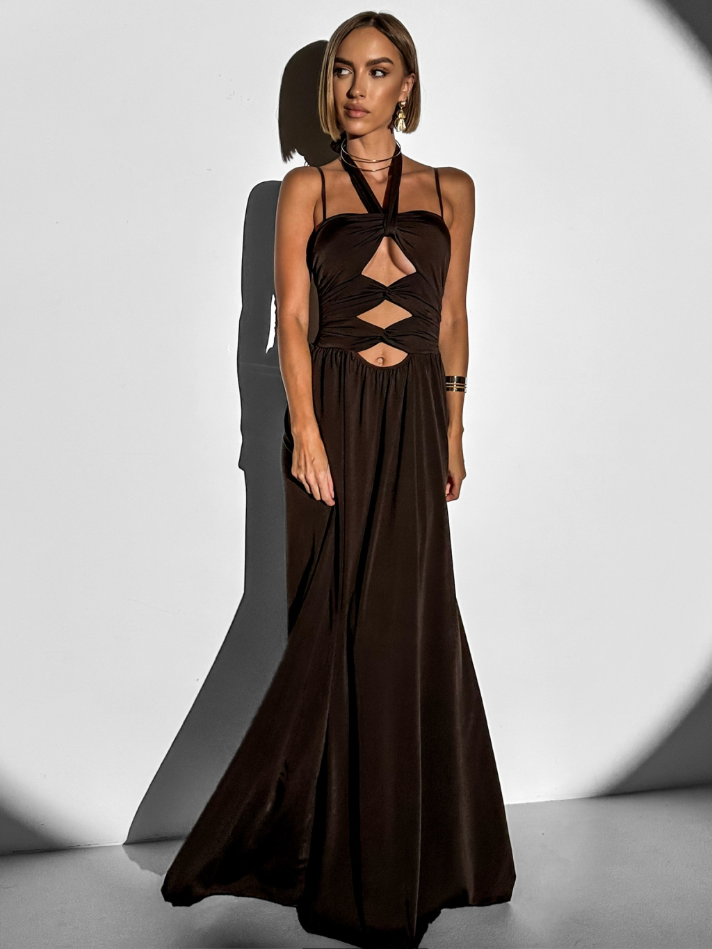 Hnědé večerní dlouhé šaty DATUNA