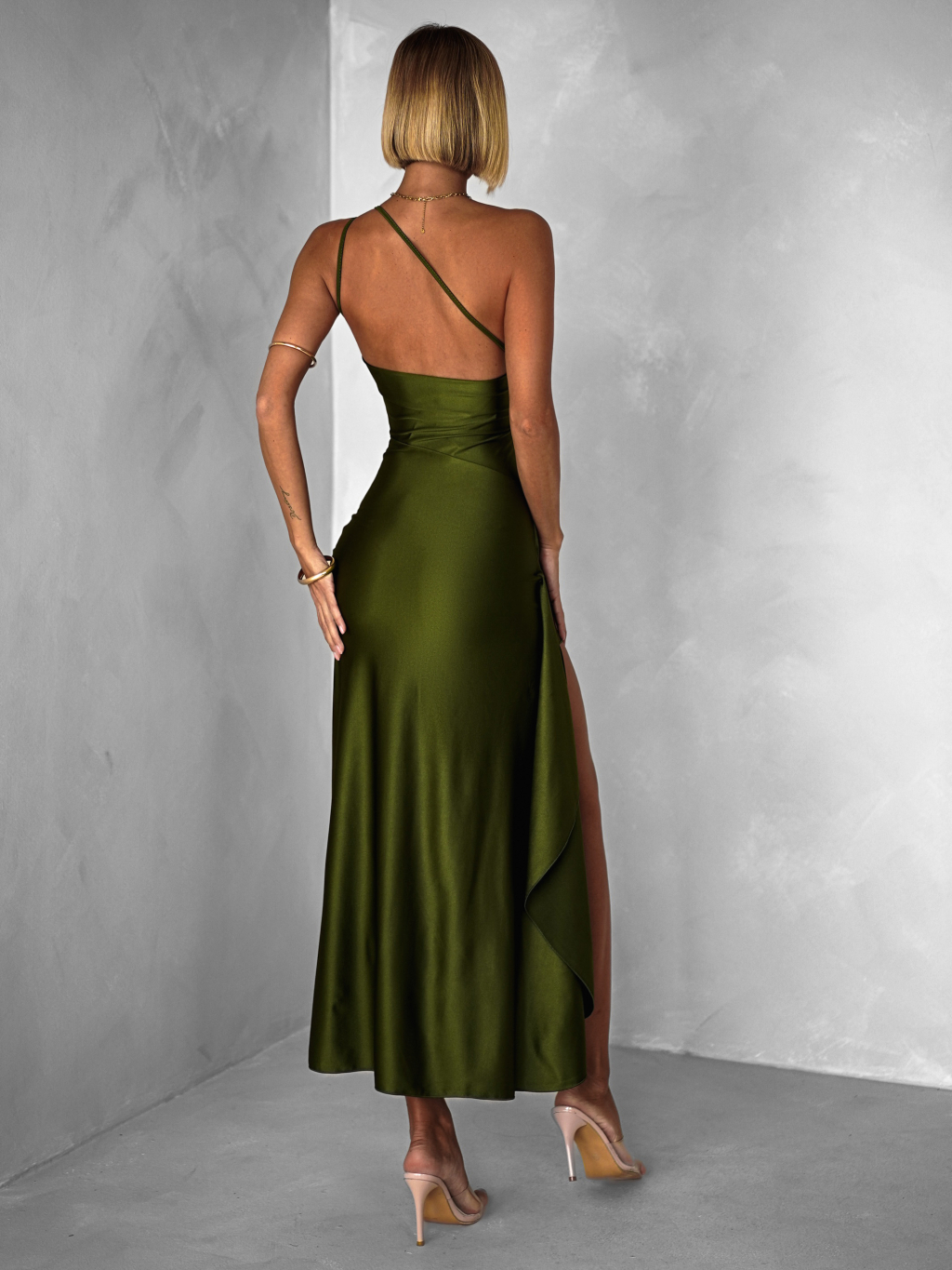 Khaki dlouhé šaty ARWEN na jedno rameno
