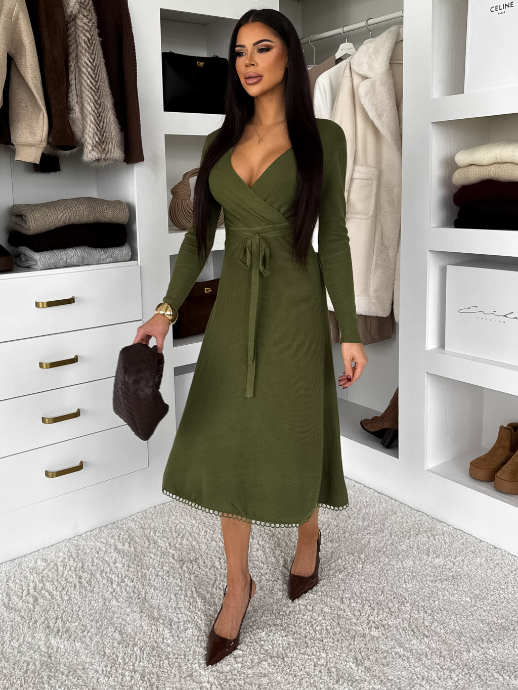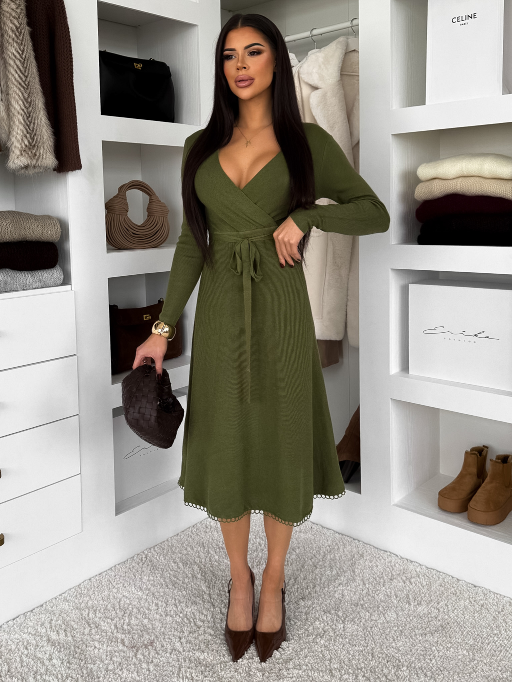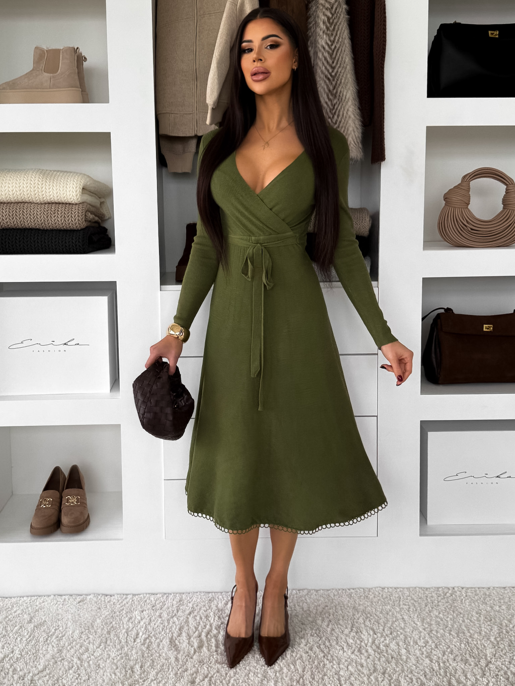 Khaki elegantní áčkové midi šaty TEYVORA s páskem