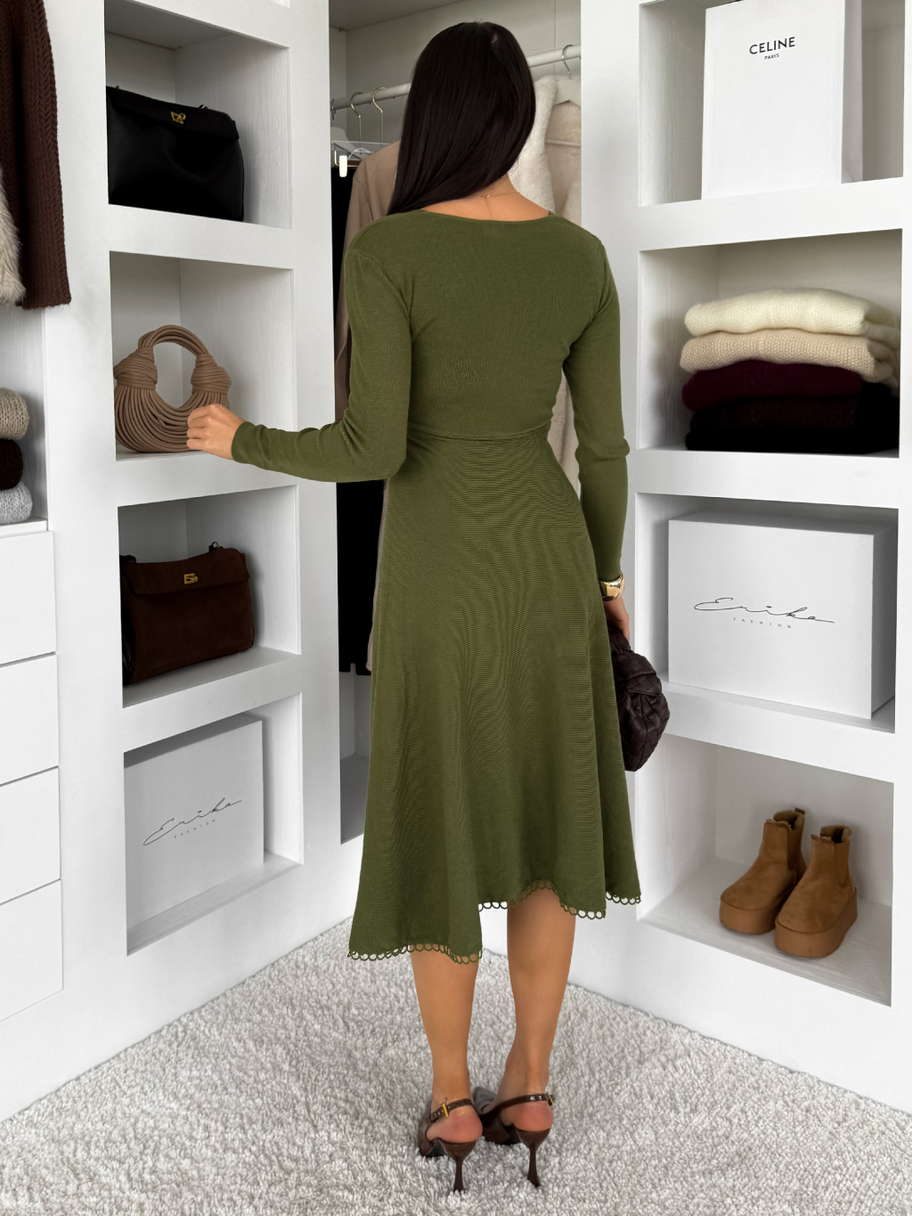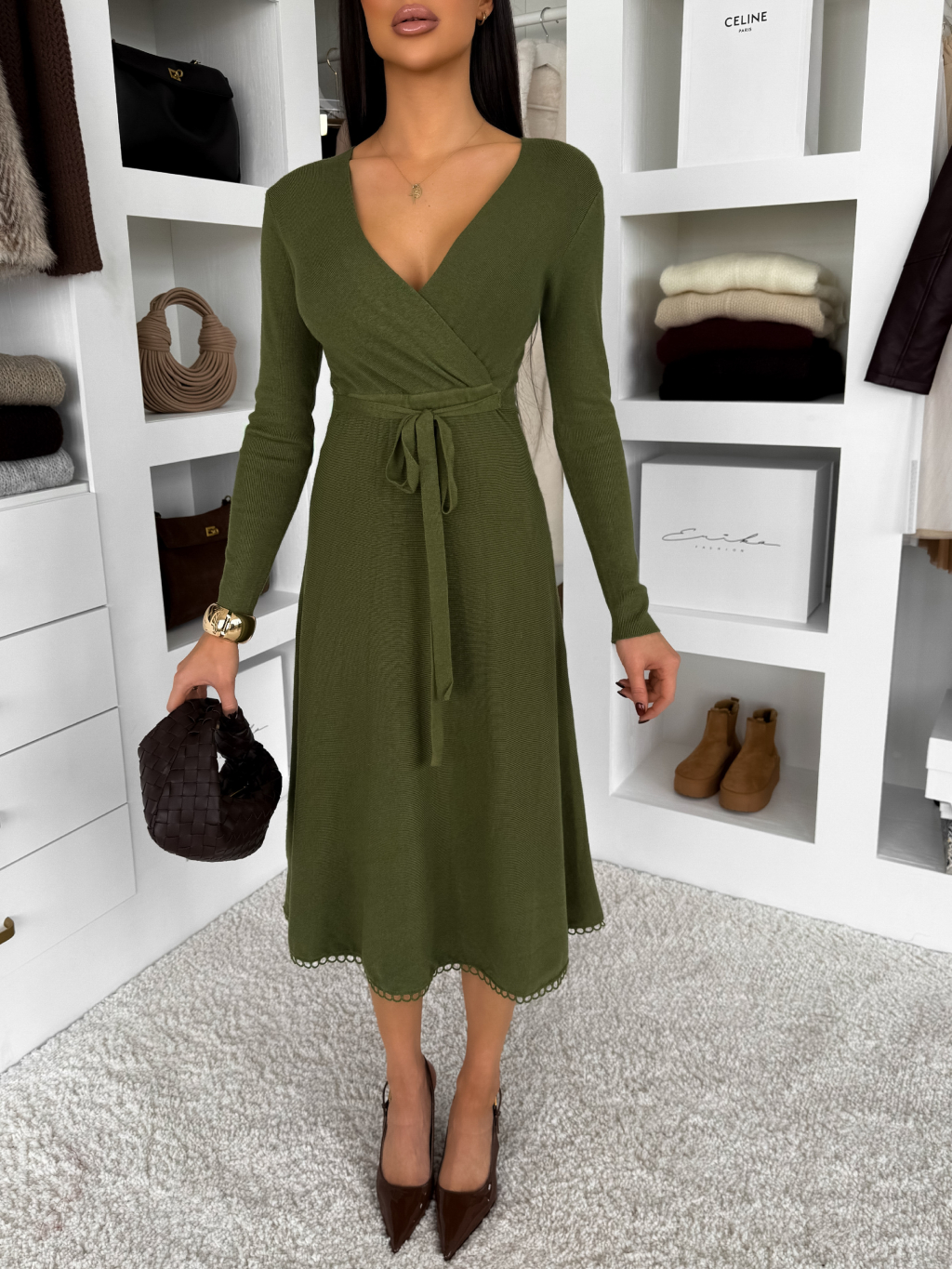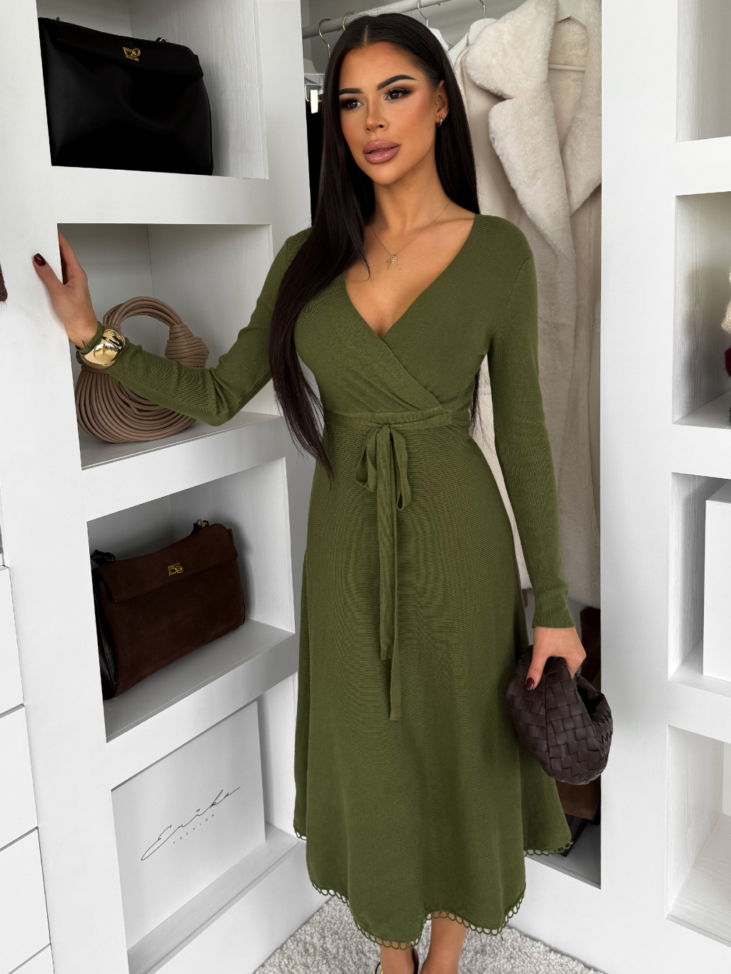 Khaki elegantní áčkové midi šaty TEYVORA s páskem