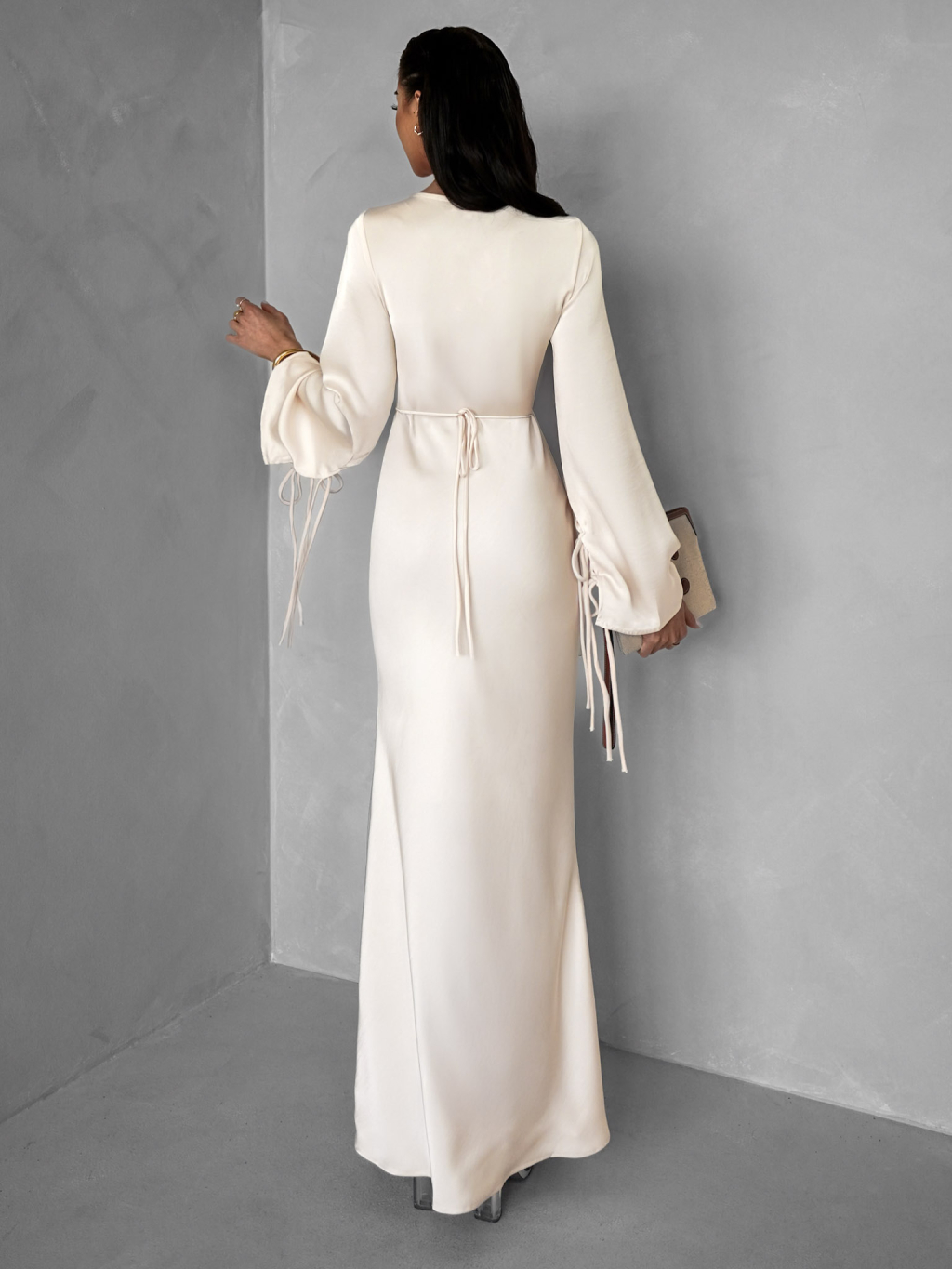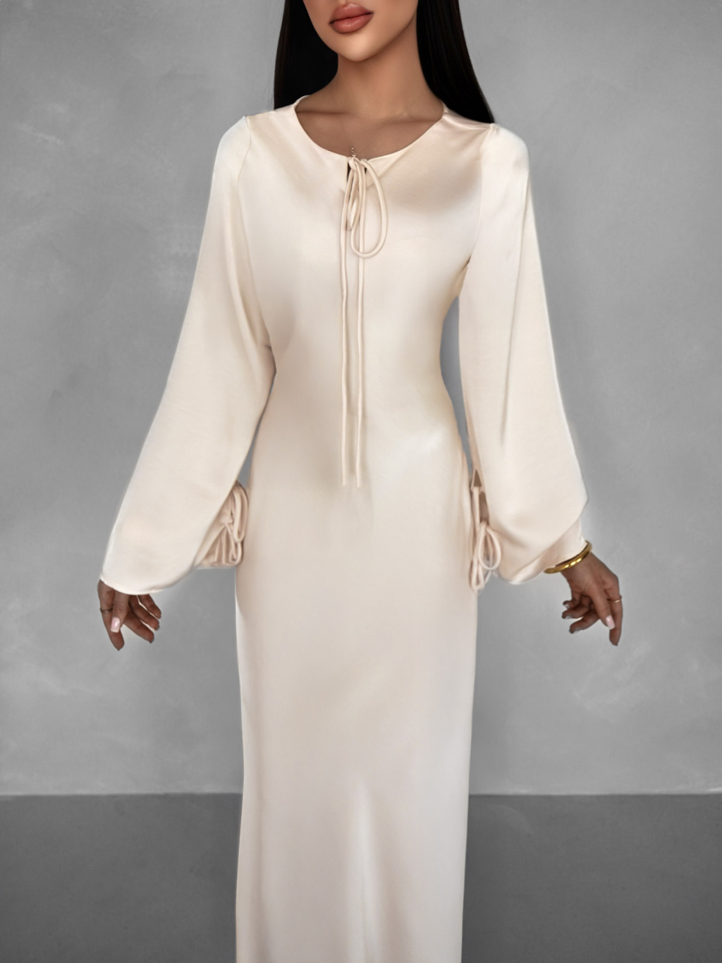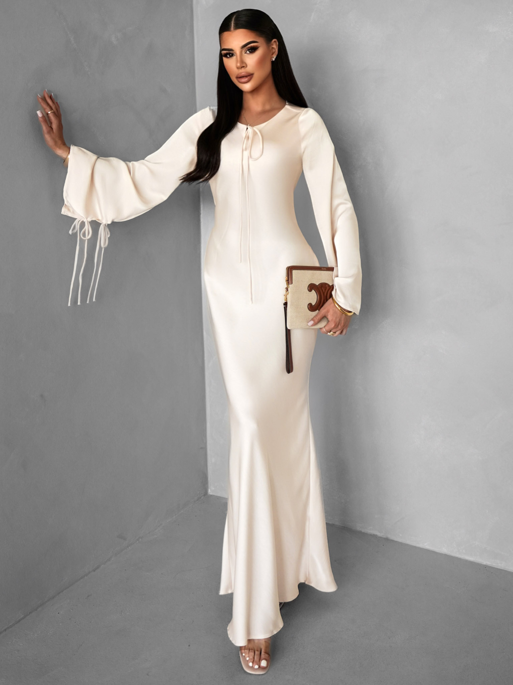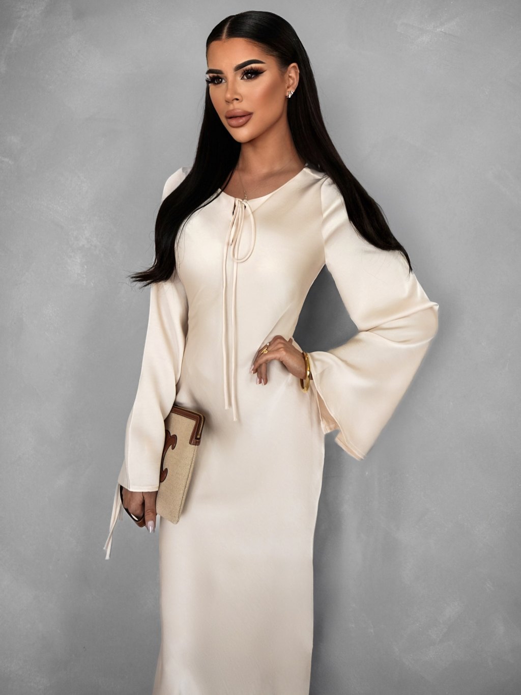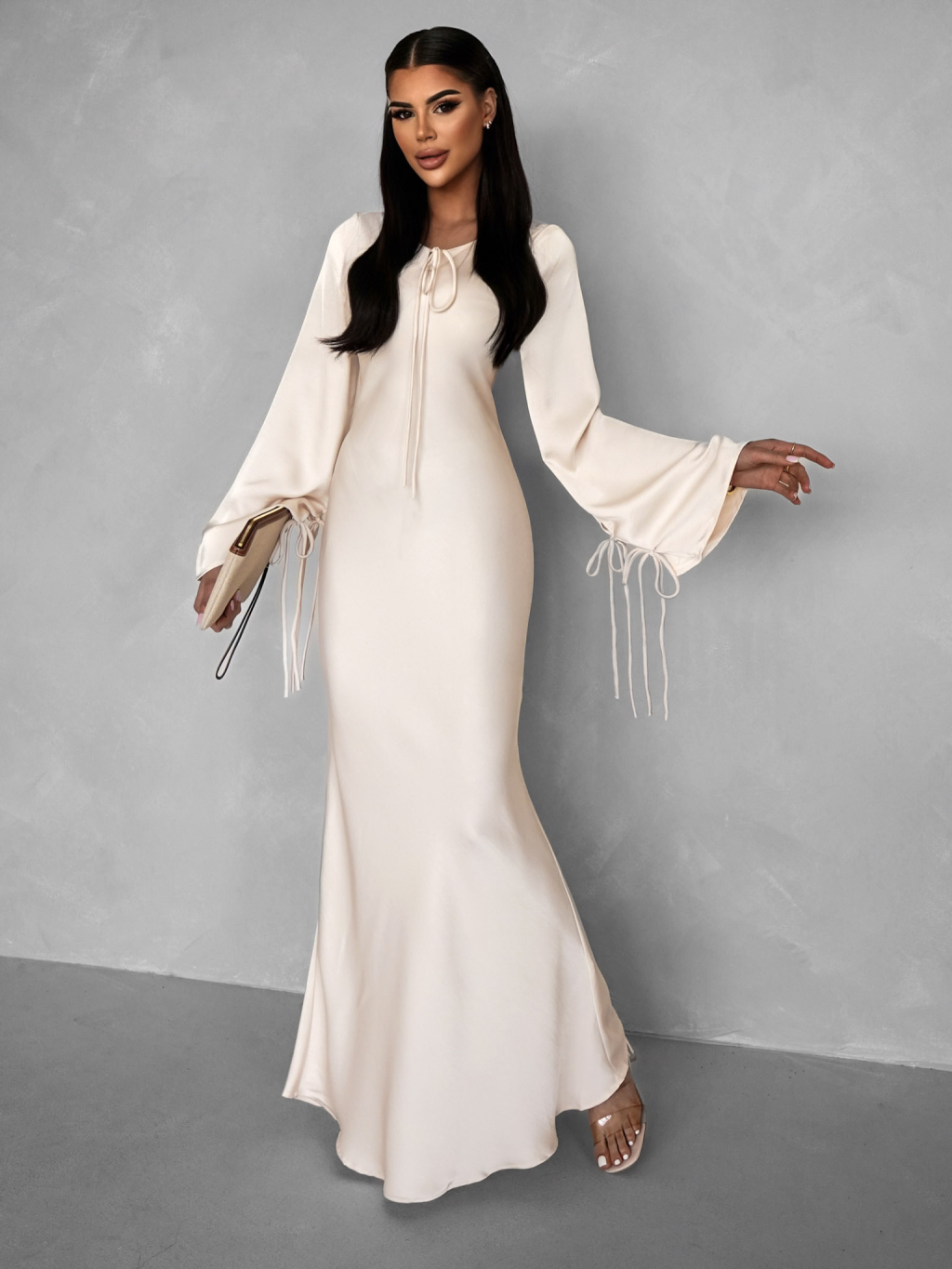 Krémové dlouhé saténové šaty TAGYWA s vázáním