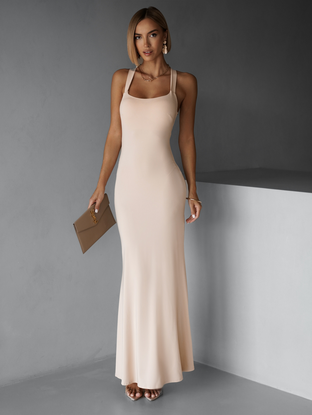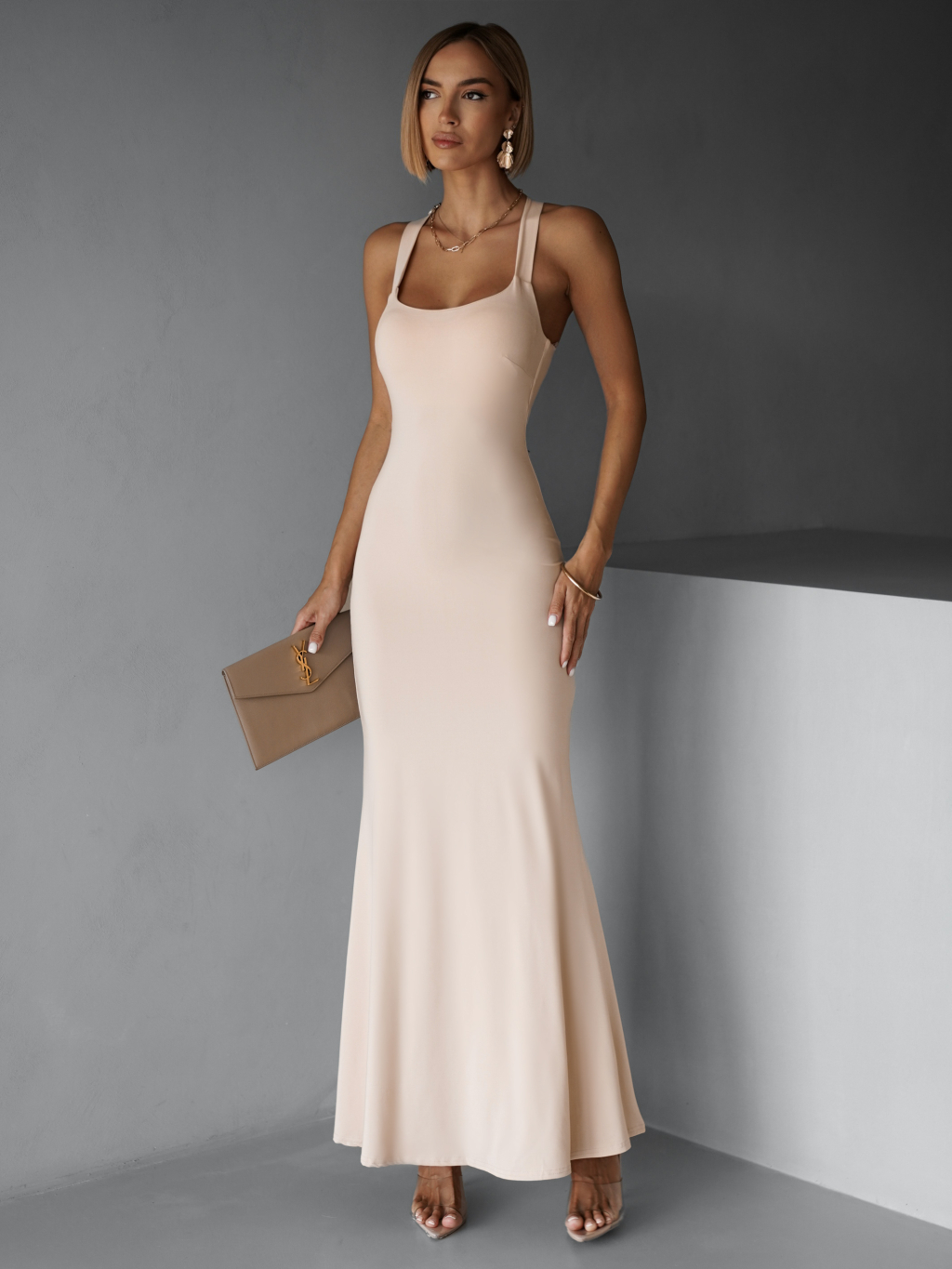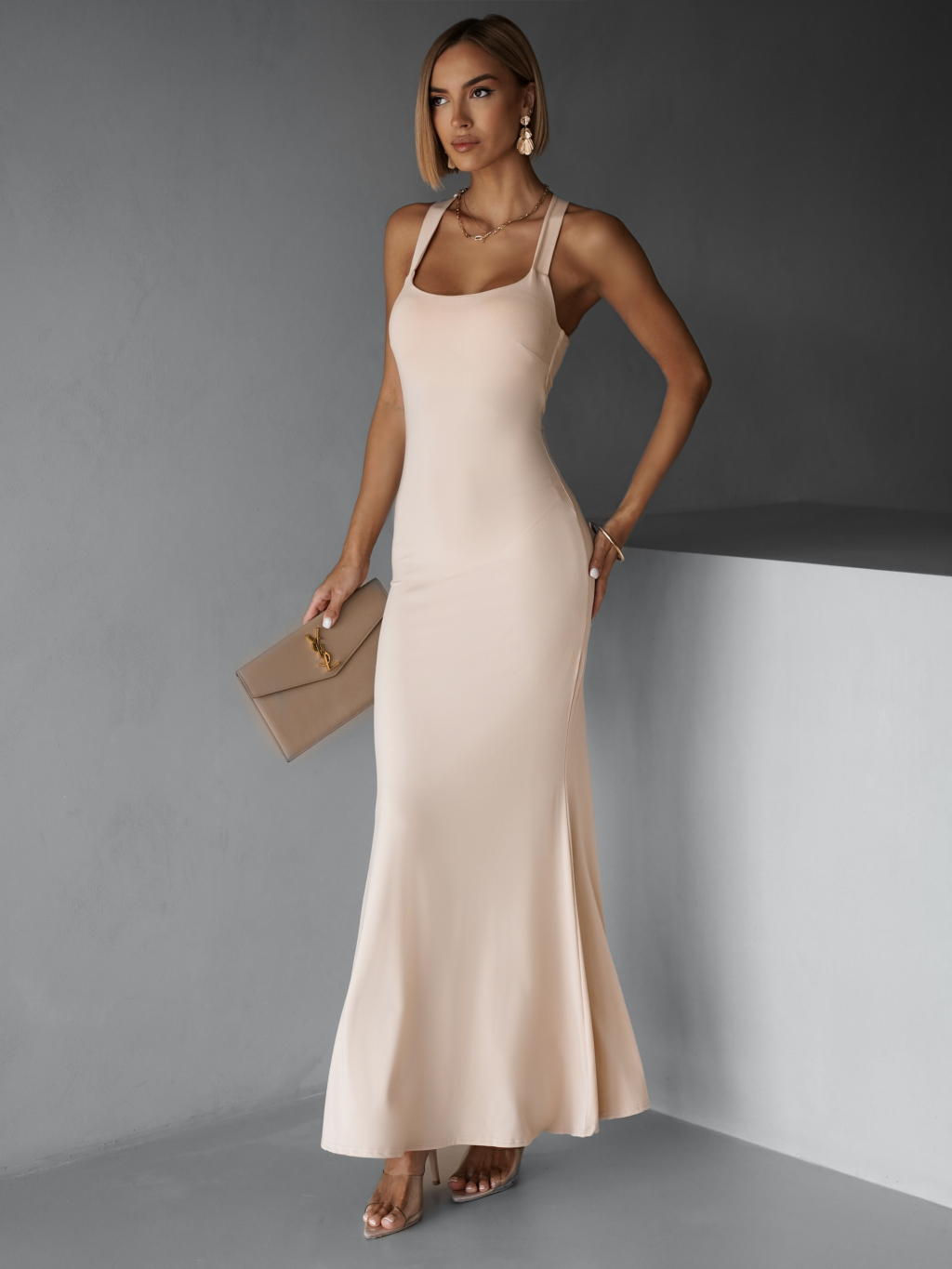 Krémové elegantní dlouhé šaty NELINA
