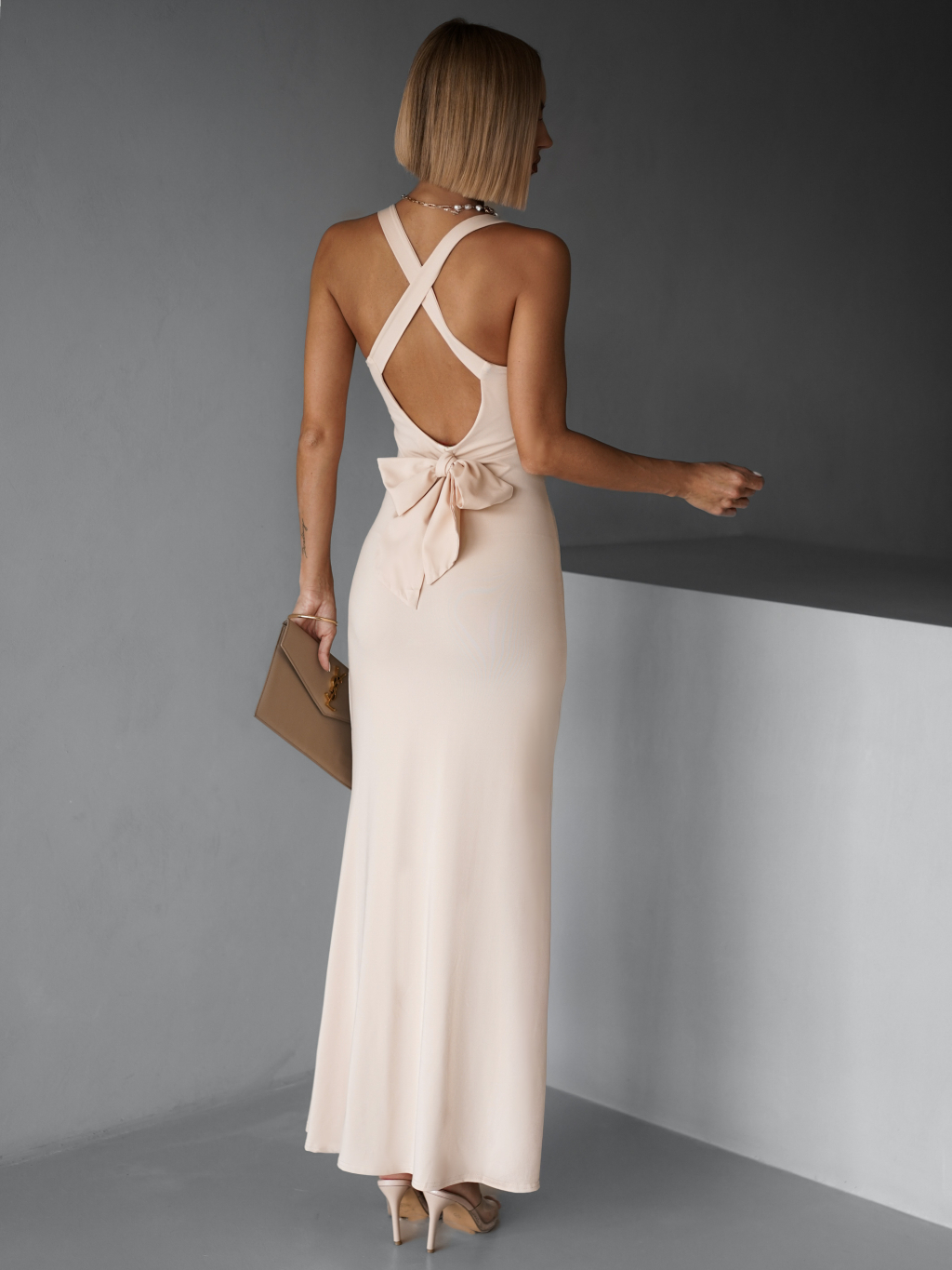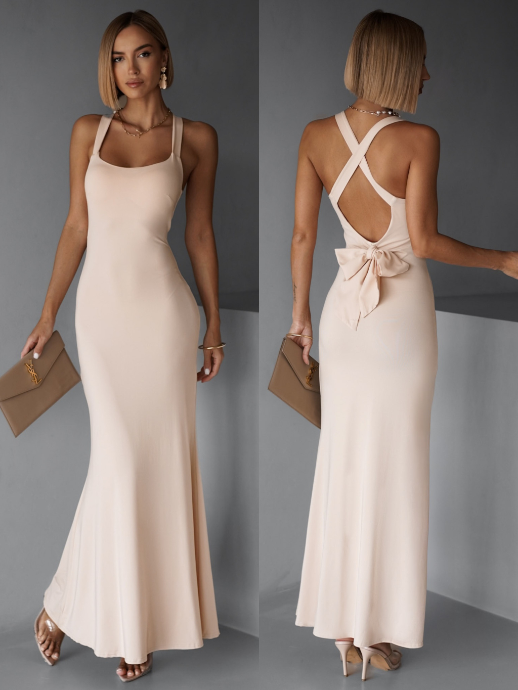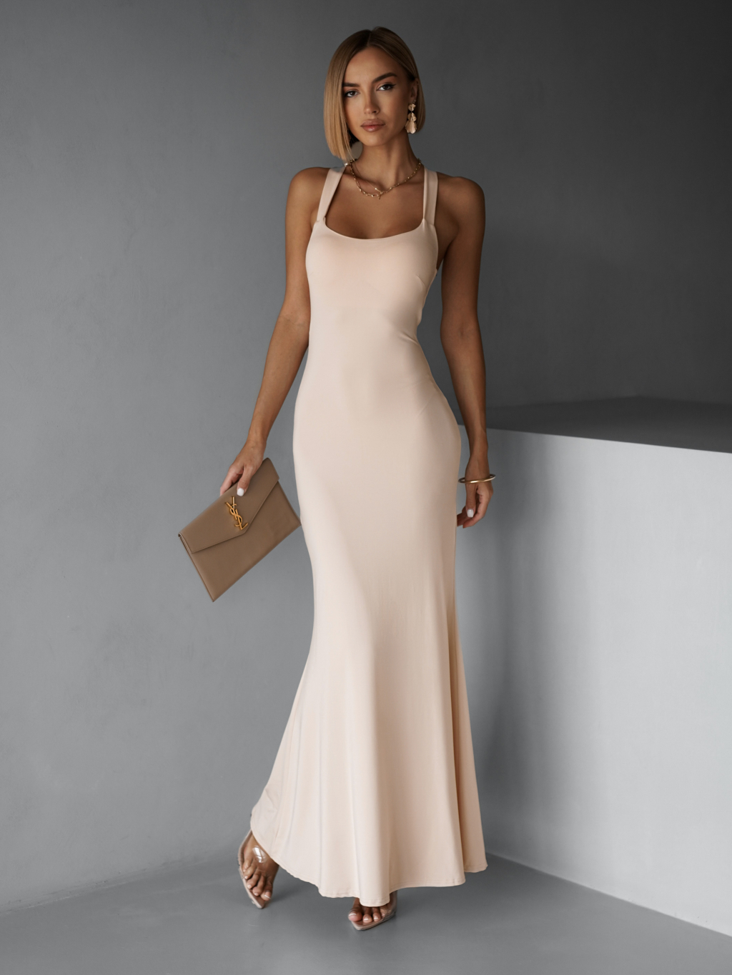 Krémové elegantní dlouhé šaty NELINA