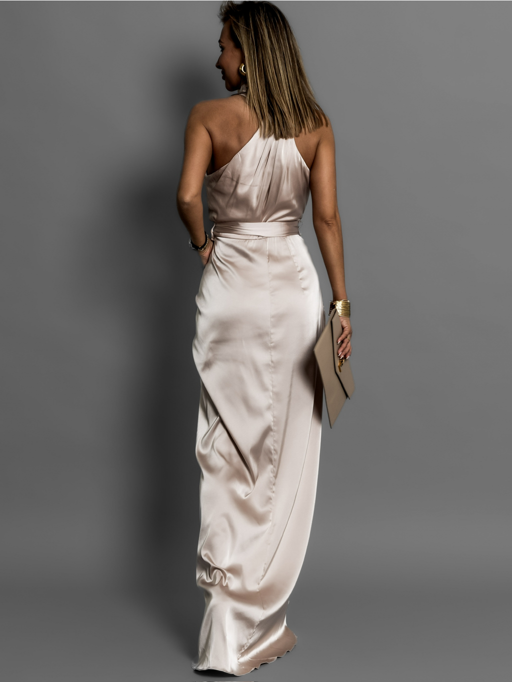 Krémové elegantní dlouhé šaty OLYMPE na zavazování