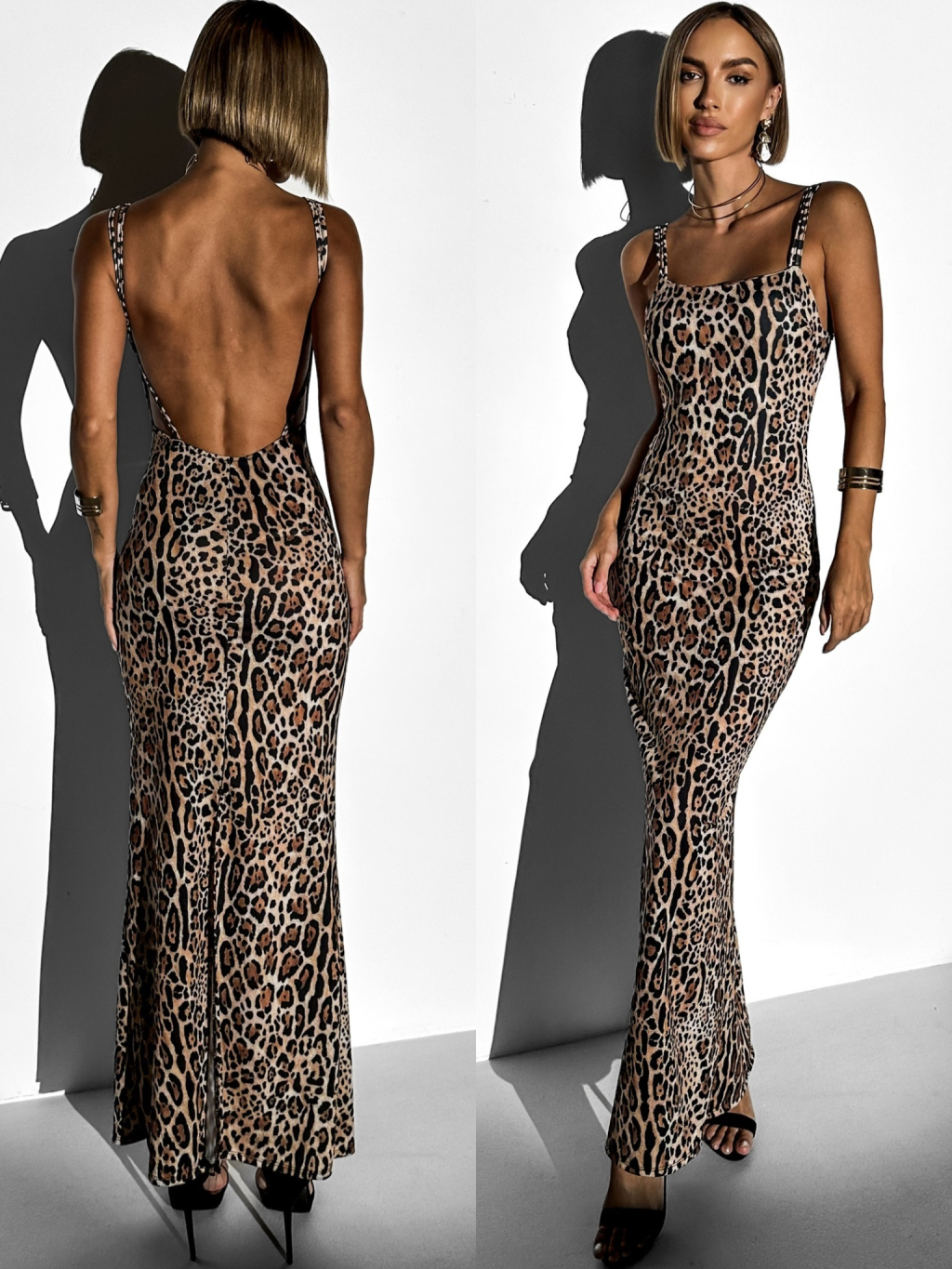 Leopardí dlouhé šaty FIDELIE na ramínka