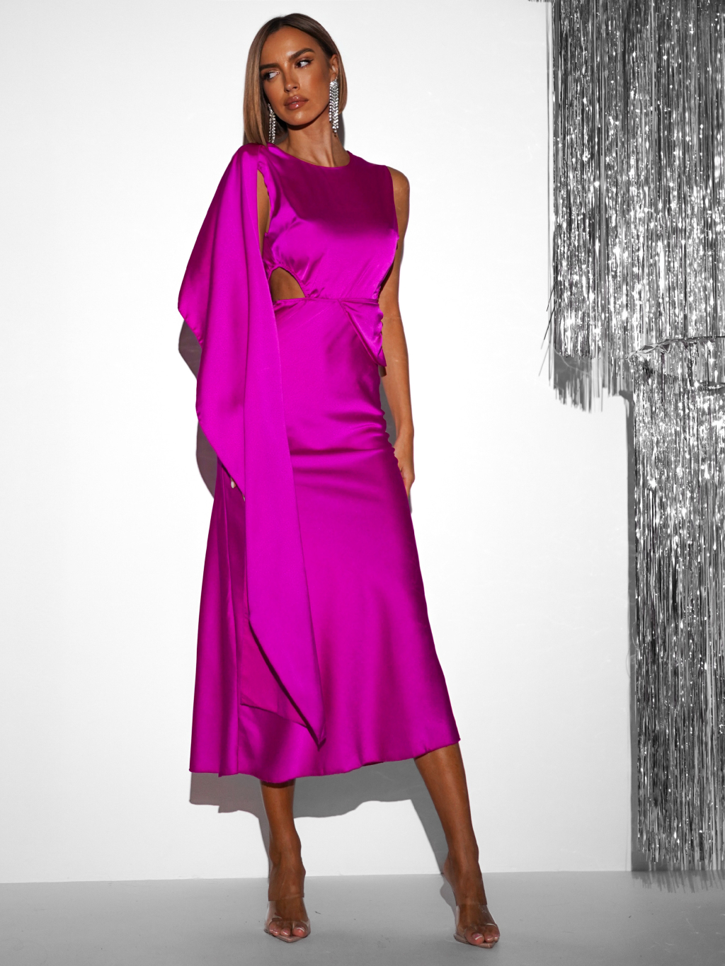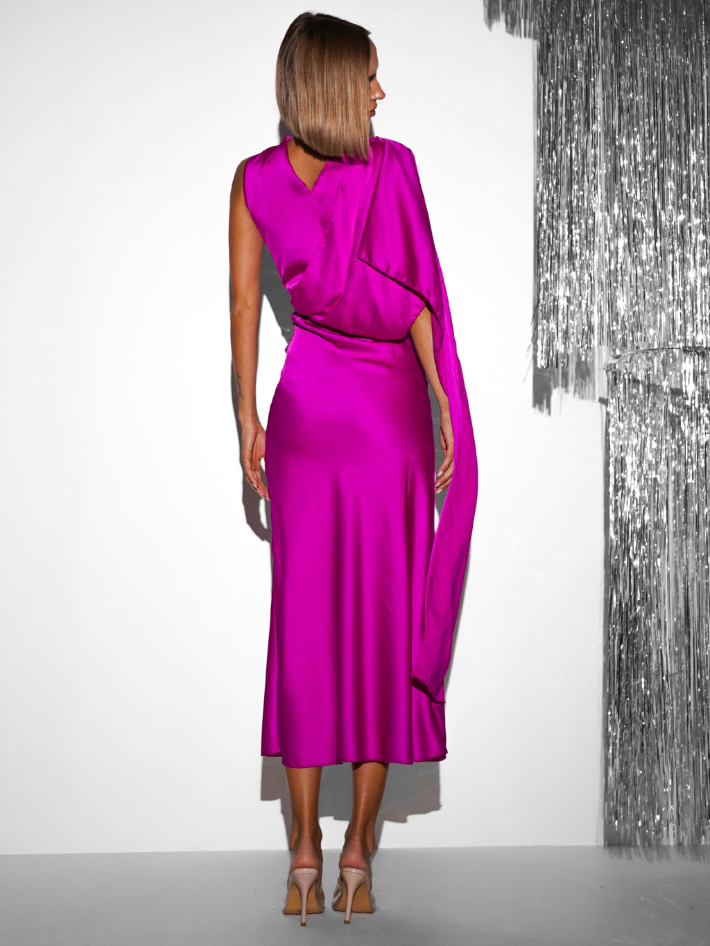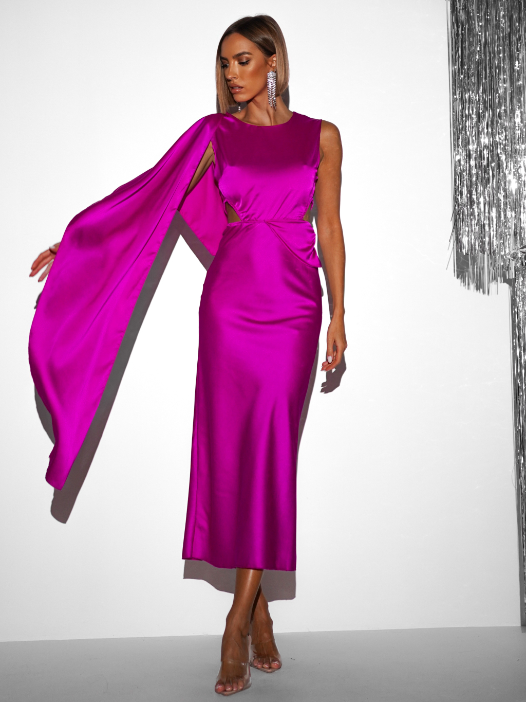 Magenta saténové dlouhé šaty JUTTA s průstřihy