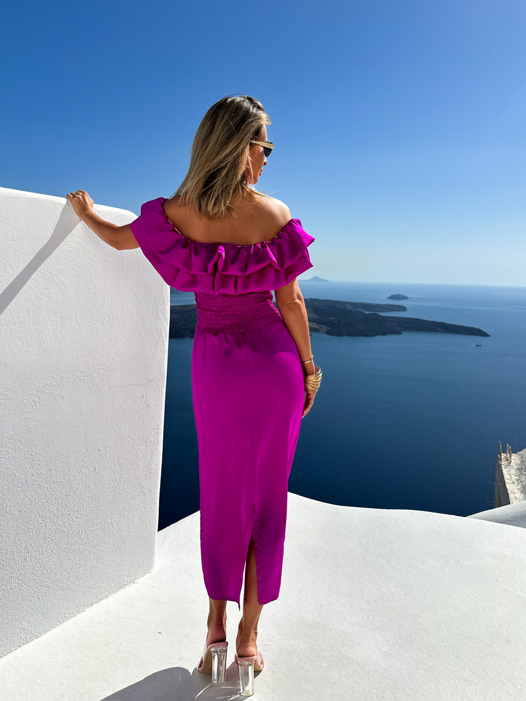 Magenta saténové elegantní midi šaty UNIVERS