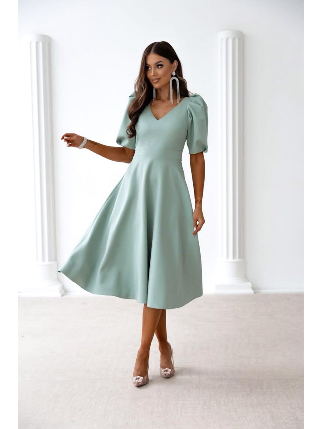 Mintové elegantní midi šaty ORLAYA