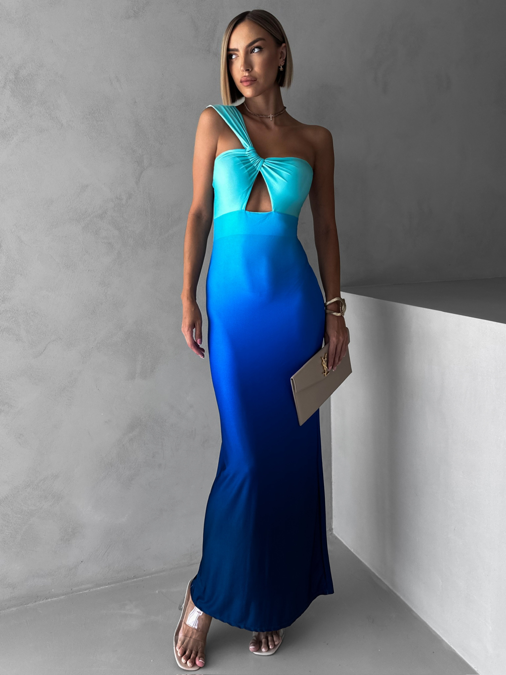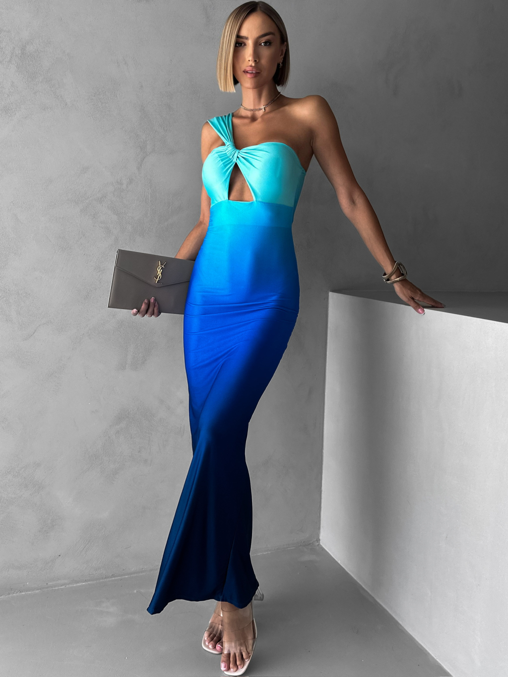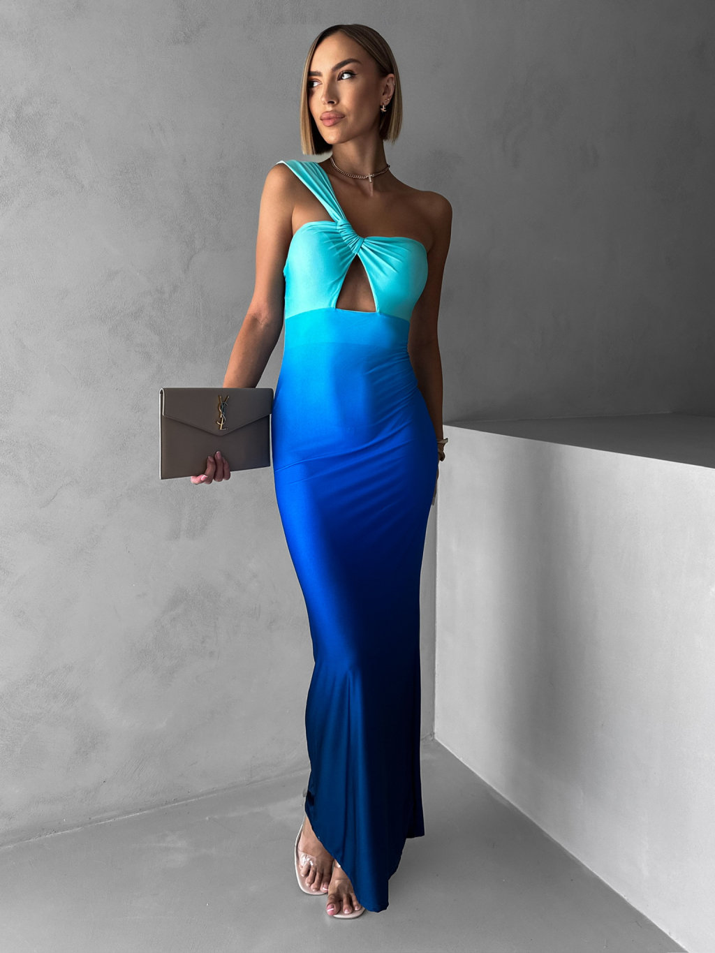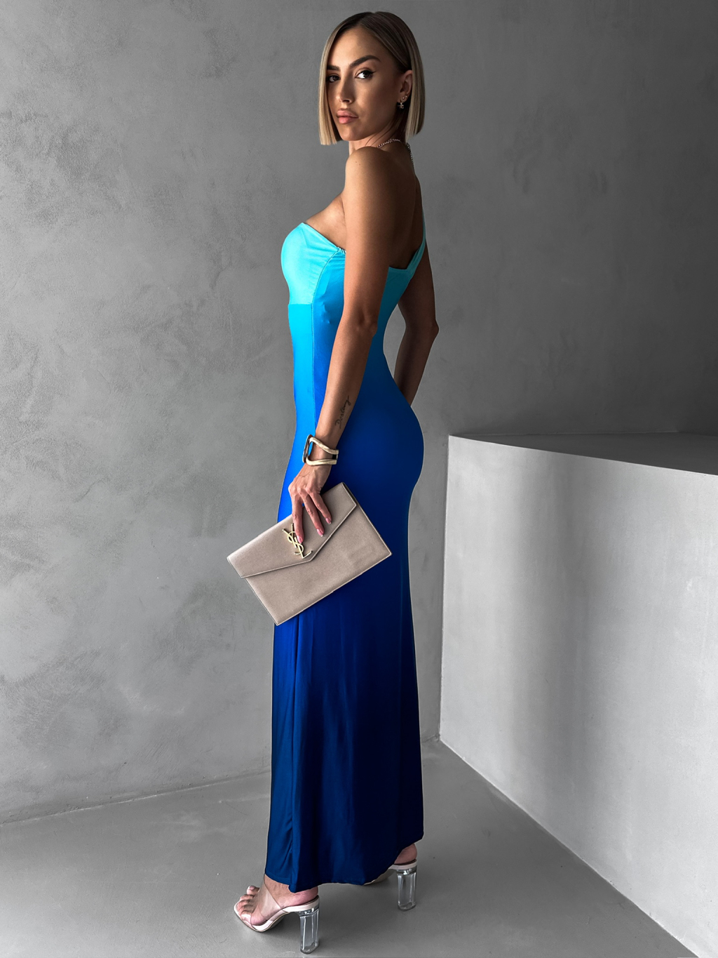 Modré dlouhé zeštíhlující ombre šaty RITTA