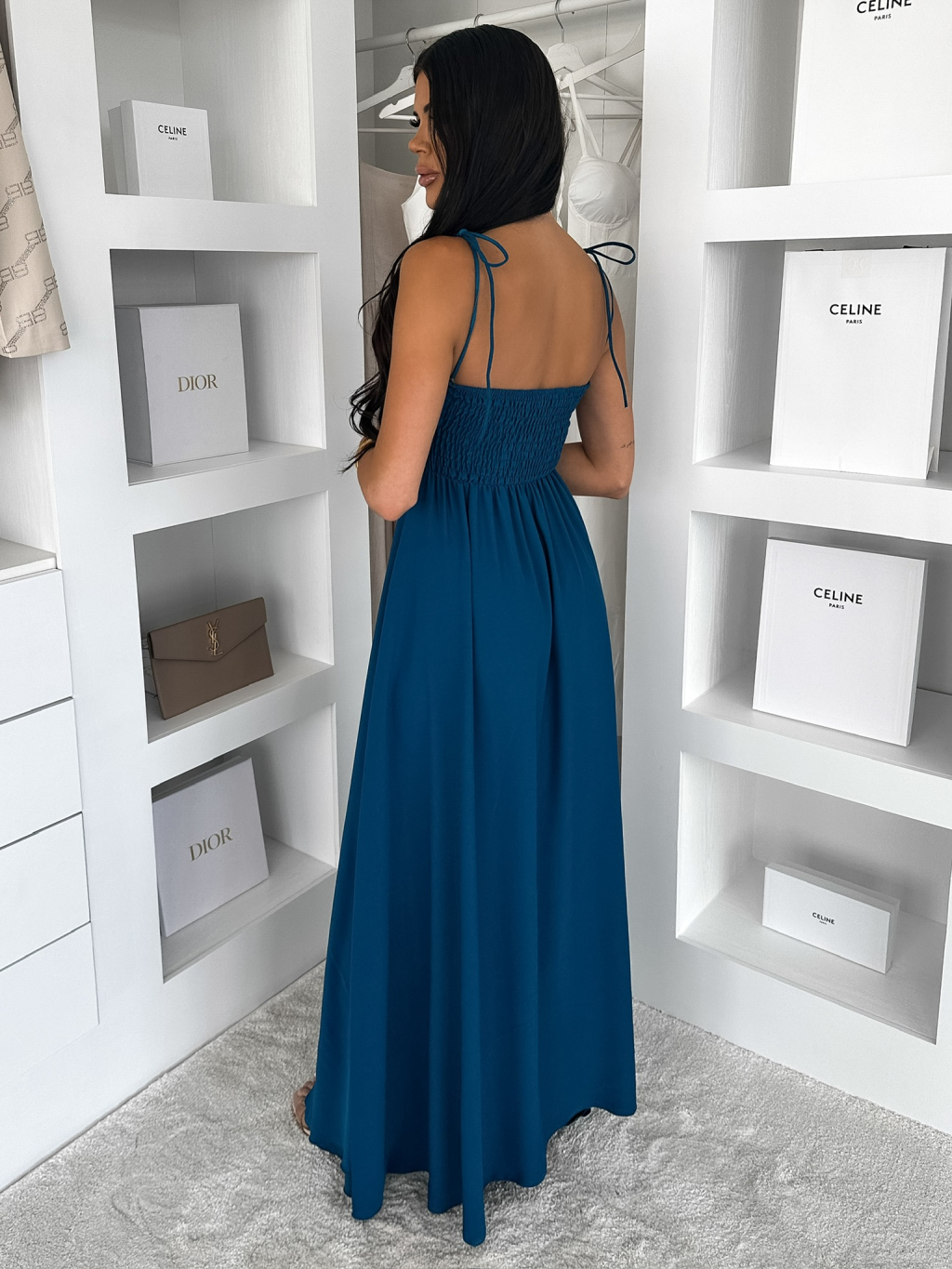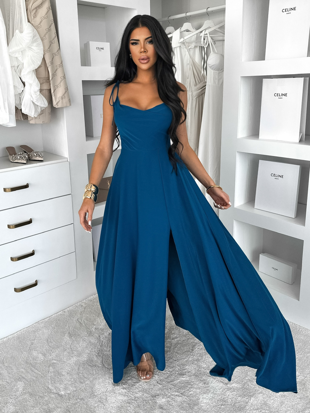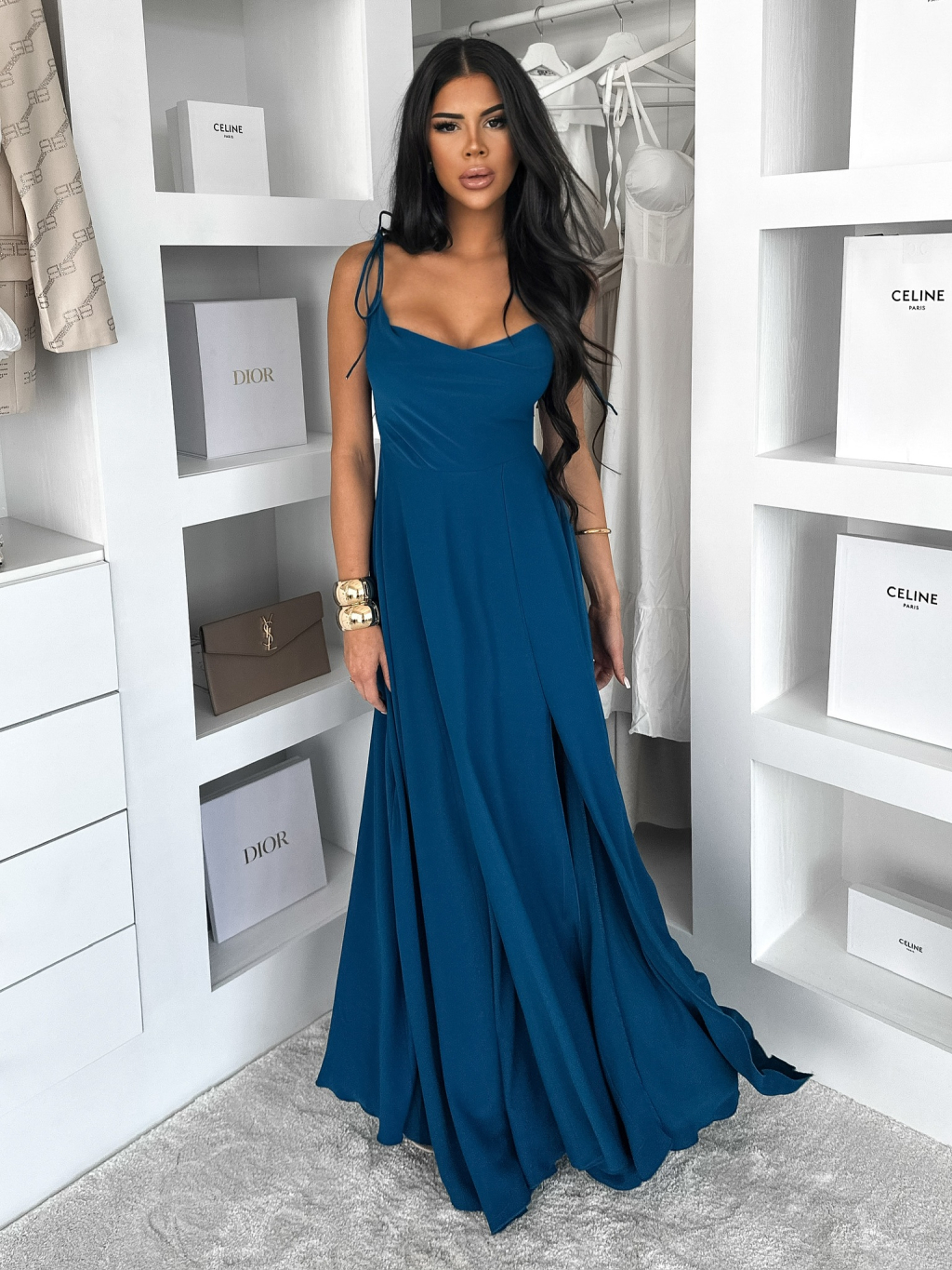 Petrolejové dlouhé společenské šaty LERDISEL