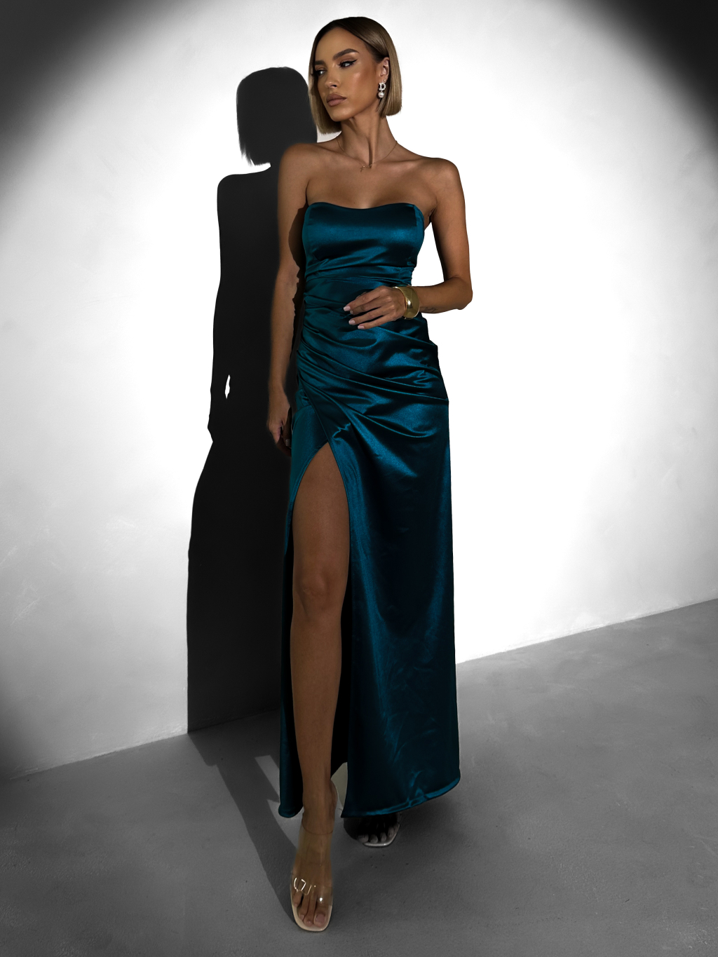 Petrolejové společenské korzetové dlouhé šaty KARLOT