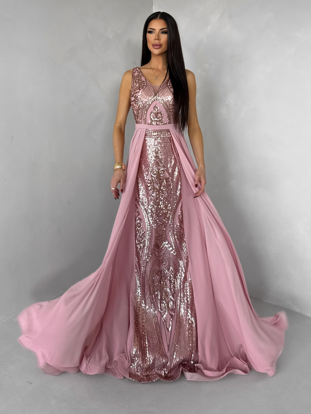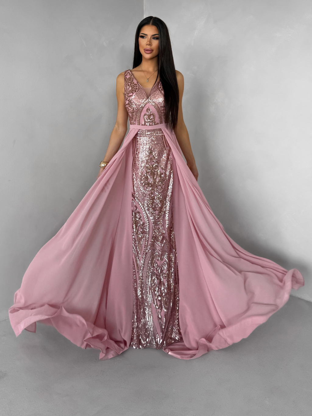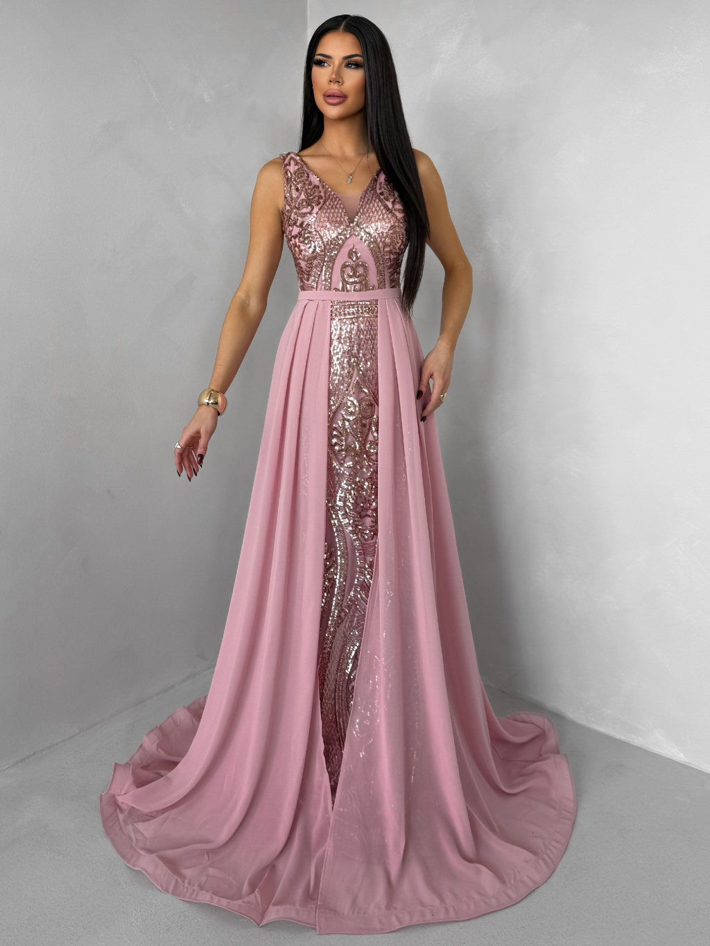 Růžové dlouhé plesové šaty LUENNA