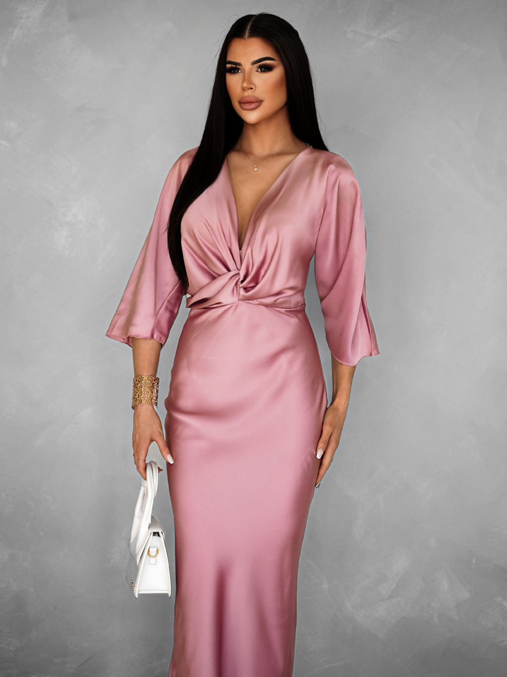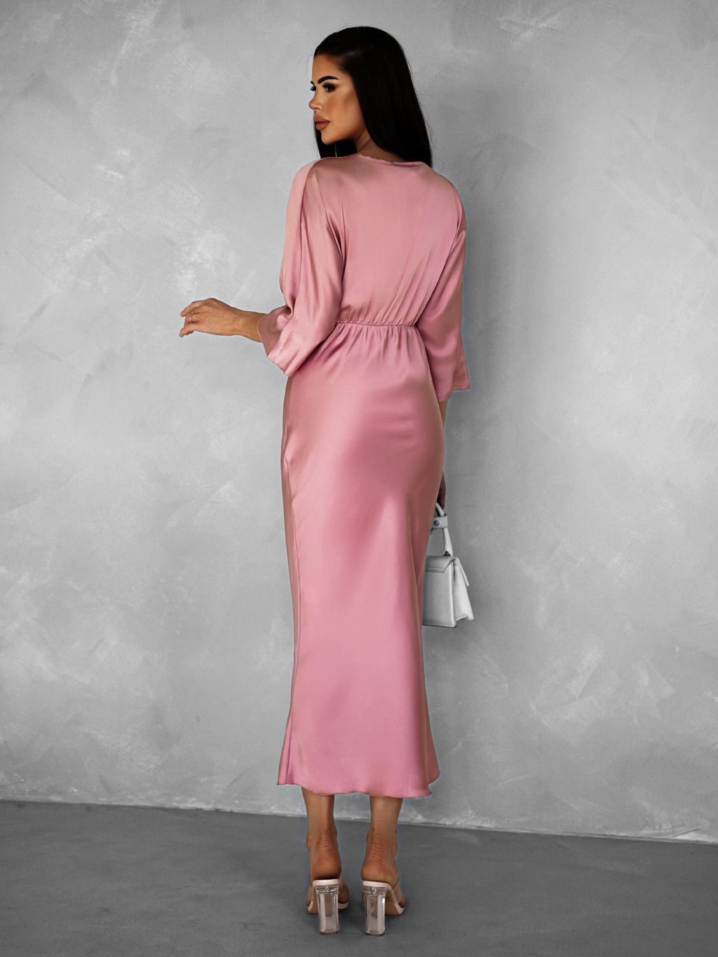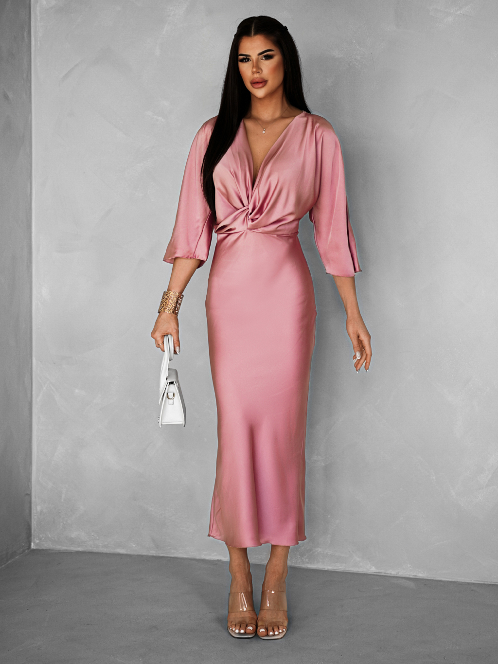 Růžové saténové midi šaty GAVYE s 3/4 rukávem