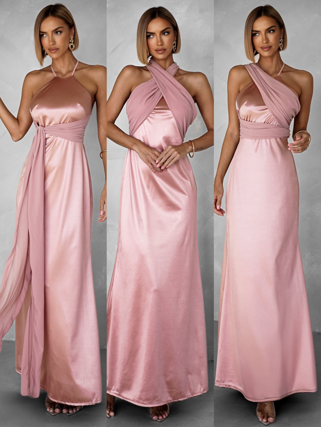 Růžové variabilní dlouhé elegantní šaty BOLZANO
