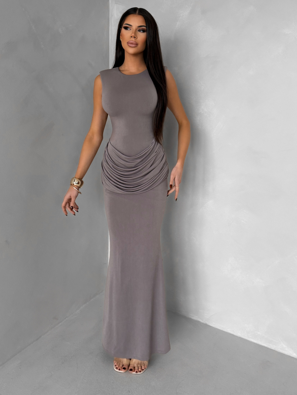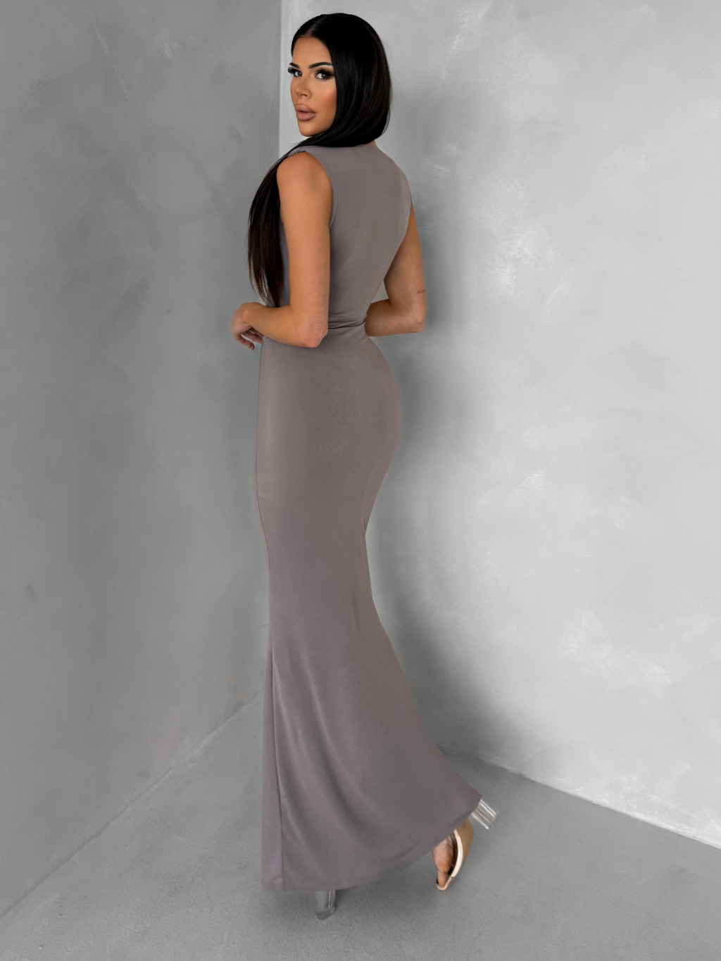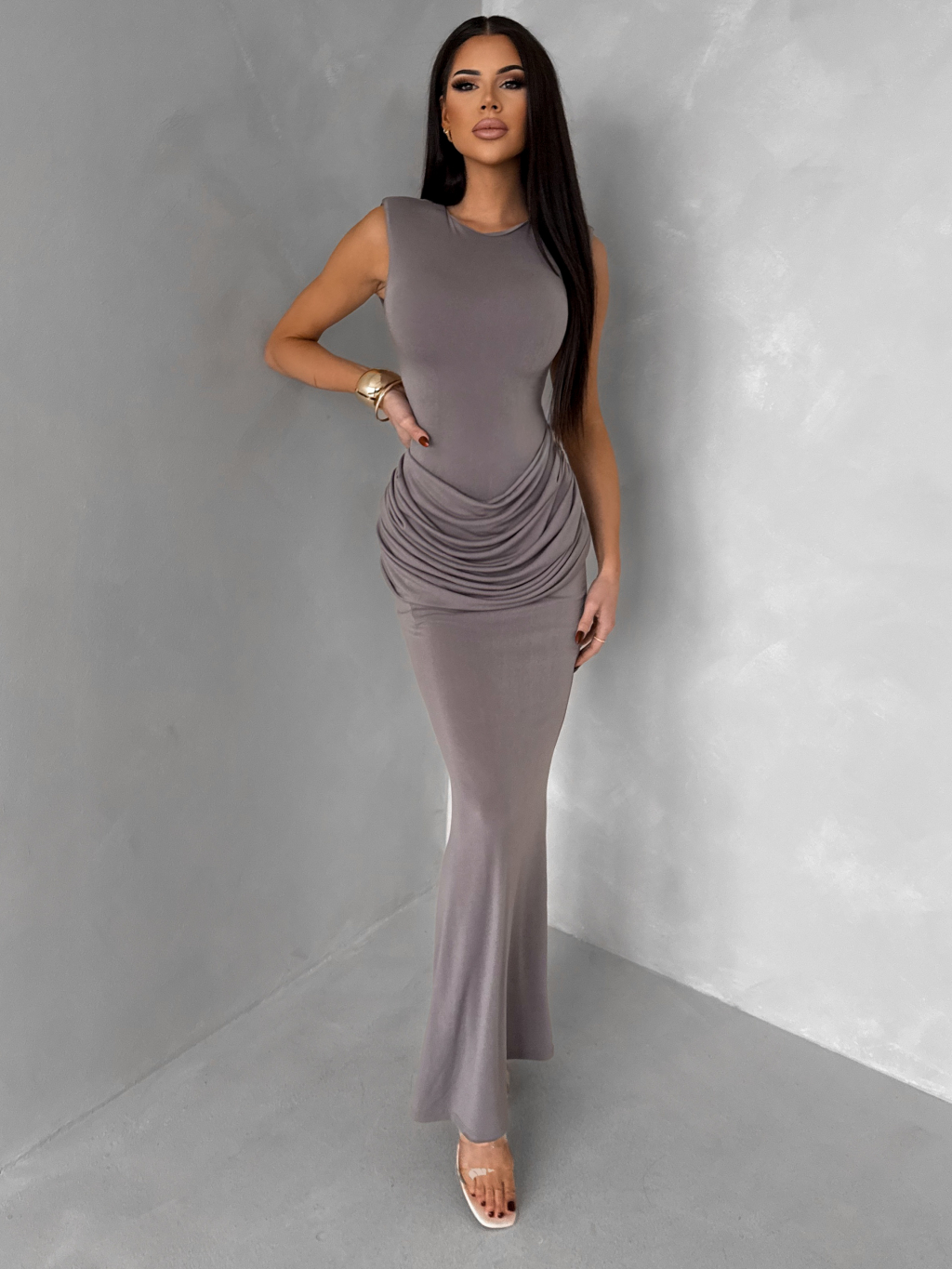 Šedé společenské tvarující dlouhé šaty ESSENTIA