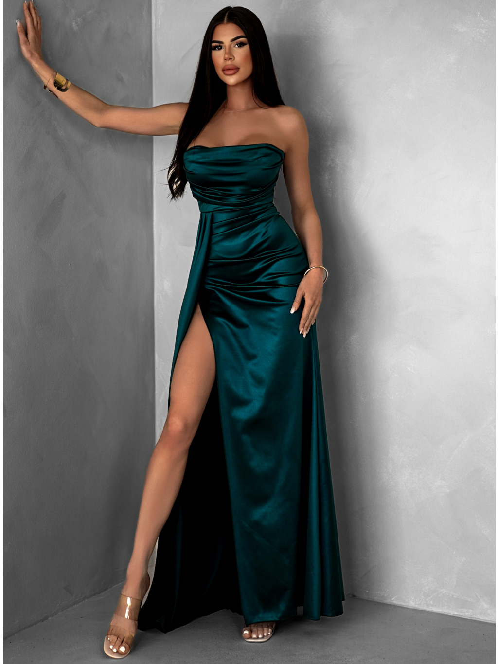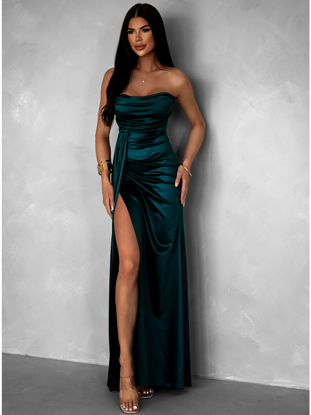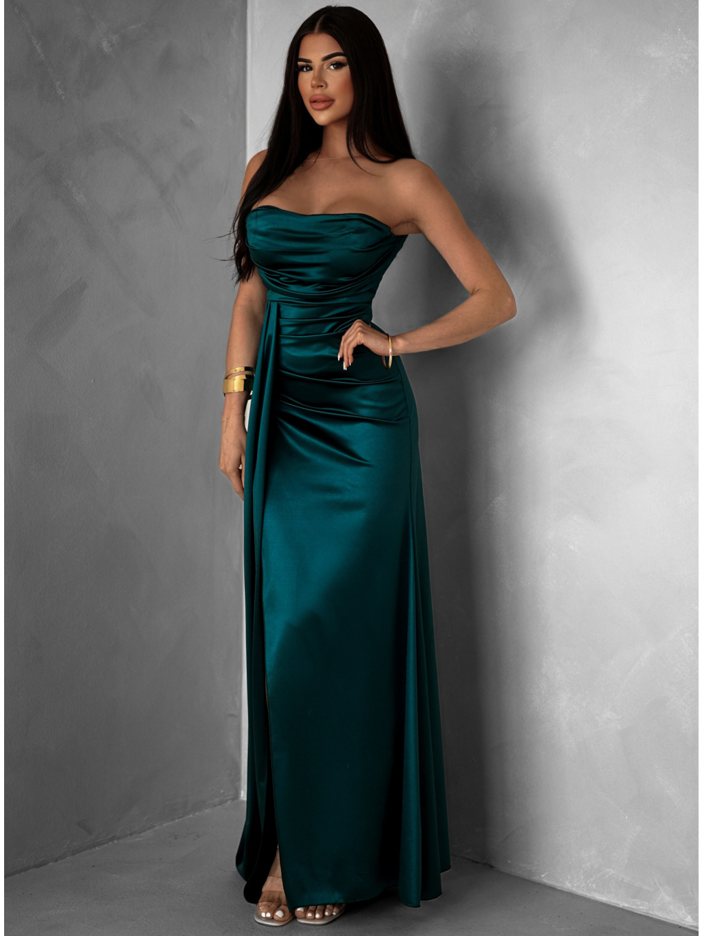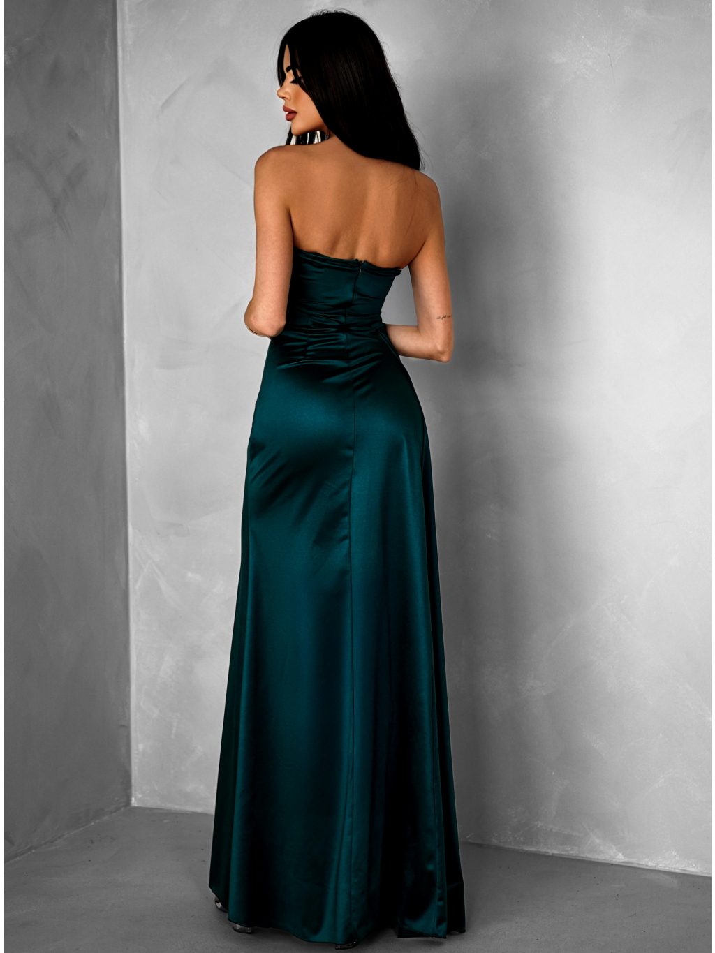 Smaragdové dlouhé korzetové společenské šaty ALITAN s rozparkem