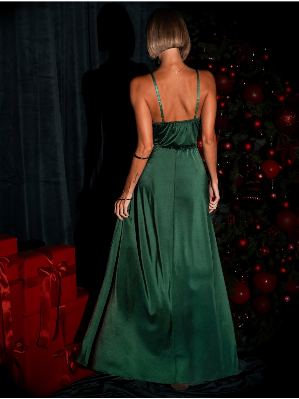 Smaragdové dlouhé saténové šaty ARANKA s výstřihem
