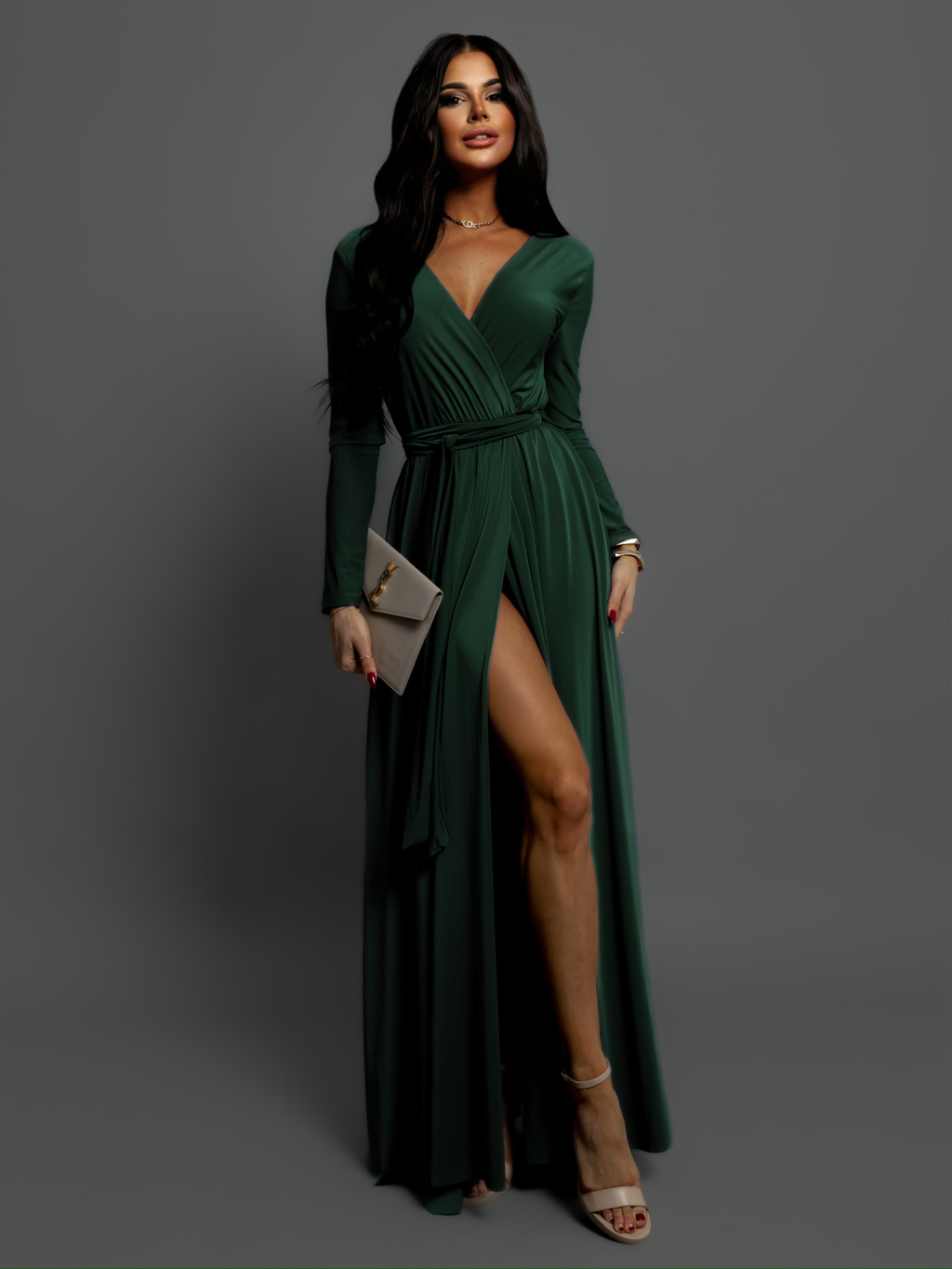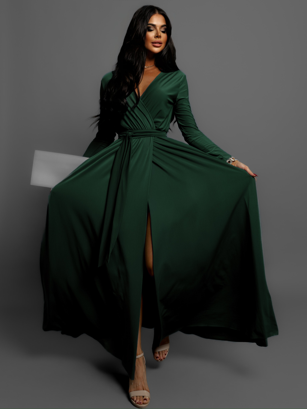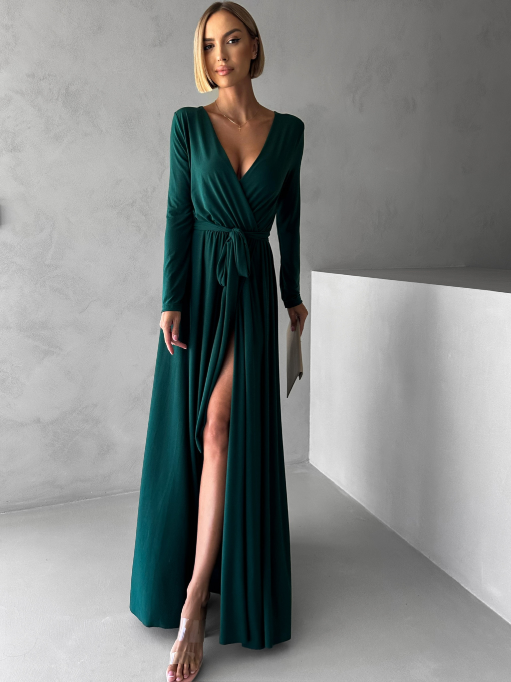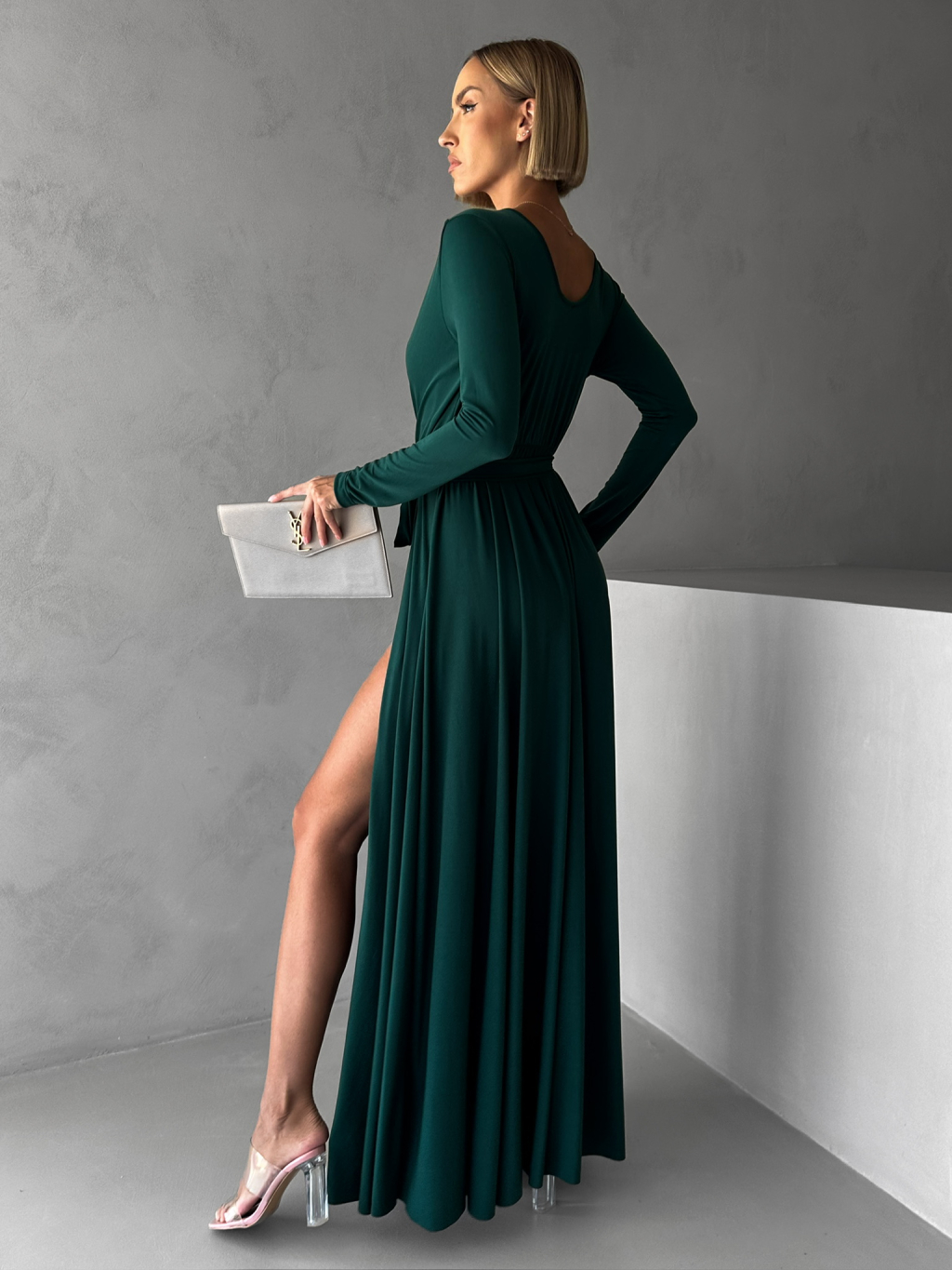 Smaragdové dlouhé večerní šaty JOELLIAN s dlouhým rukávem