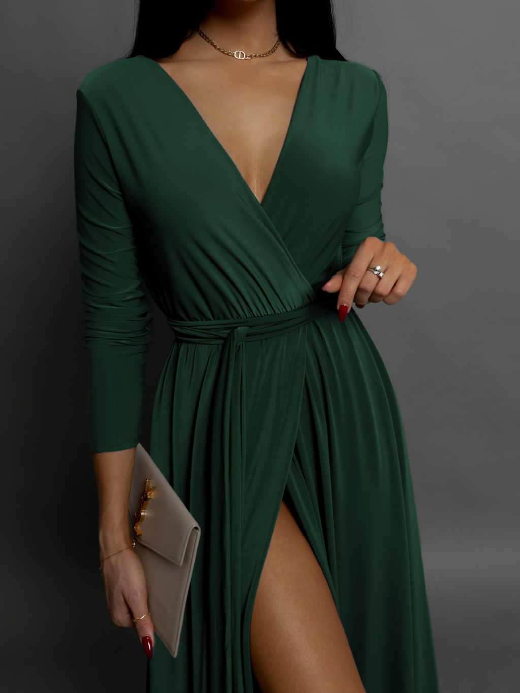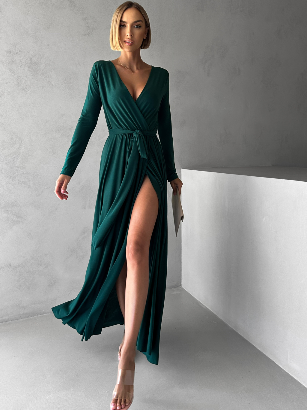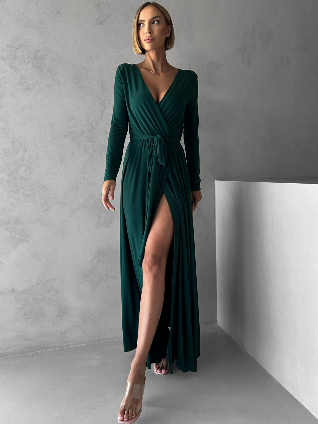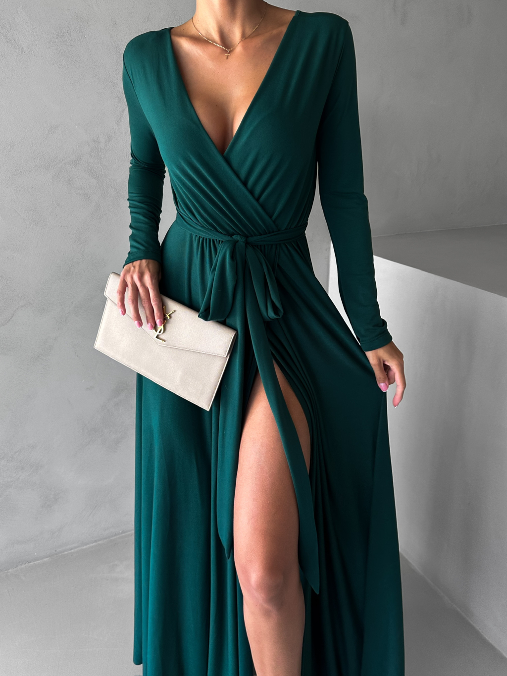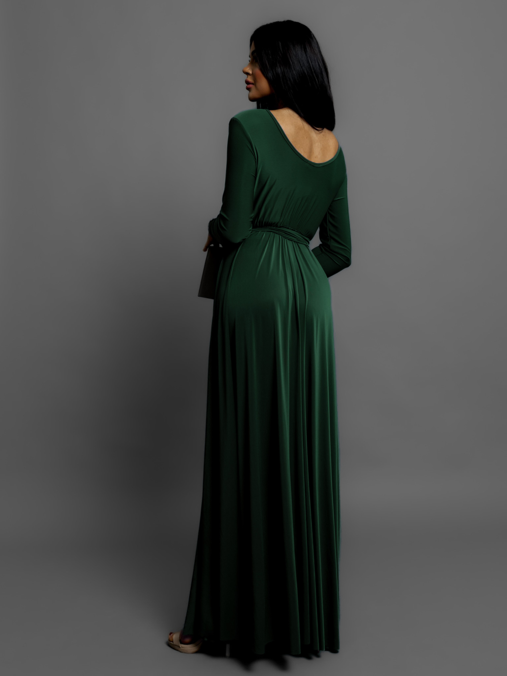 Smaragdové dlouhé večerní šaty JOELLIAN s dlouhým rukávem