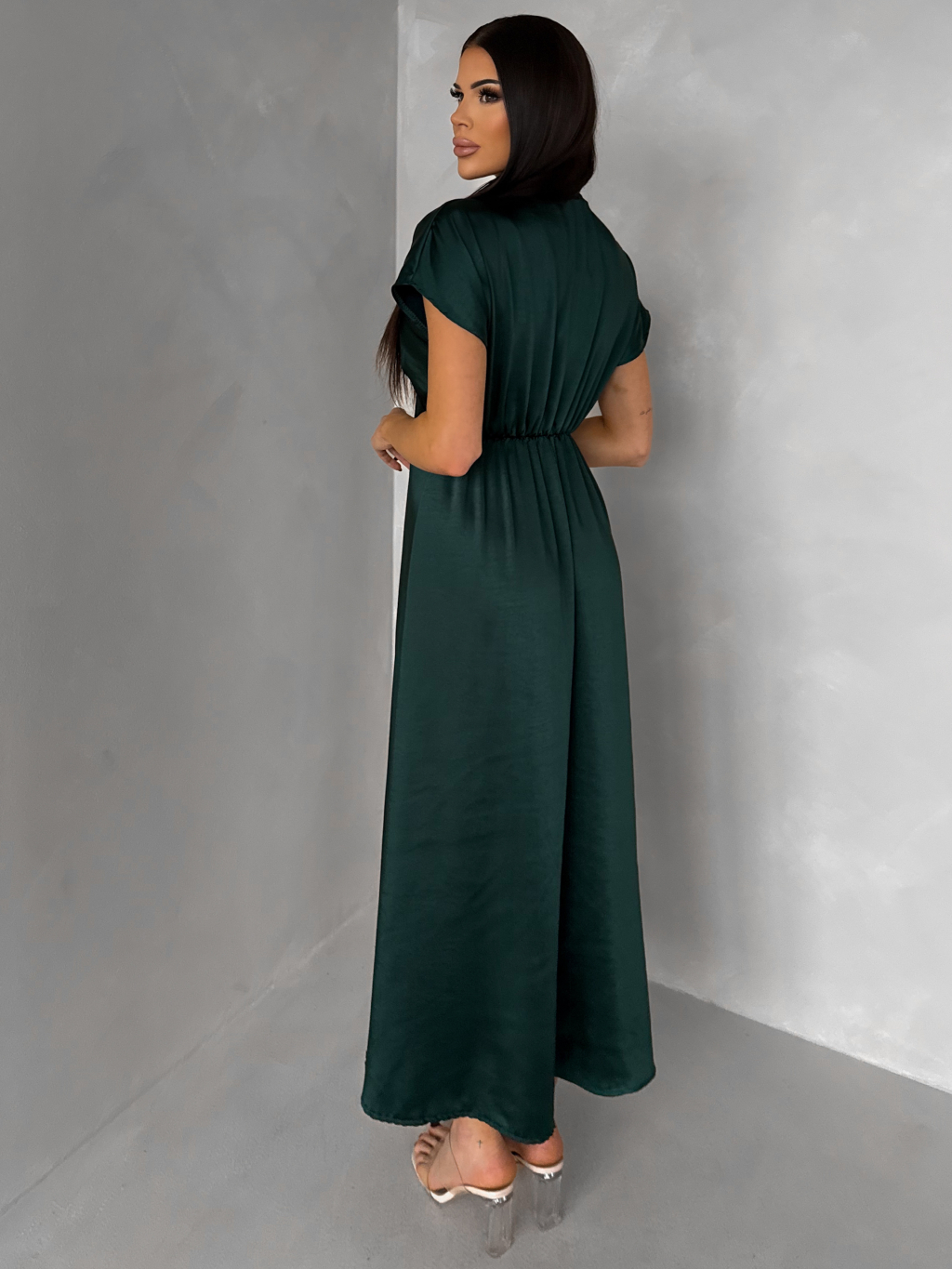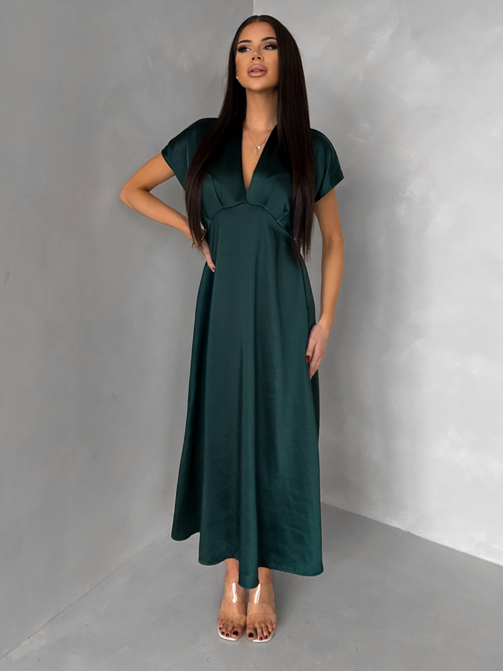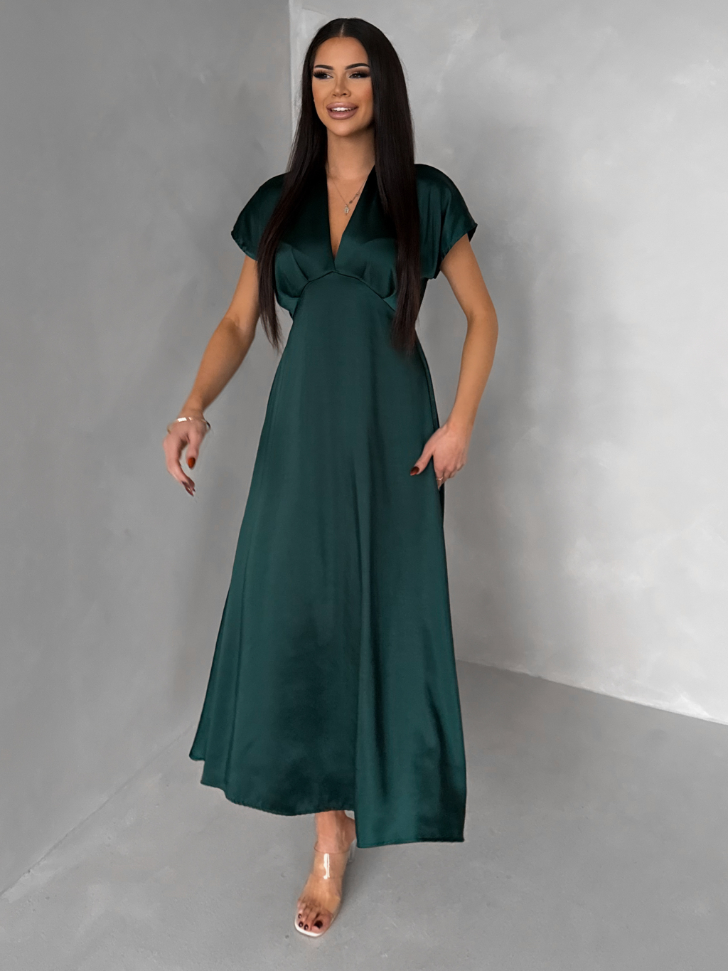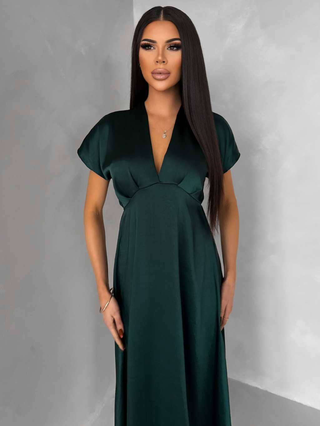 Smaragdové elegantní jednoduché midi šaty OMNIS