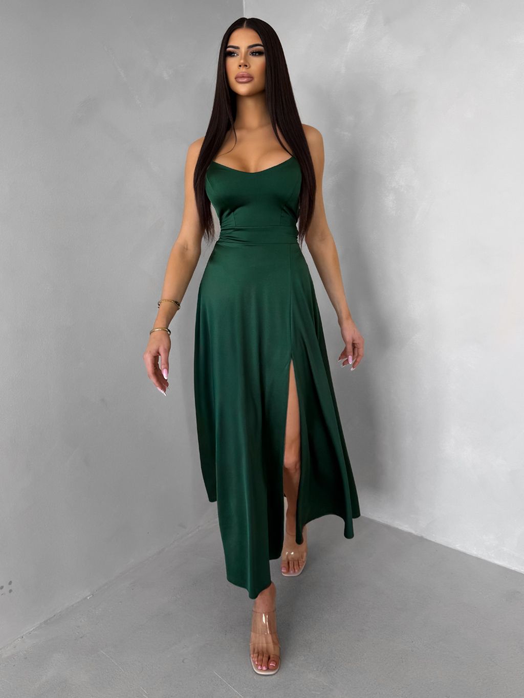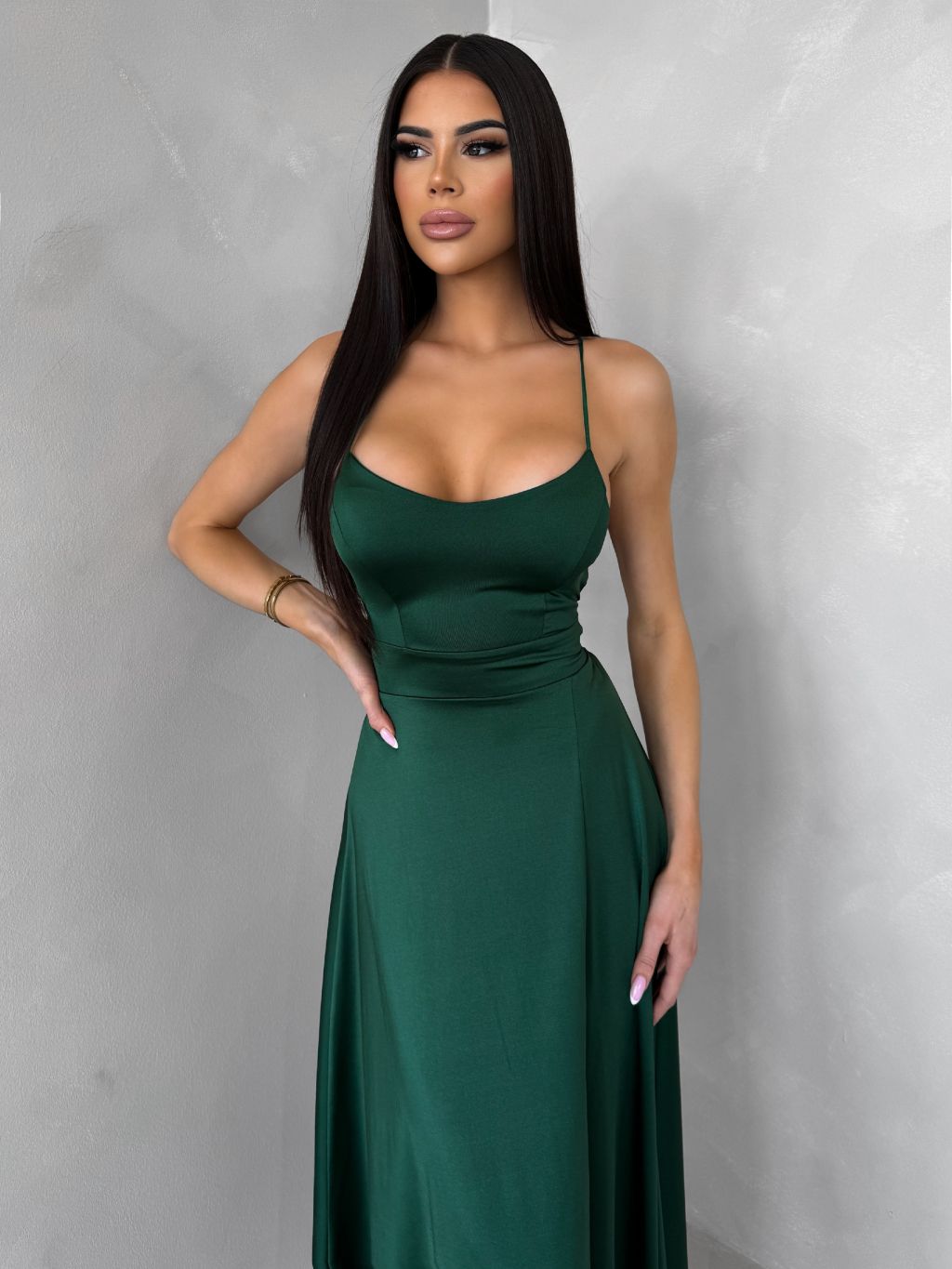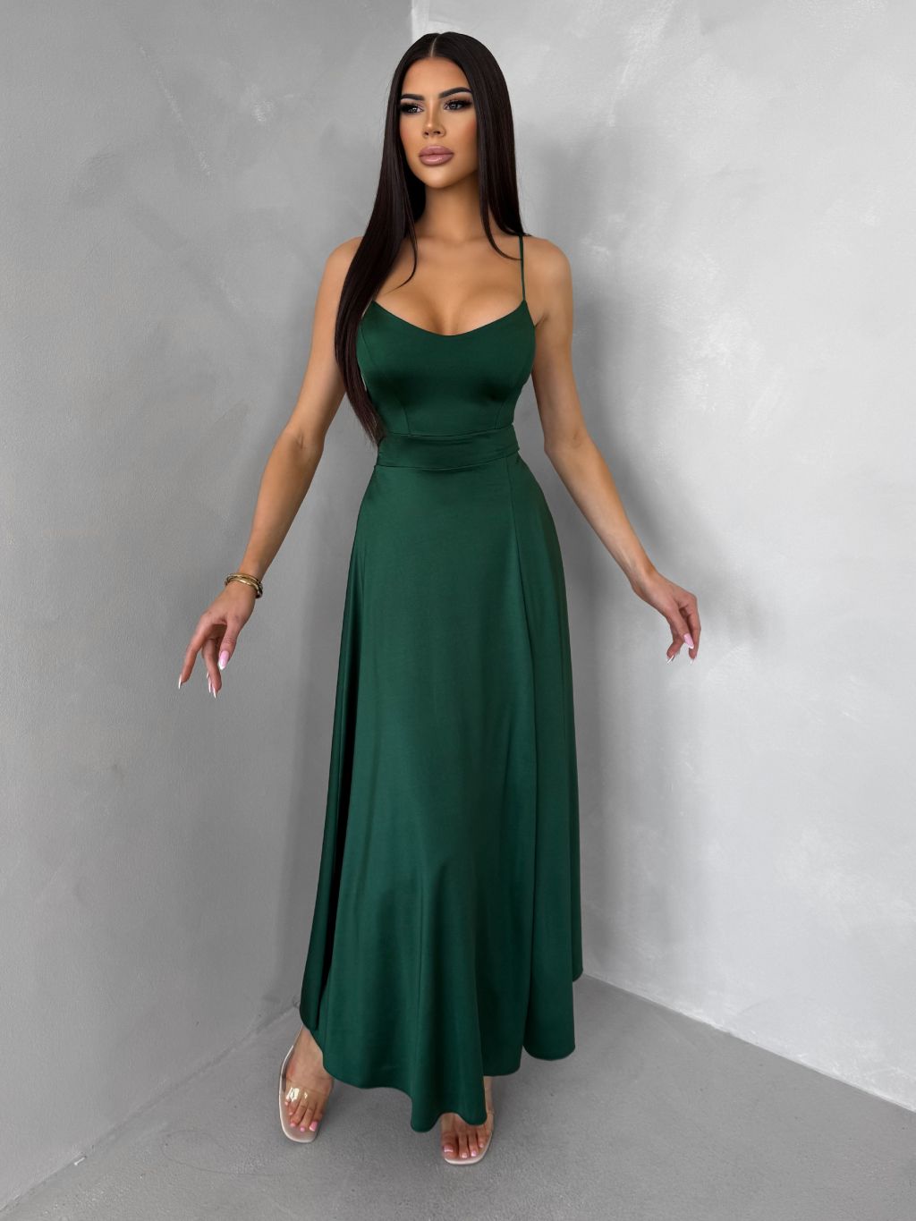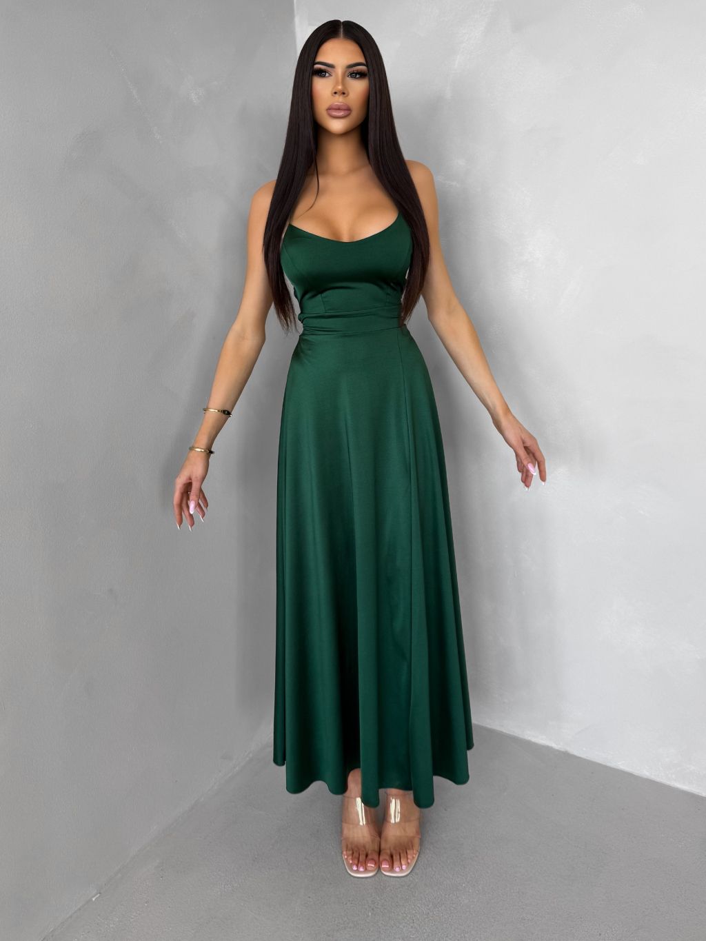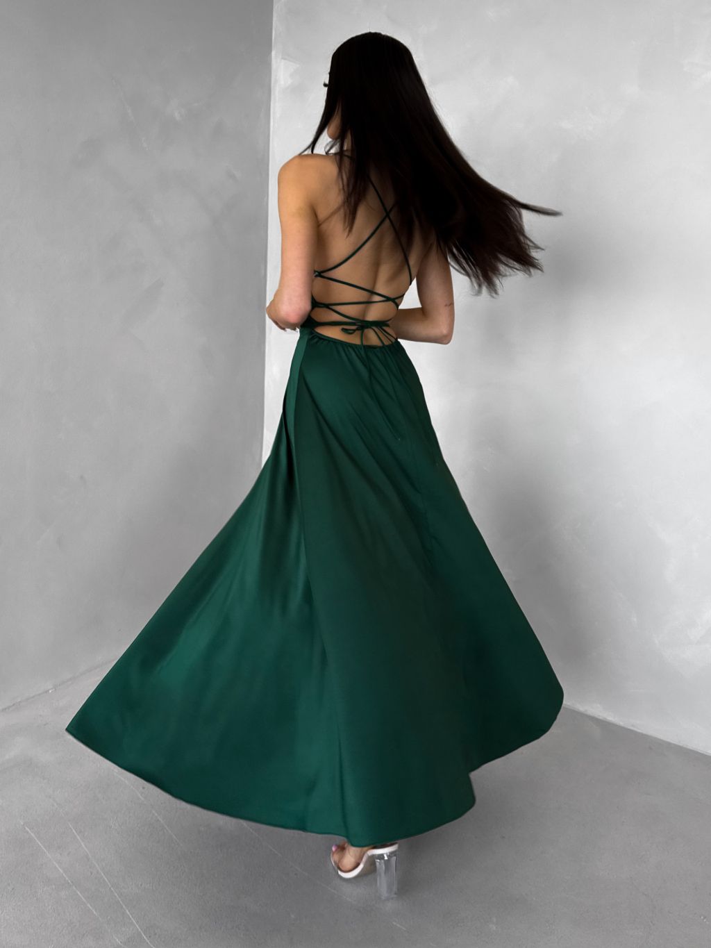 Smaragdové saténové elegantní midi šaty SIMUEL se šněrováním