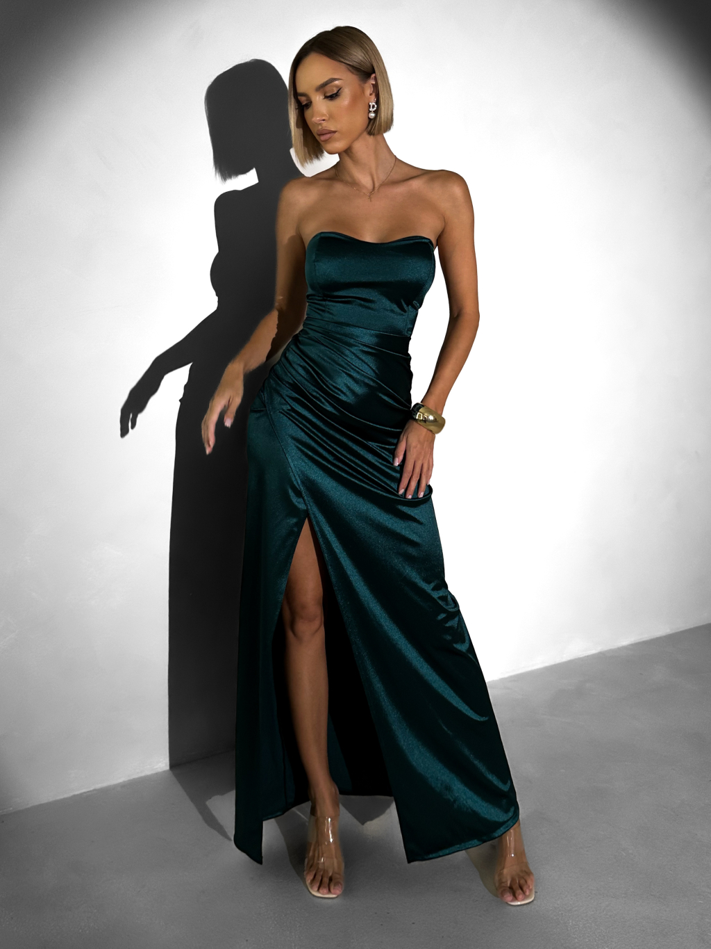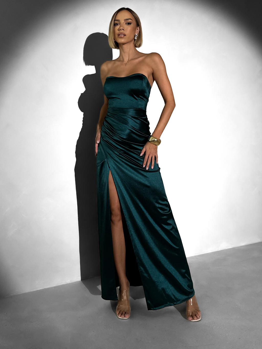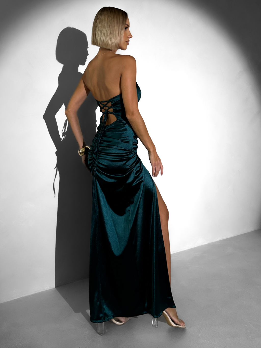 Smaragdové společenské dlouhé korzetové šaty KARLOT