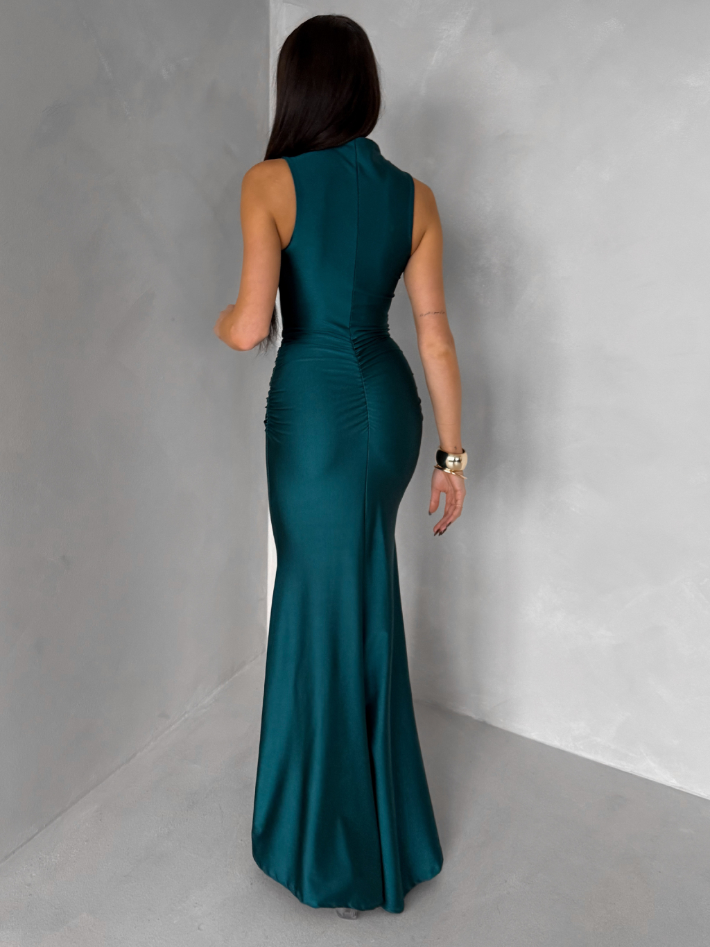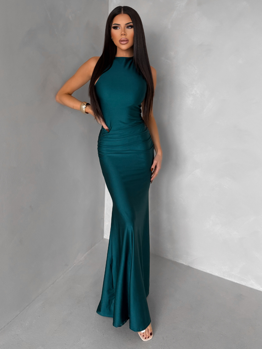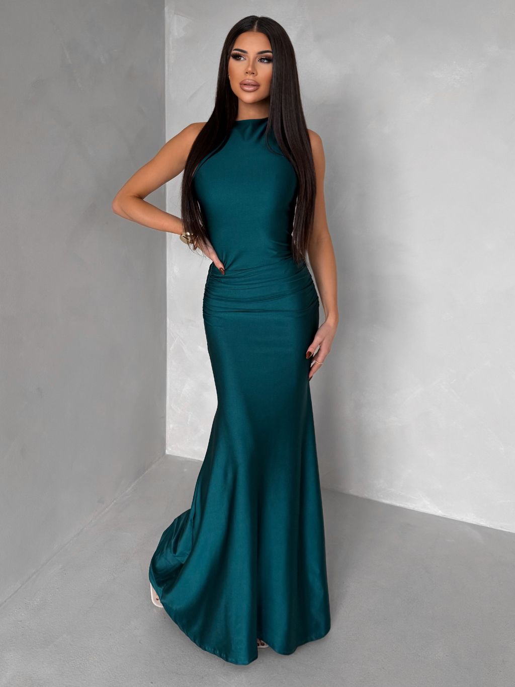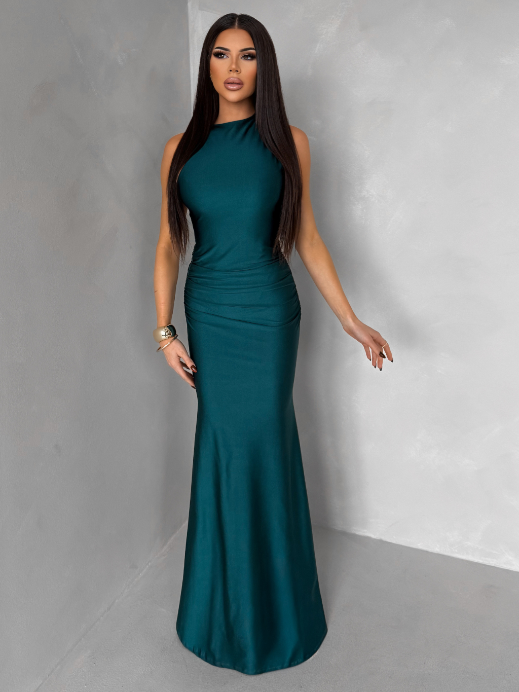 Smaragdové společenské dlouhé šaty LETERA s řasením
