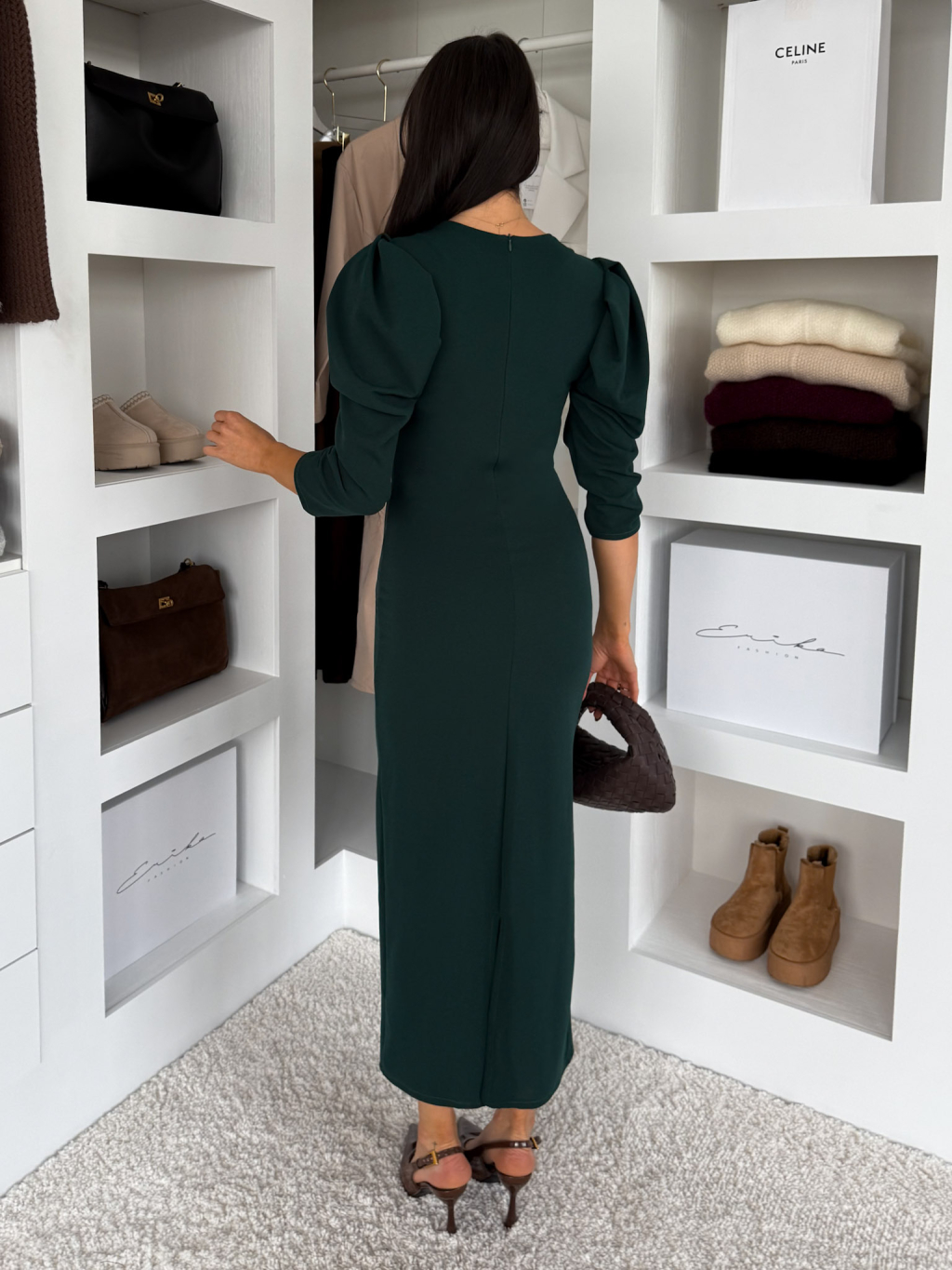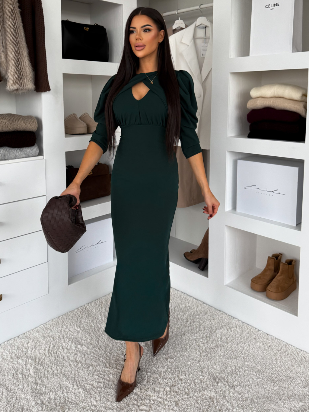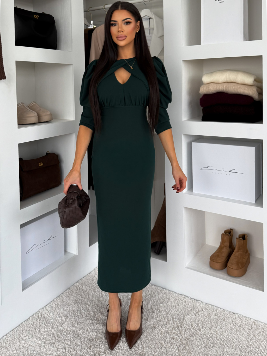 Smaragdové společenské midi šaty KYRAYA s rozparkem