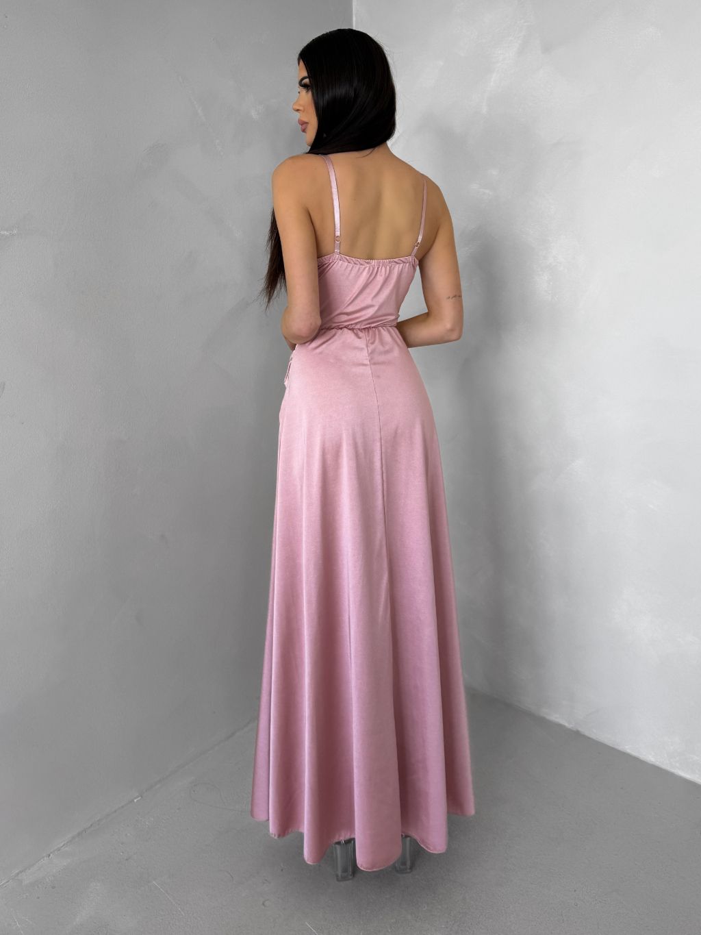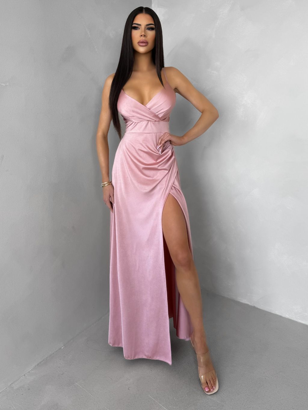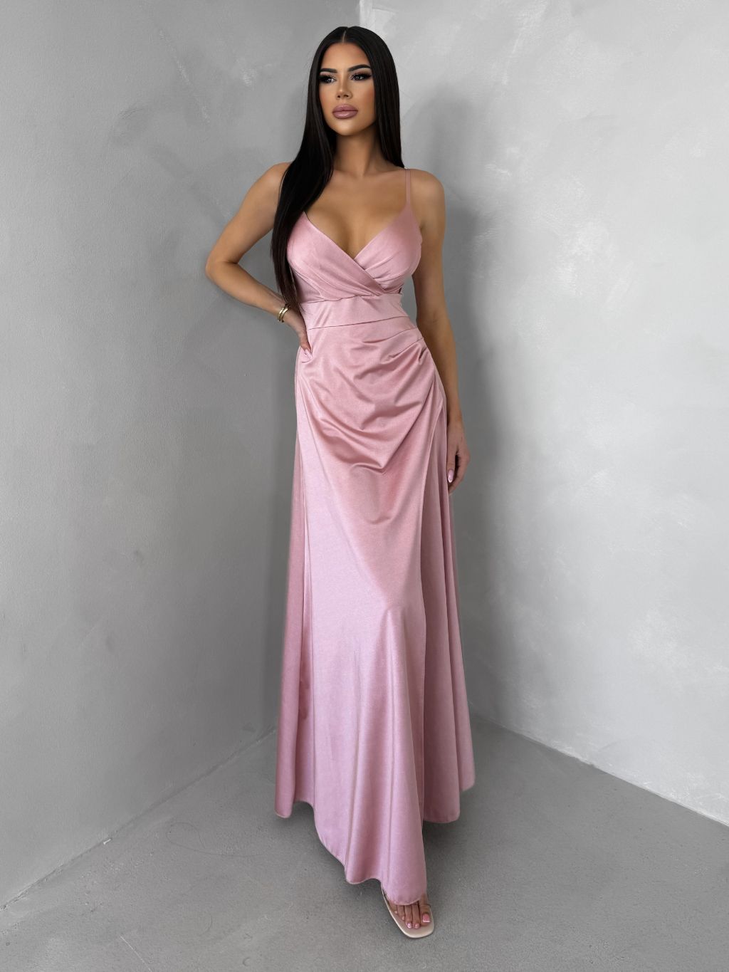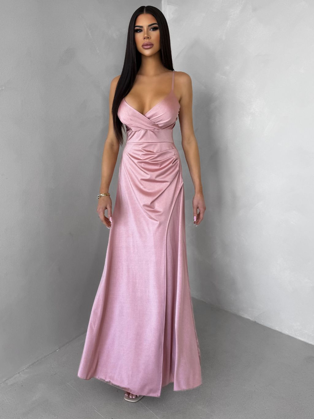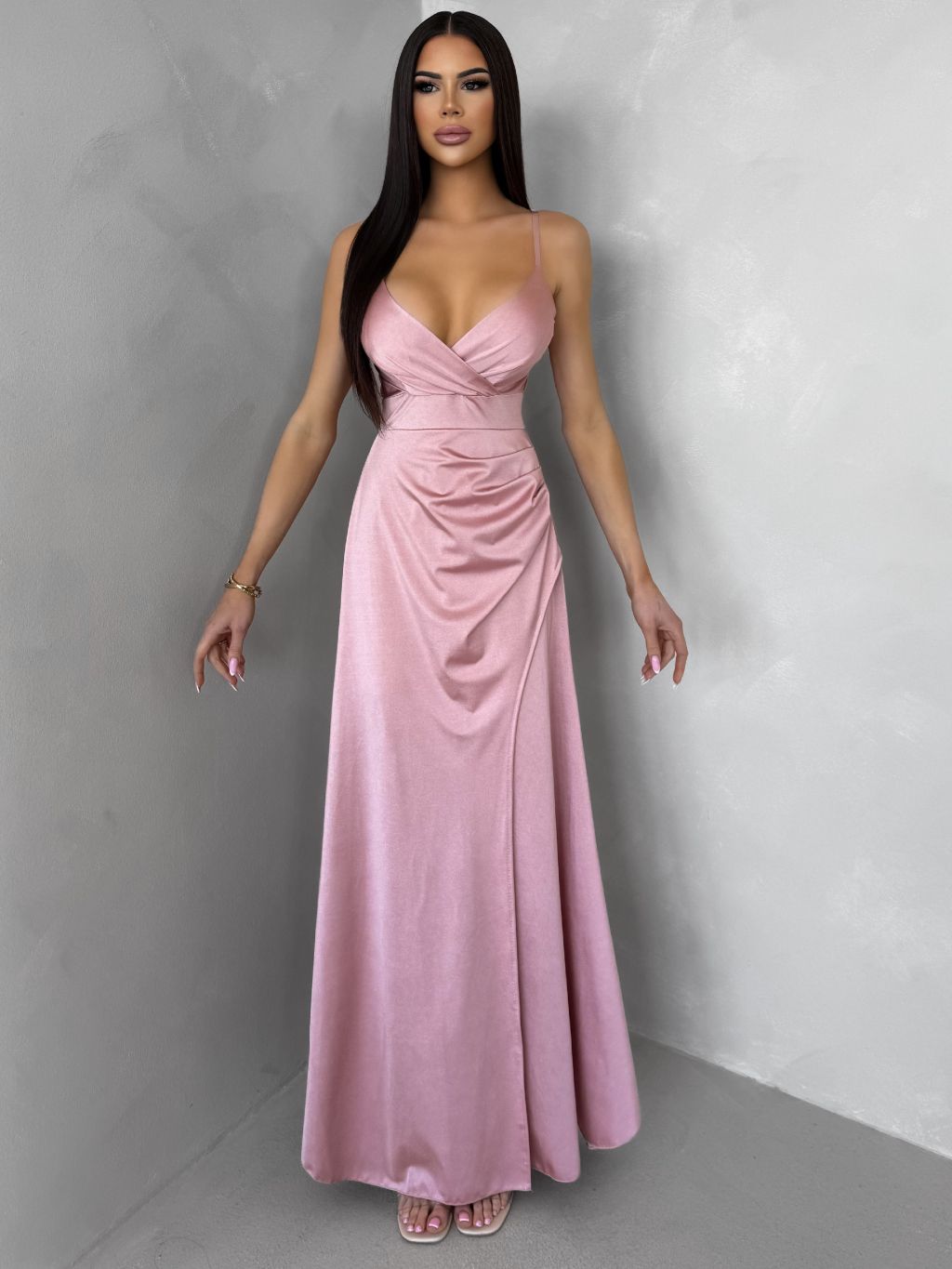 Starorůžové dlouhé saténové šaty ARANKA na ramínka