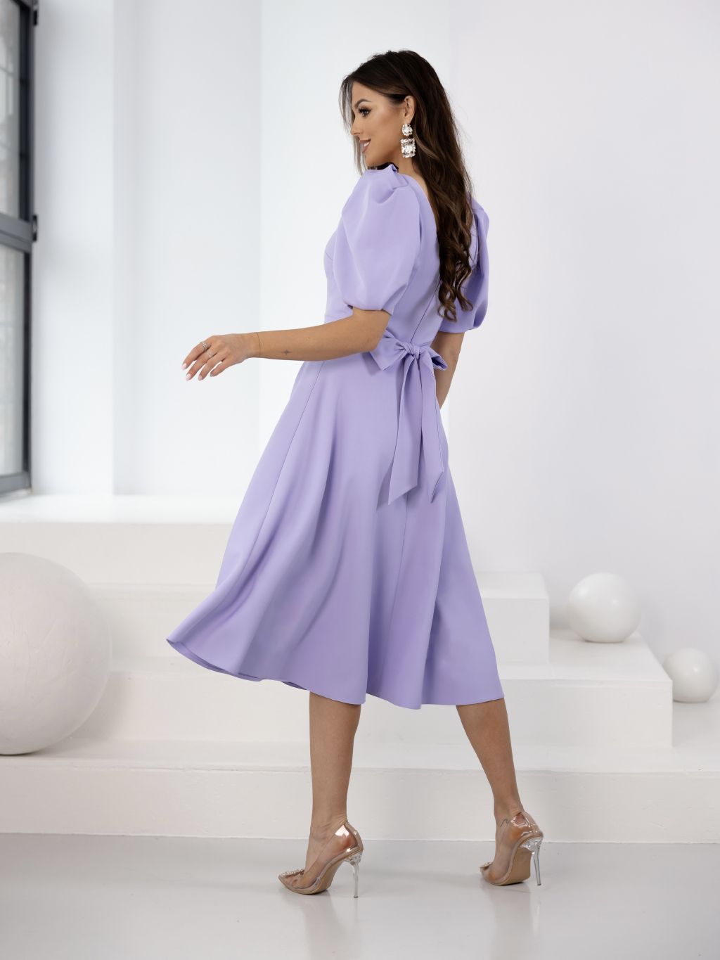 Světle fialové elegantní midi šaty VELIRA