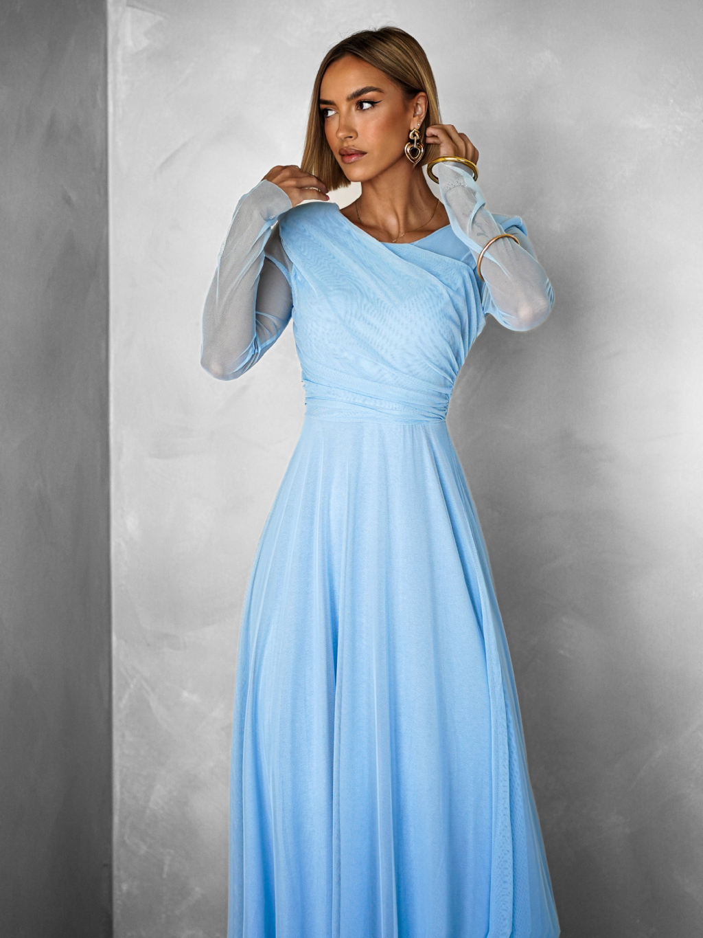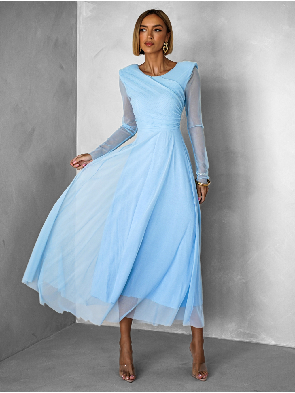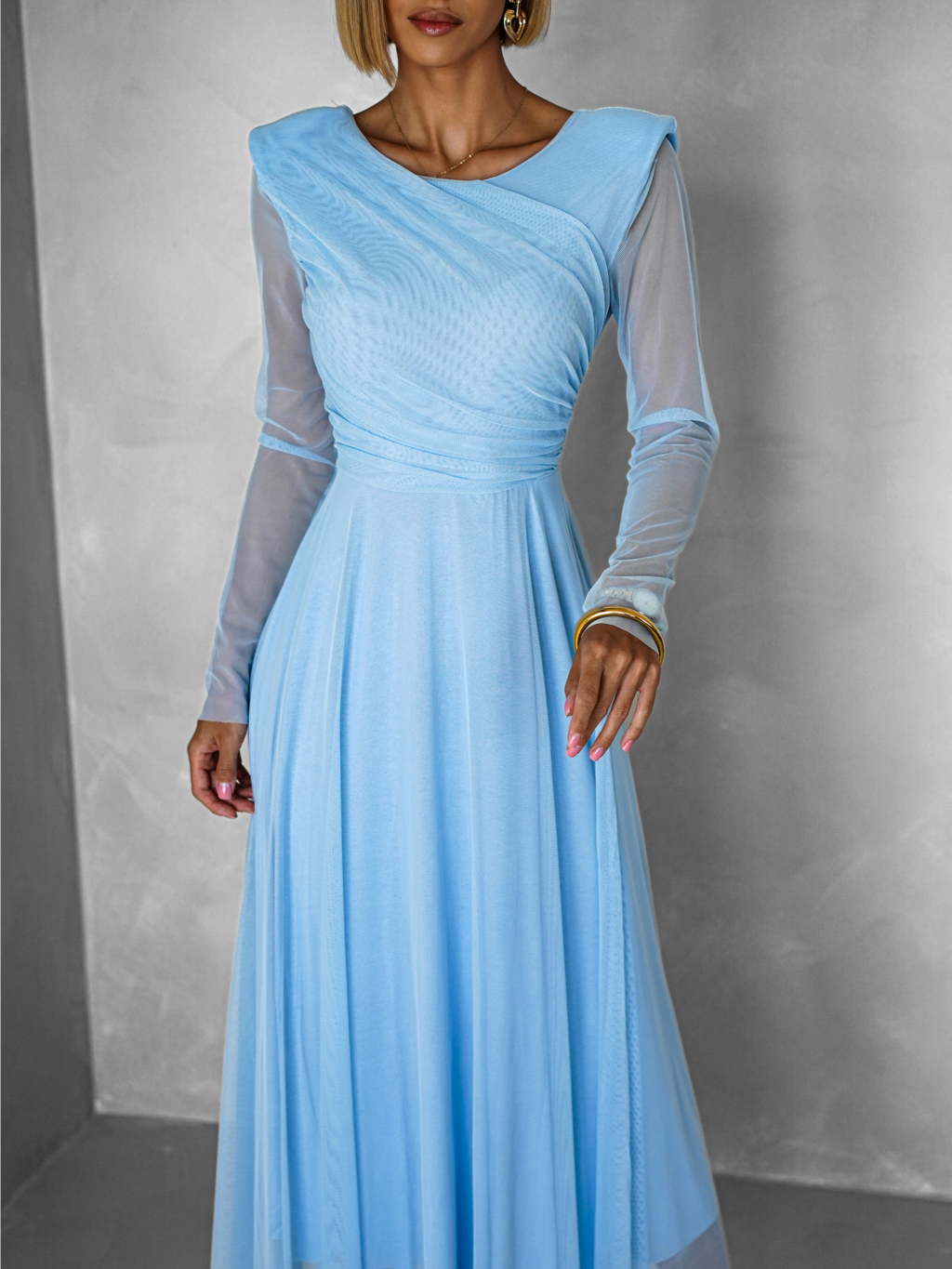 Světle modré tylové společenské šaty ASHER