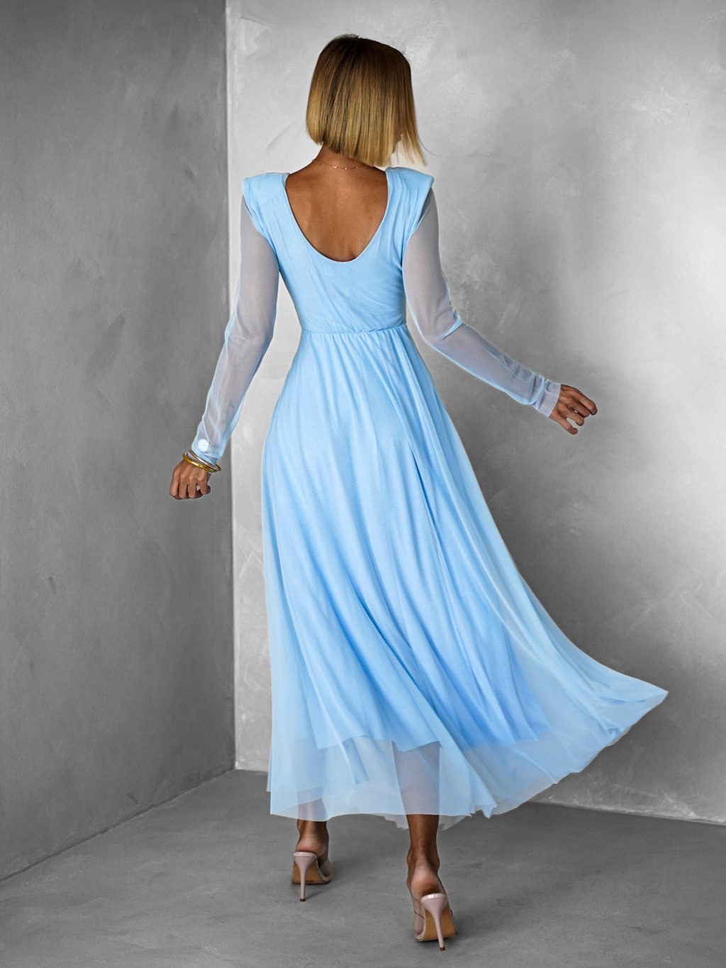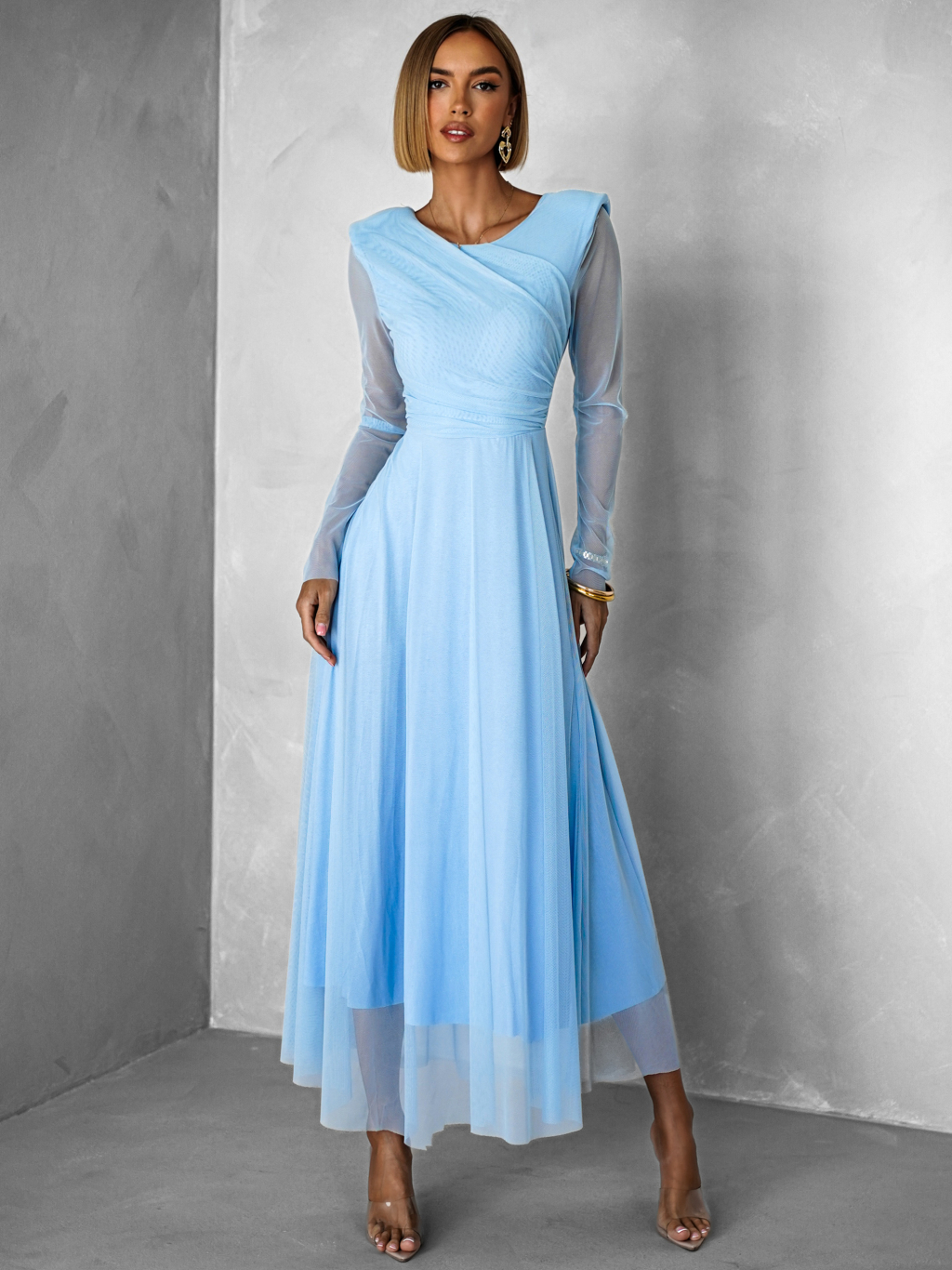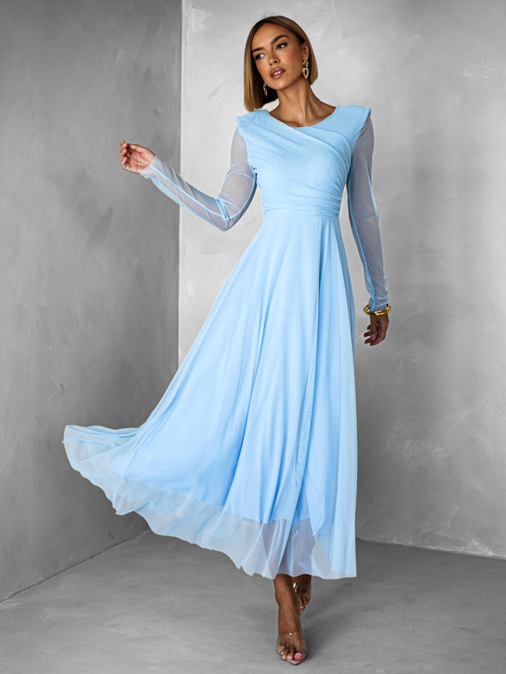 Světle modré tylové společenské šaty ASHER